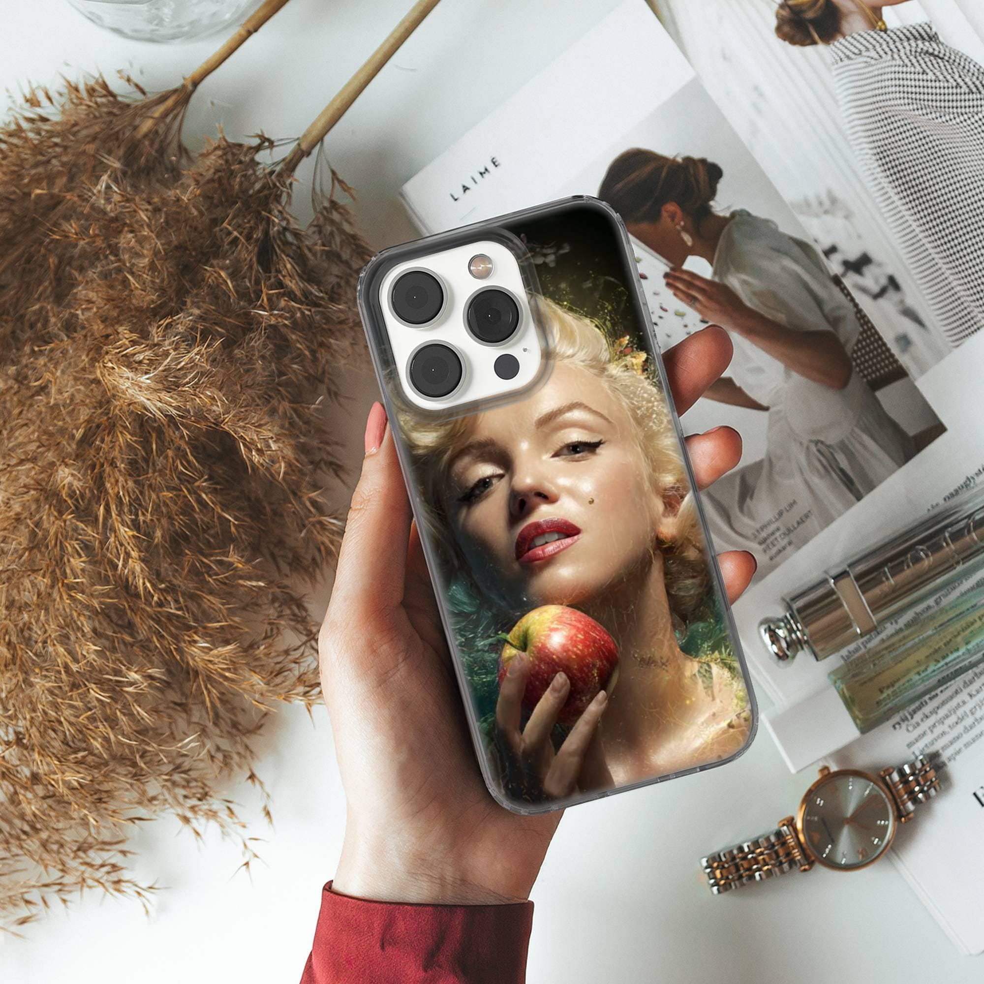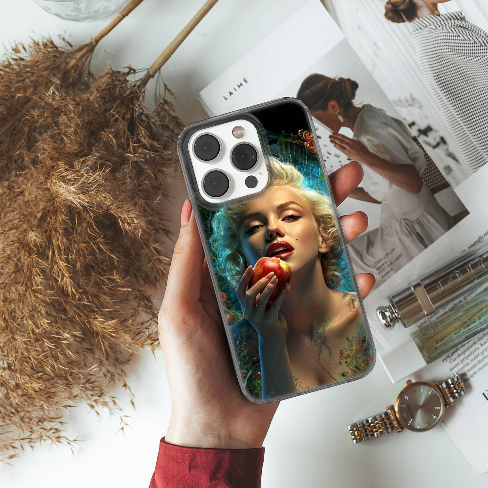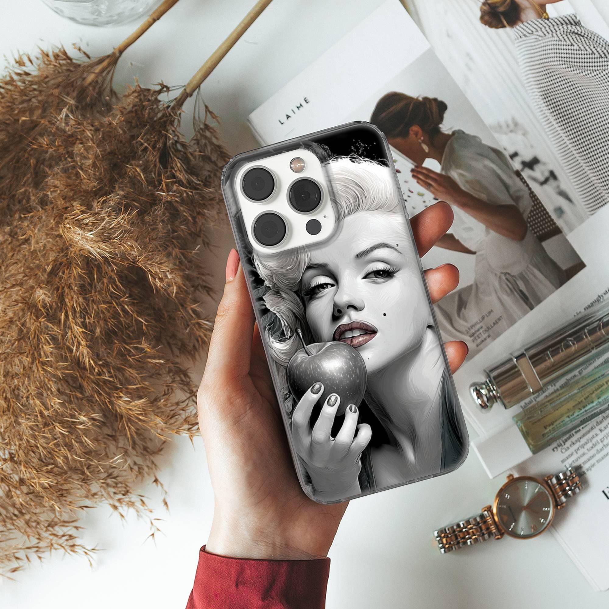 This Merilyn Monroe phone case keeps your phone safe and stylish. This case is designed with a thin and lightweight gel (TPU) material that perfectly fits your device. Featuring an elegant Hollywood Sinsdesign, this phone case is sure to add a touch of whimsy to your everyday life.