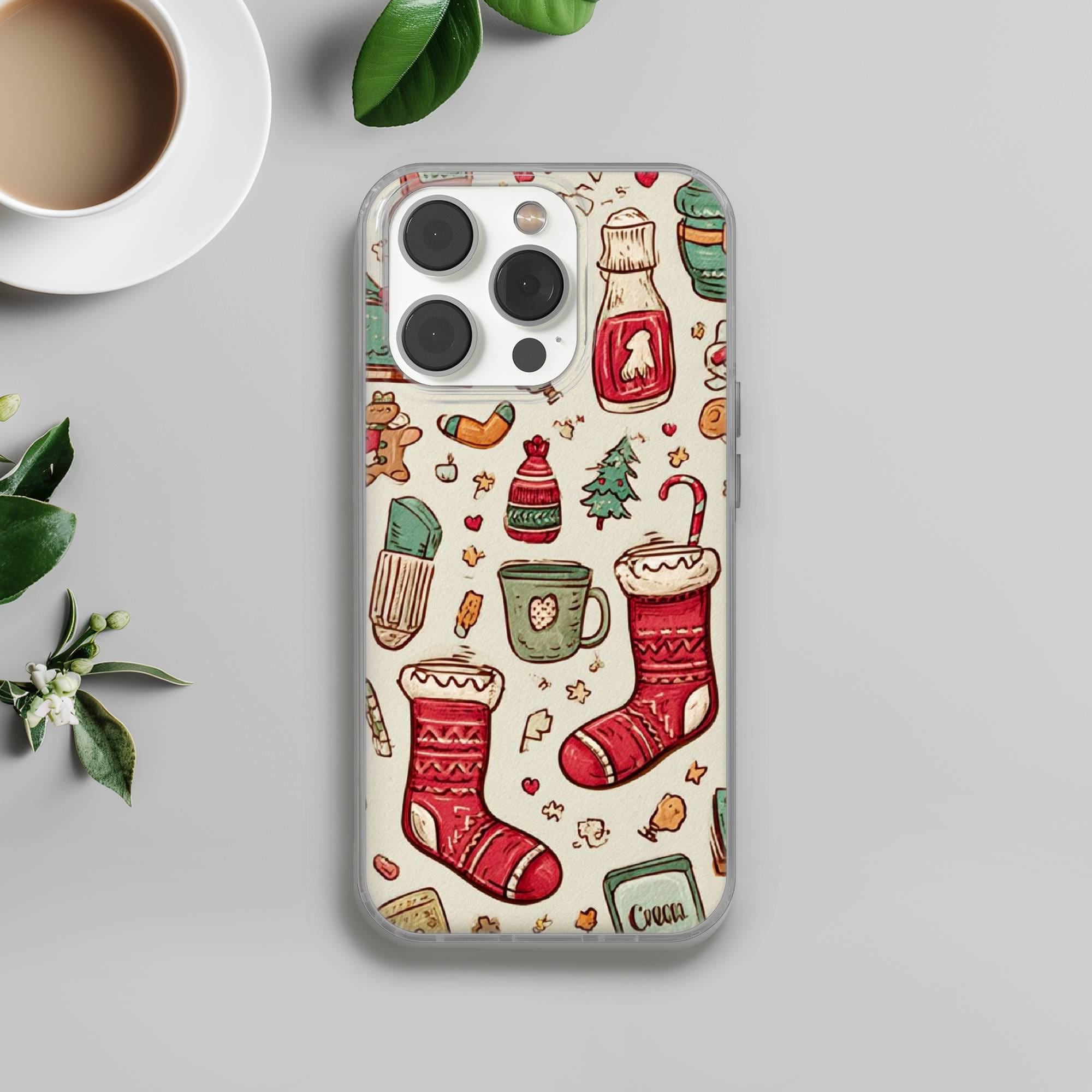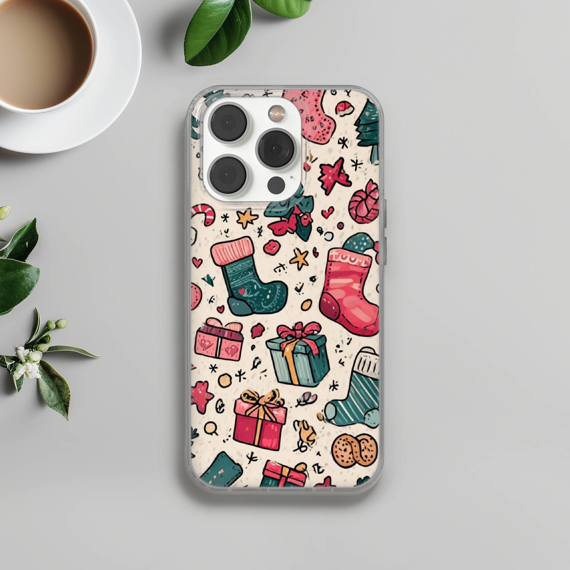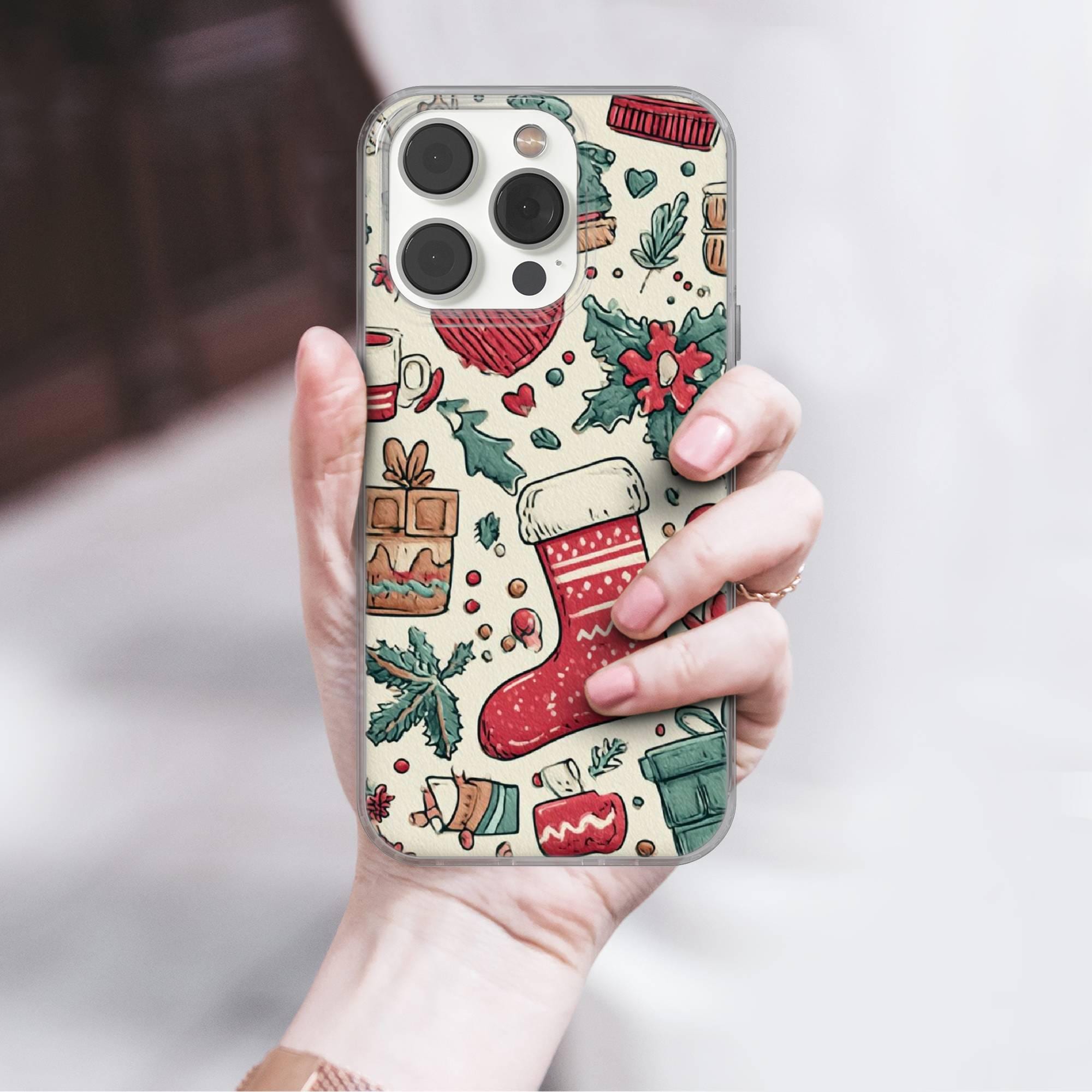 This Christmas sock Phone case keeps your phone safe and stylish. This case is designed with a thin and lightweight gel (TPU) material that perfectly fits your device. Featuring Nice gift elegant design, this phone case is sure to add a touch of whimsy to your everyday life.