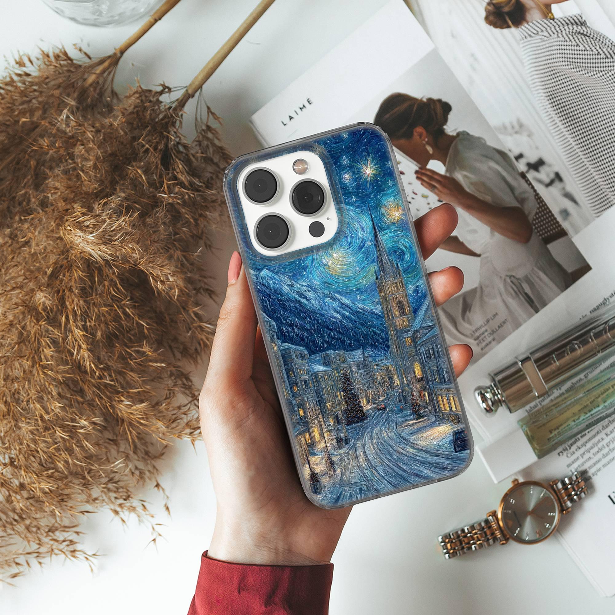 This Van Gogh Christmas Phone case keeps your phone safe and stylish. This case is designed with a thin and lightweight gel (TPU) material that perfectly fits your device. Featuring Art Parody elegant design, this phone case is sure to add a touch of whimsy to your everyday life.