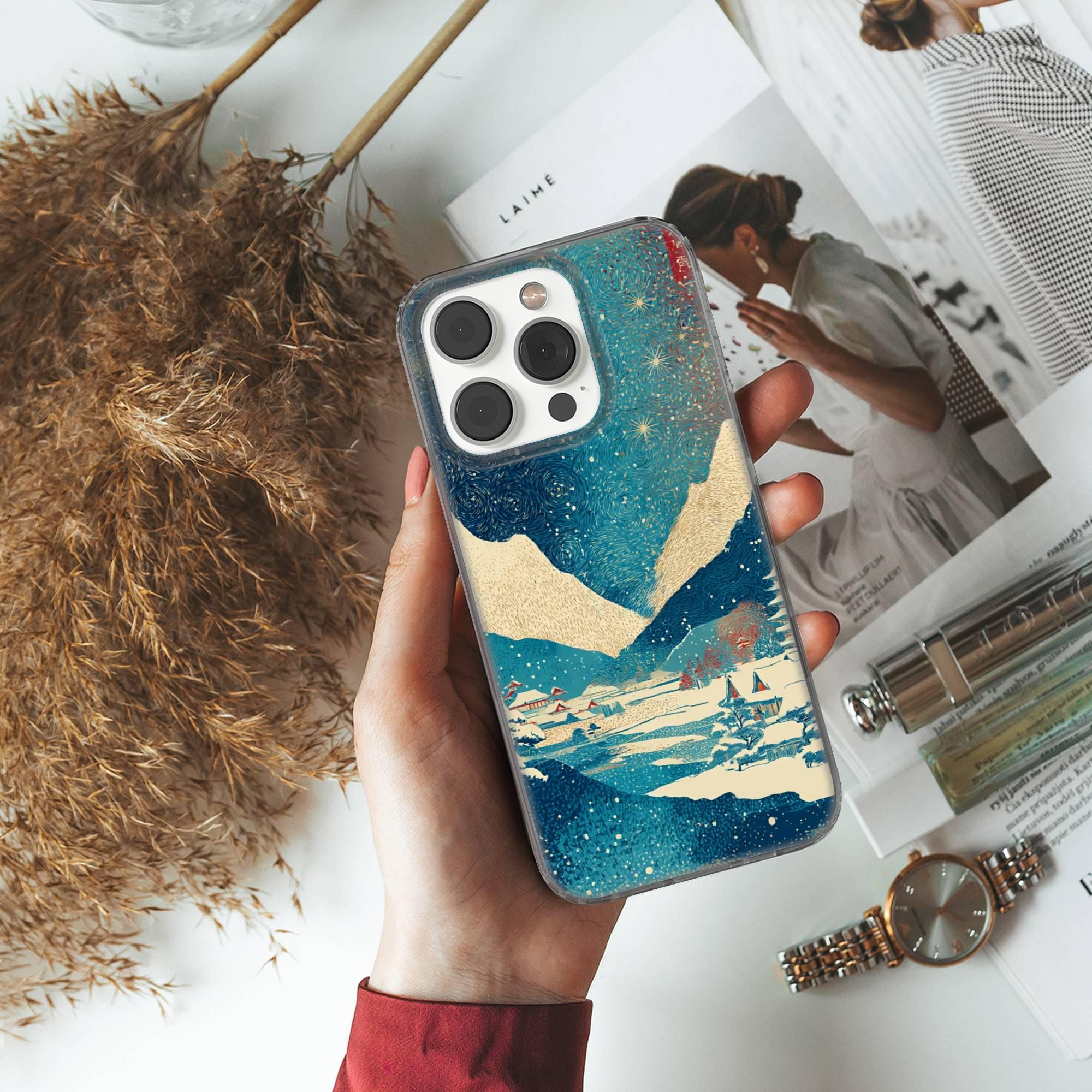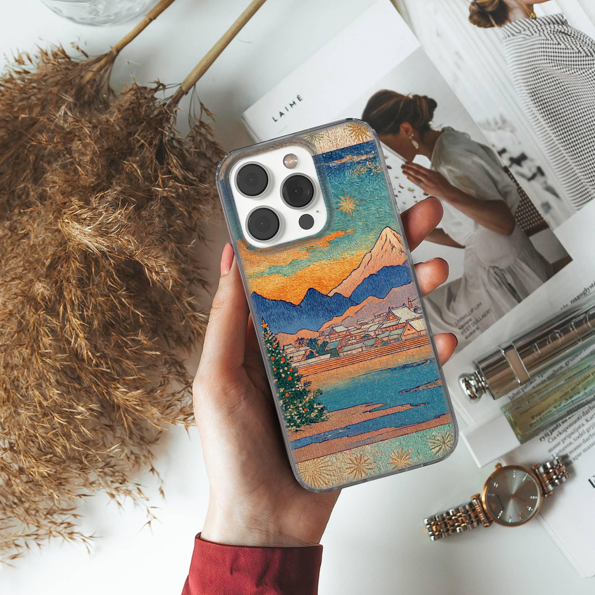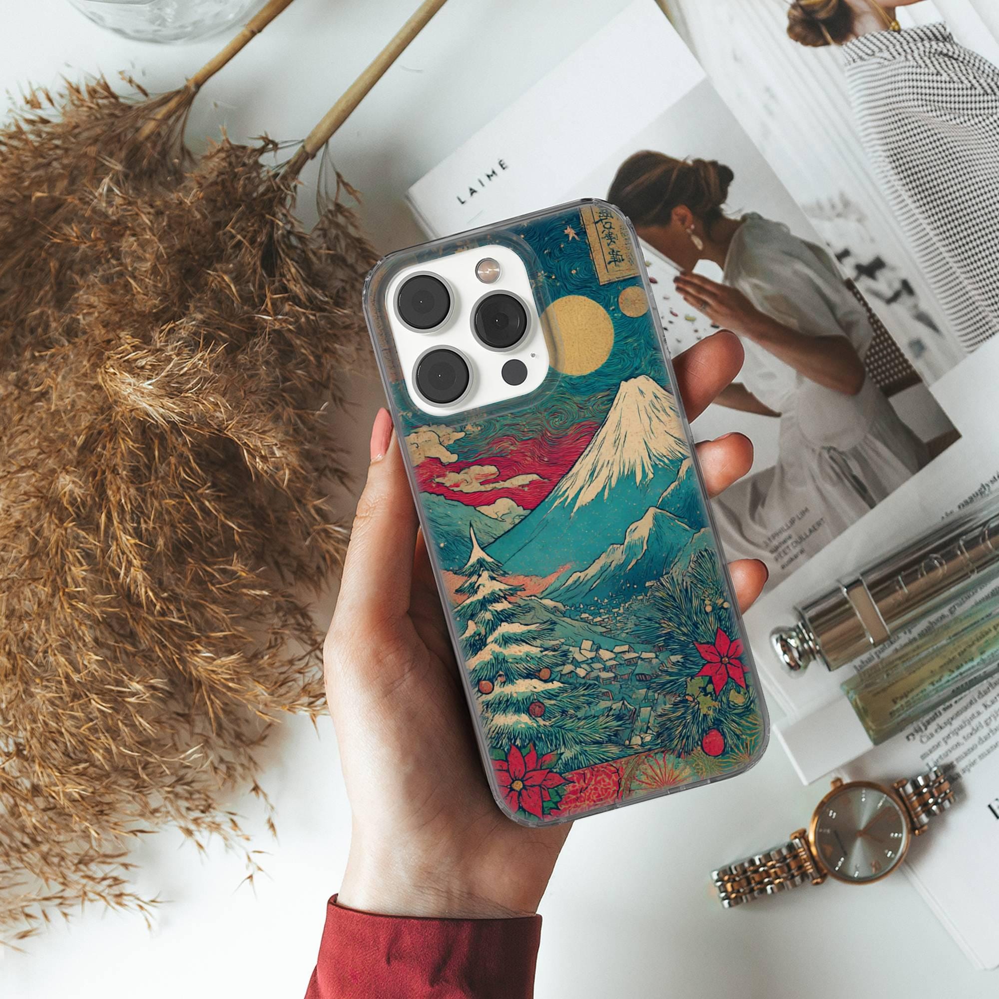 Add a touch of winter magic to your phone today with this beautiful Japanese Christmas mountain design case!