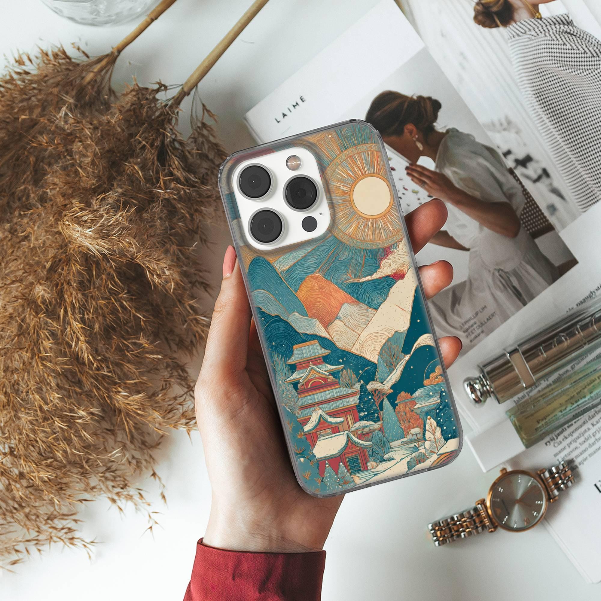 Designed to fit a variety of models, including iPhone 14, Samsung S23, Pixel 10, and more, this case showcases a vibrant, high-quality no-fade print that captures the serene beauty of Japan’s winter mountains. The matte finish enhances the artwork’s elegance, while precision-cut ports ensure easy access to all buttons and features. The transparent sides keep the sleek profile of your phone visible, making it both practical and stylish.