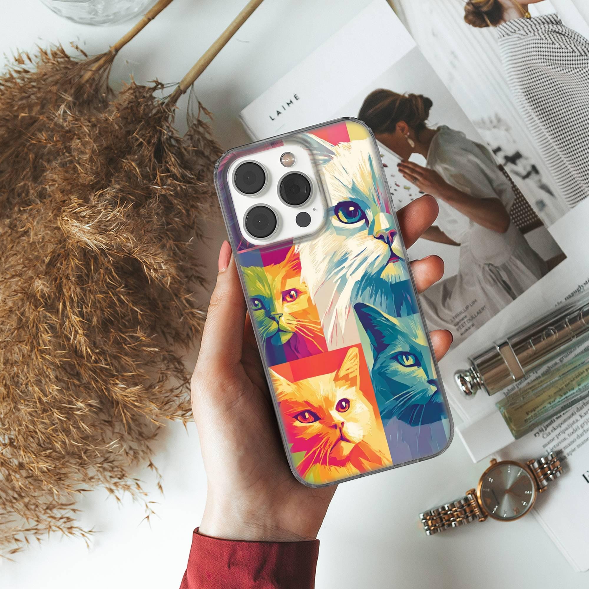 This cute cat phone case keeps your phone safe and stylish. This case is designed with a thin and lightweight gel (TPU) material that perfectly fits your device. Featuring Animal Lovers' elegant design, this phone case is sure to add a touch of whimsy to your everyday life.