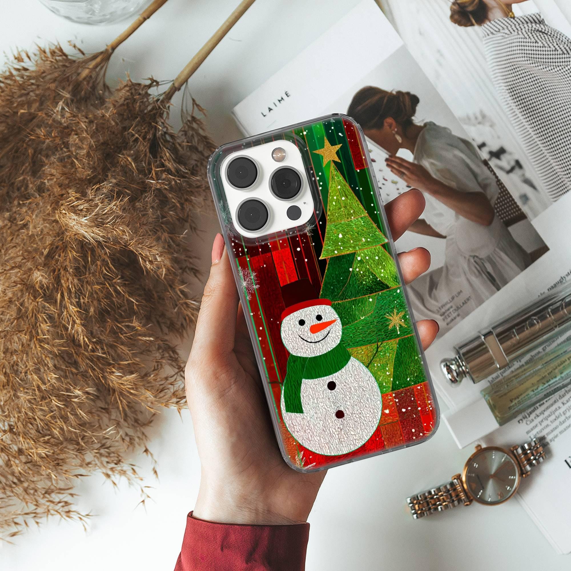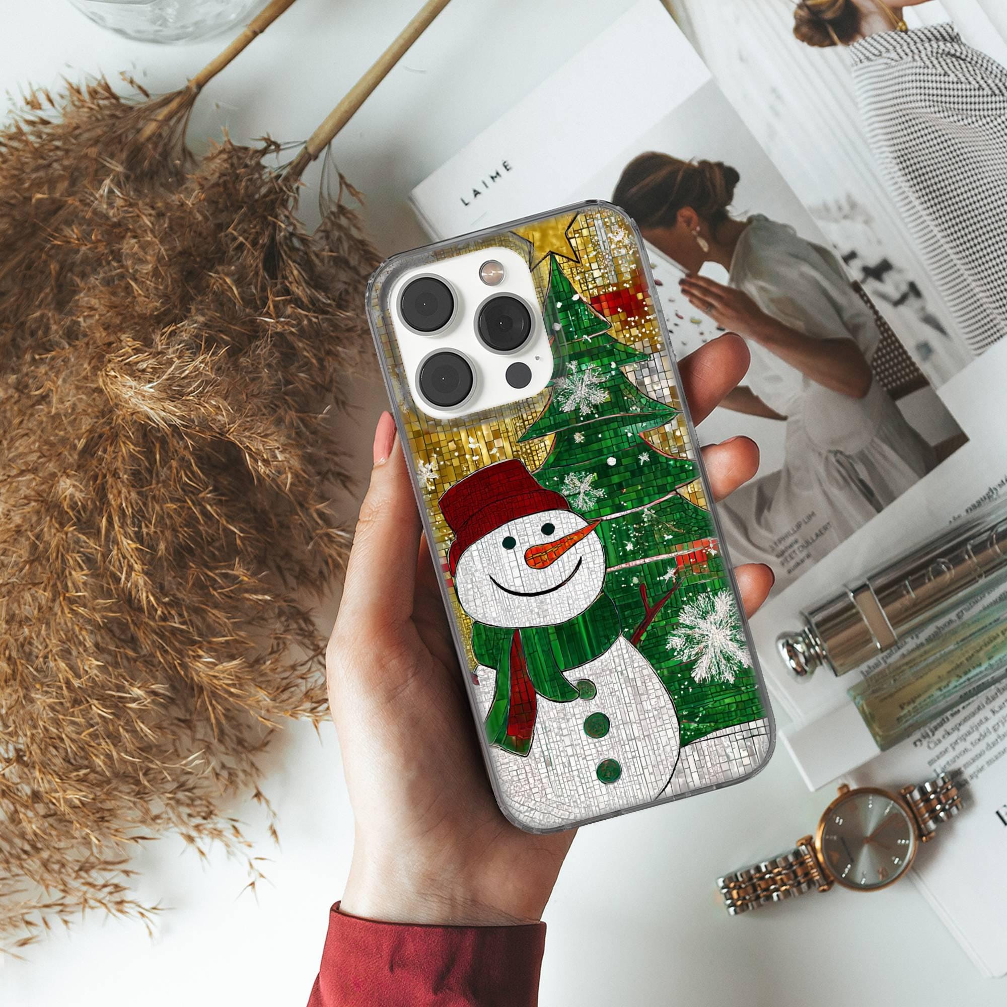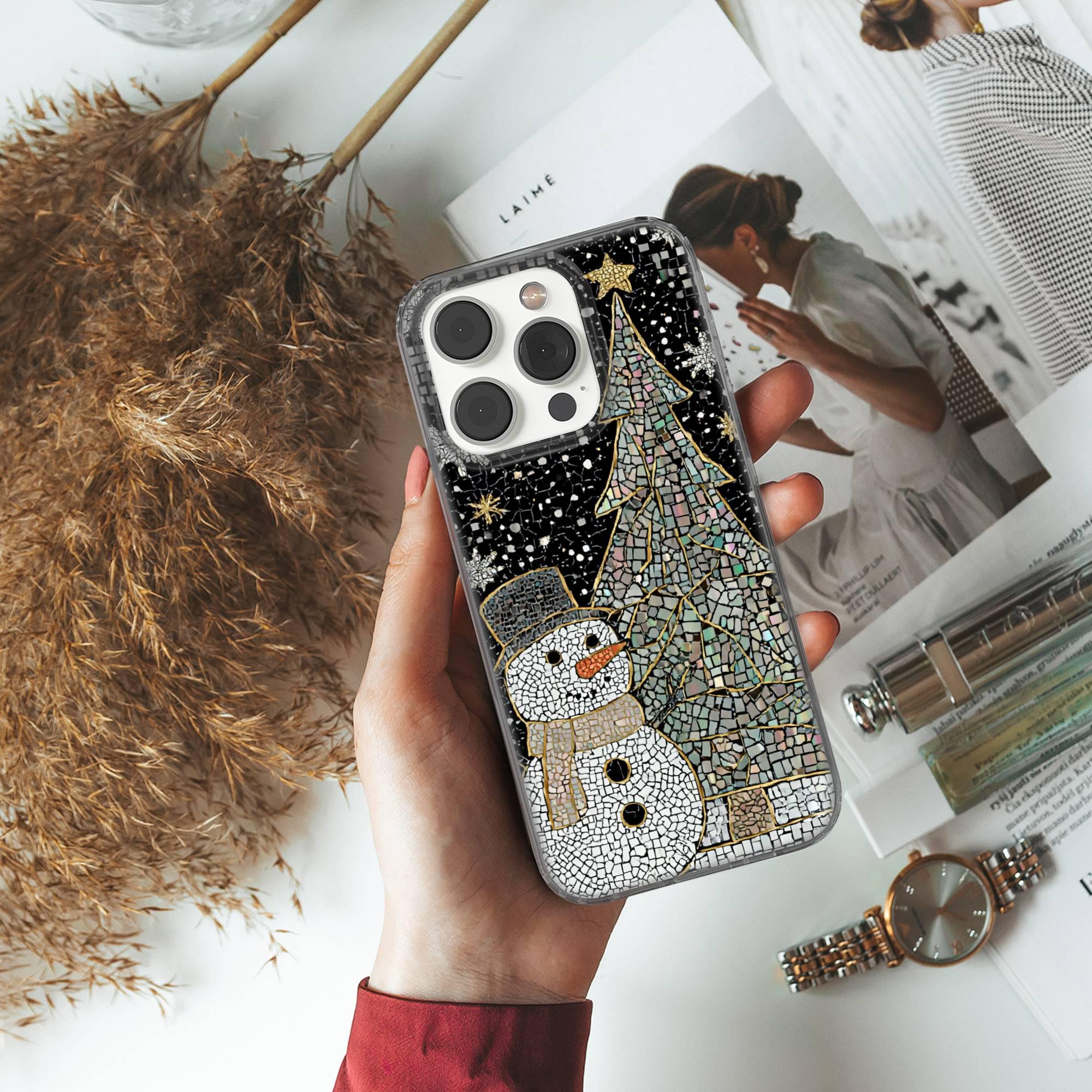 This Stained Glass Phone case keeps your phone safe and stylish. This case is designed with a thin and lightweight gel (TPU) material that perfectly fits your device. Featuring Snowman elegant design, this phone case is sure to add a touch of whimsy to your everyday life.