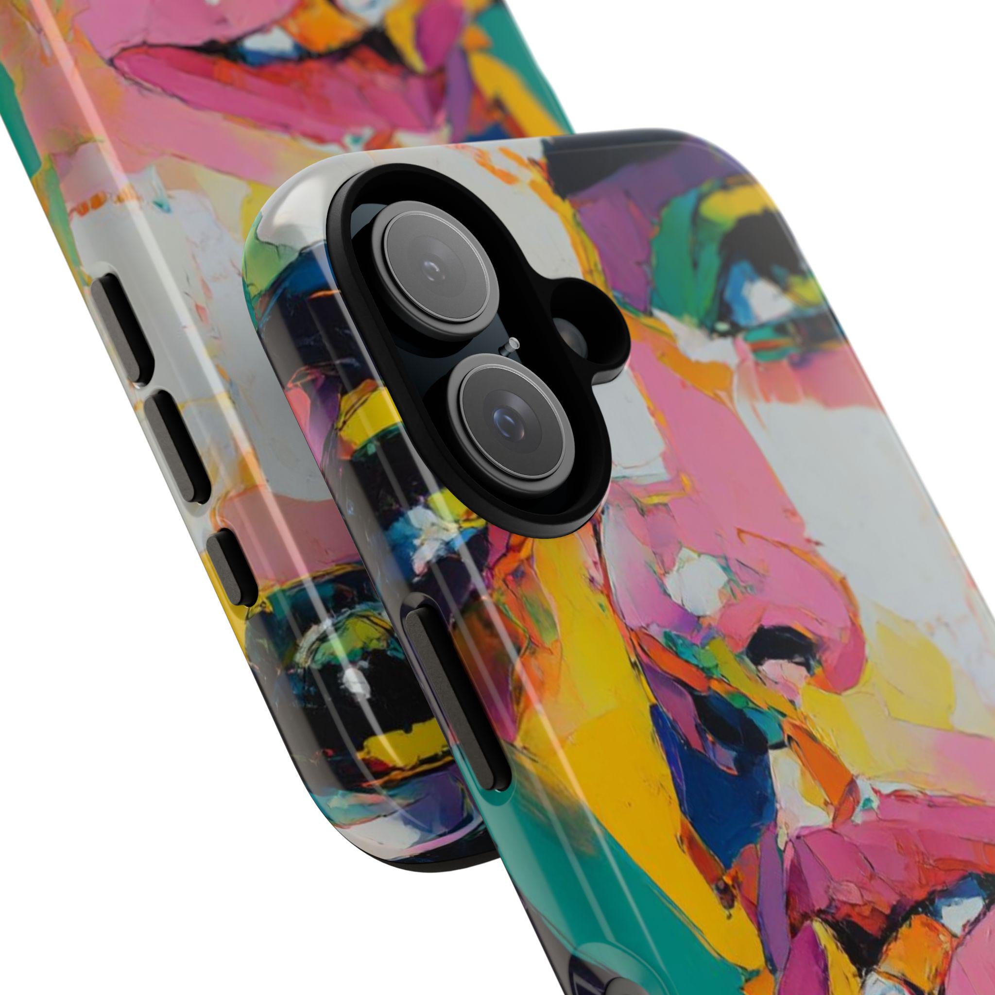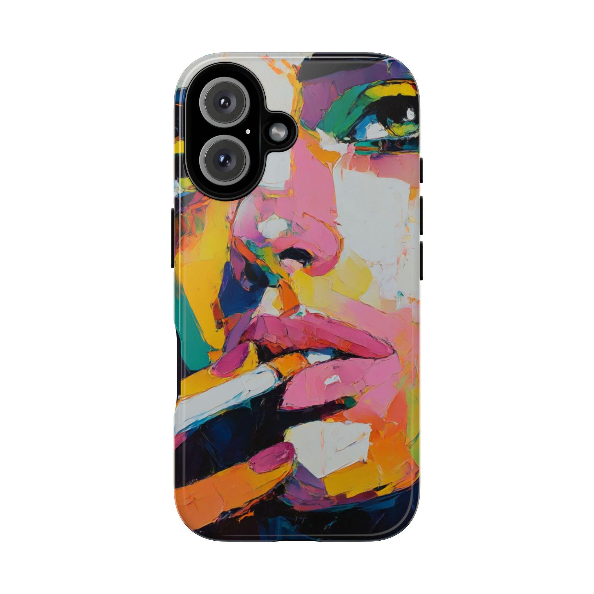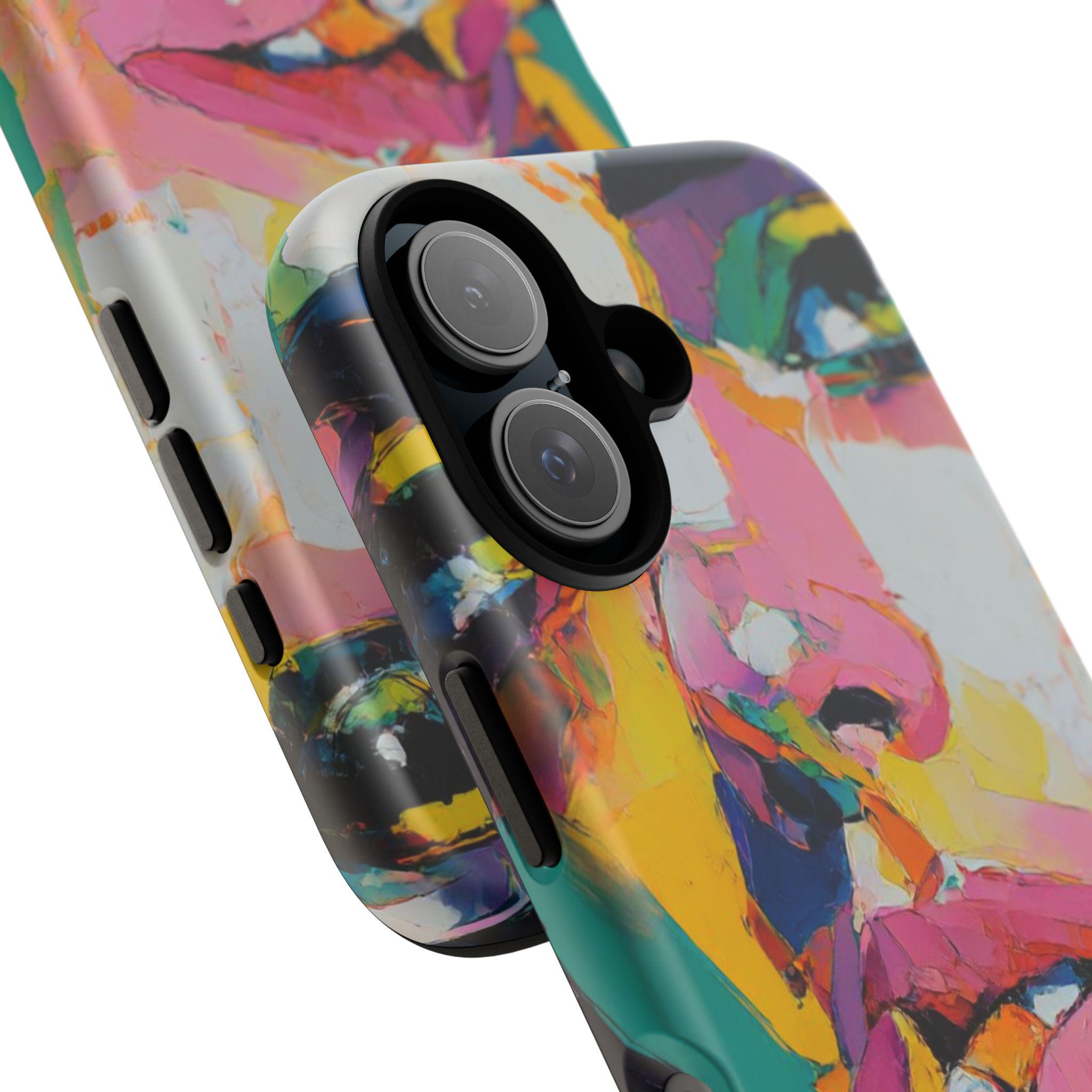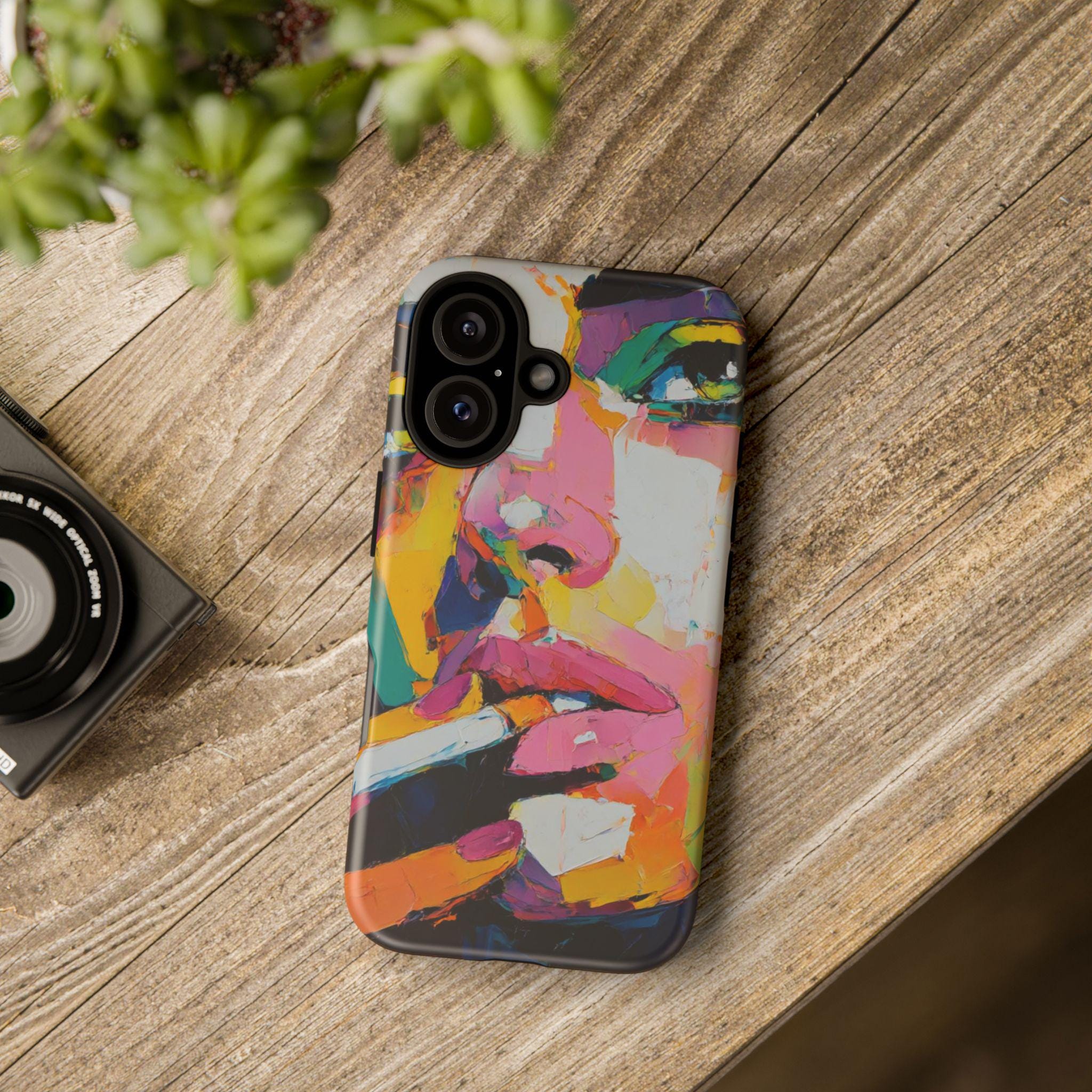 This tough phone case brings bold, expressive art to the everyday. The vibrant, painterly portrait wraps fully around the dual-layer shell, so every edge and corner becomes part of the composition. A glossy or matte finish preserves the saturated hues while a TPU silicone liner cushions against drops and impacts. UV-resistant inks keep colors bright outdoors, and precise cutouts keep charging and ports effortless. Carry a piece of modern street-art energy that stands up to daily wear and travel — a confident, durable cover that reads as lifestyle and protection in one.
