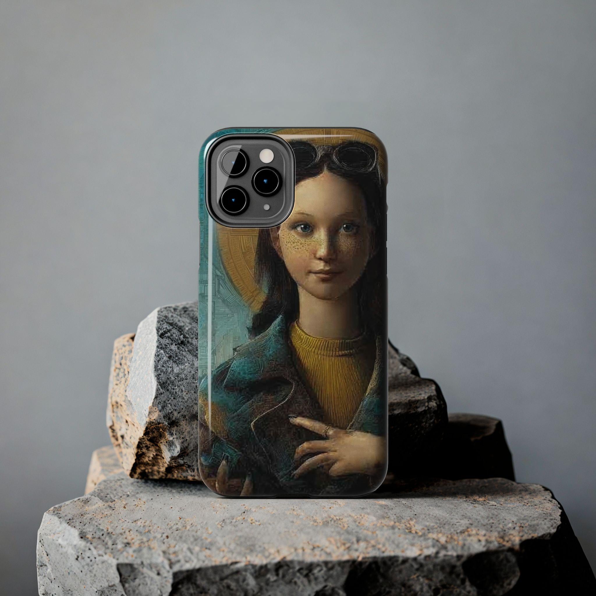 This tough phone case wraps everyday protection around a quietly whimsical portrait. The glossy print brings out jewel-like colors and fine brushwork while a flexible rubber liner and polycarbonate shell absorb shocks and disperse impact. The lay-flat bezel keeps the screen off rough surfaces, and UV protection helps the artwork stay vibrant through sunlit days. It supports wireless charging and fits modern phone models (including the new iPhone 17 series), so the case feels both artful and practical in daily life.