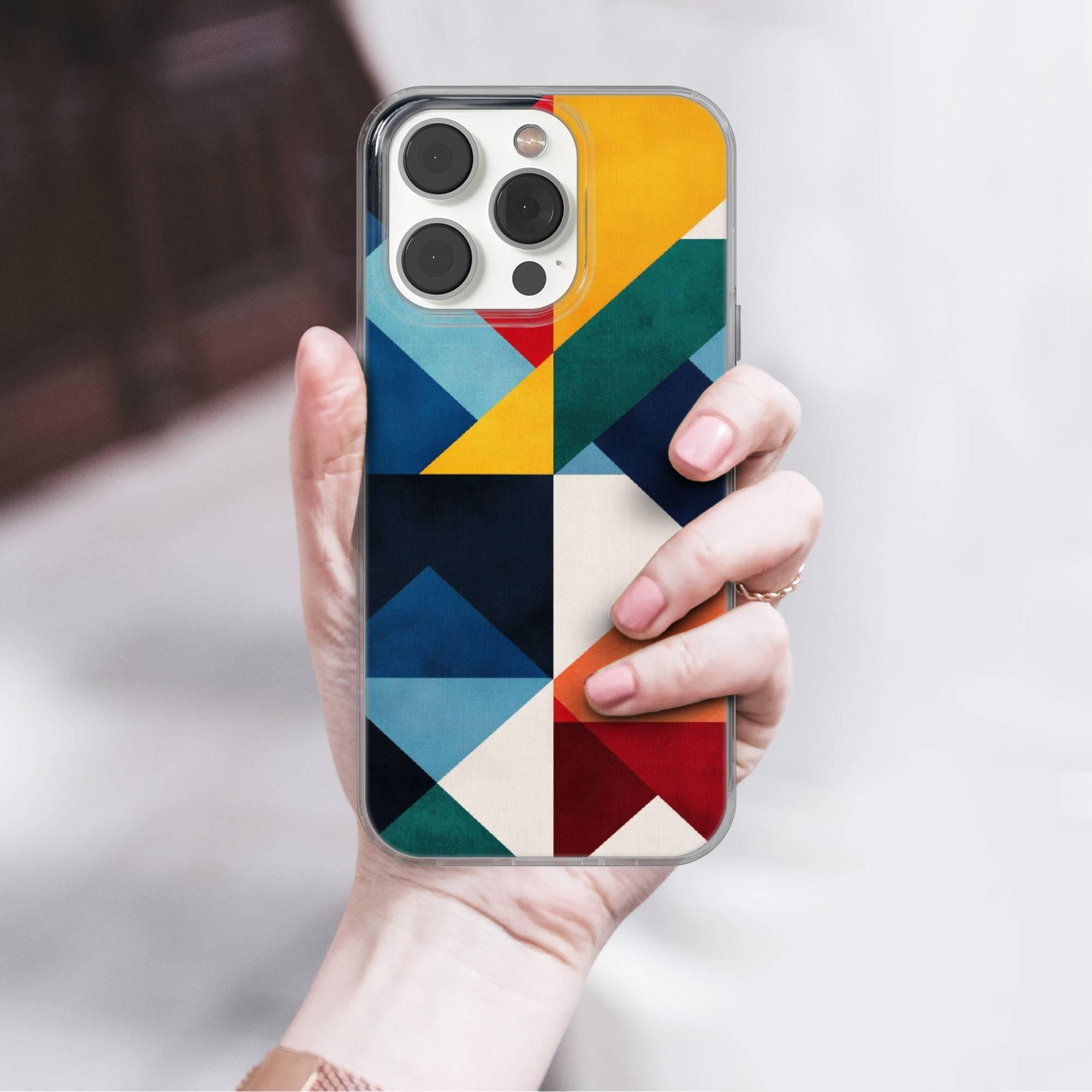Add a pop of vibrant style to your phone with this Retro Geometric Phone Case featuring a colorful triangle pattern. Designed to protect and adorn your device, this trendy phone cover is perfect for those who love modern, eye-catching designs. Crafted from premium quality 1.5mm soft gel (TPU) material, it offers a slim, lightweight fit that keeps your phone safe without adding bulk. The high-quality, no-fade print ensures your colorful geometric pattern stays vivid, while the precision-cut ports provide easy access to all buttons and features. The matte finish adds a sophisticated touch, and the transparent sides highlight your device's sleek lines. Whether you own an iPhone 16e, 17 Pro Max, 17 Air, Samsung S25 Edge, A16, Pixel 10, or 9A, this stylish accessory is designed to fit perfectly. Ideal as a unique gift or a chic everyday essential, embrace your trendy style with this modern, geometric pattern phone cover that combines function and fashion seamlessly.