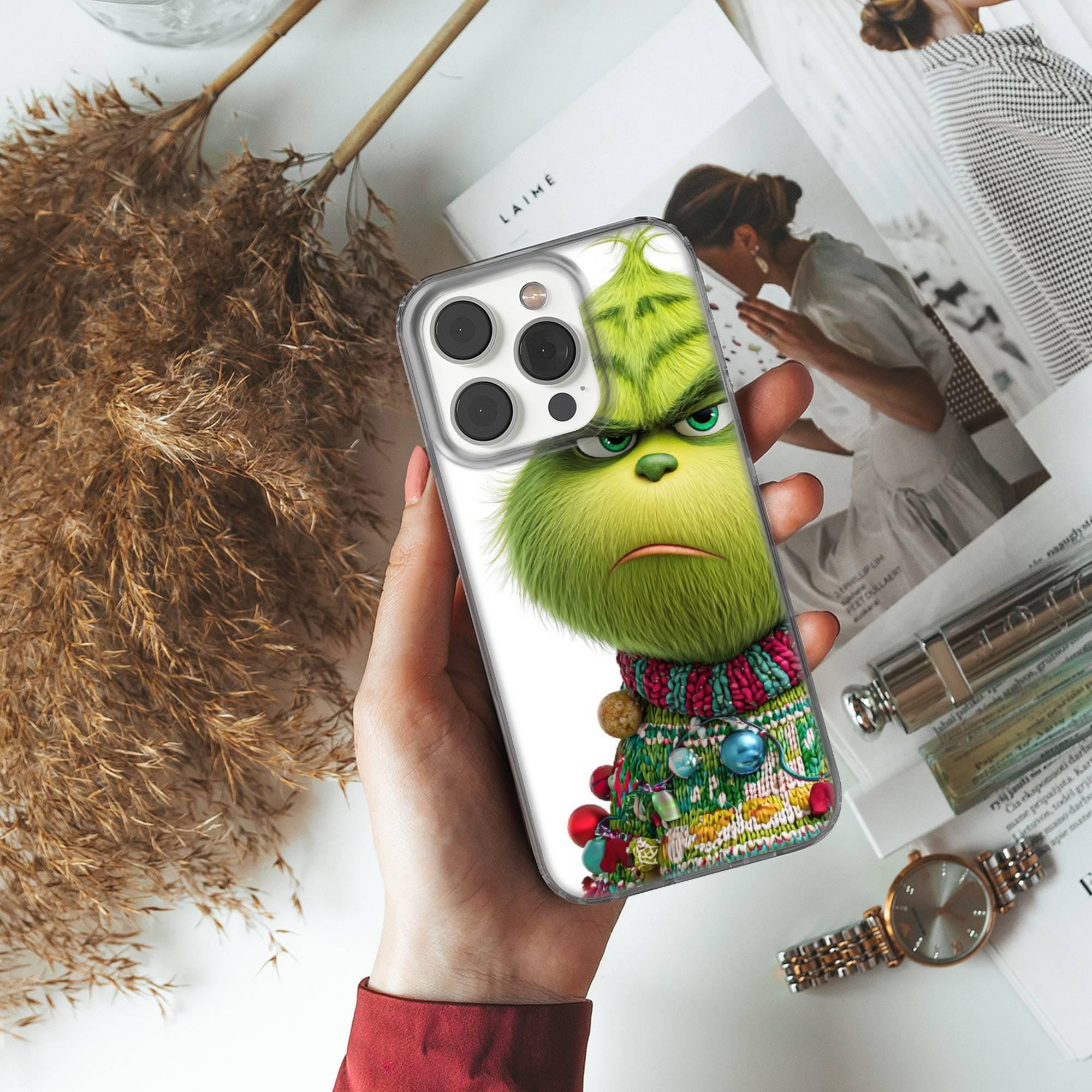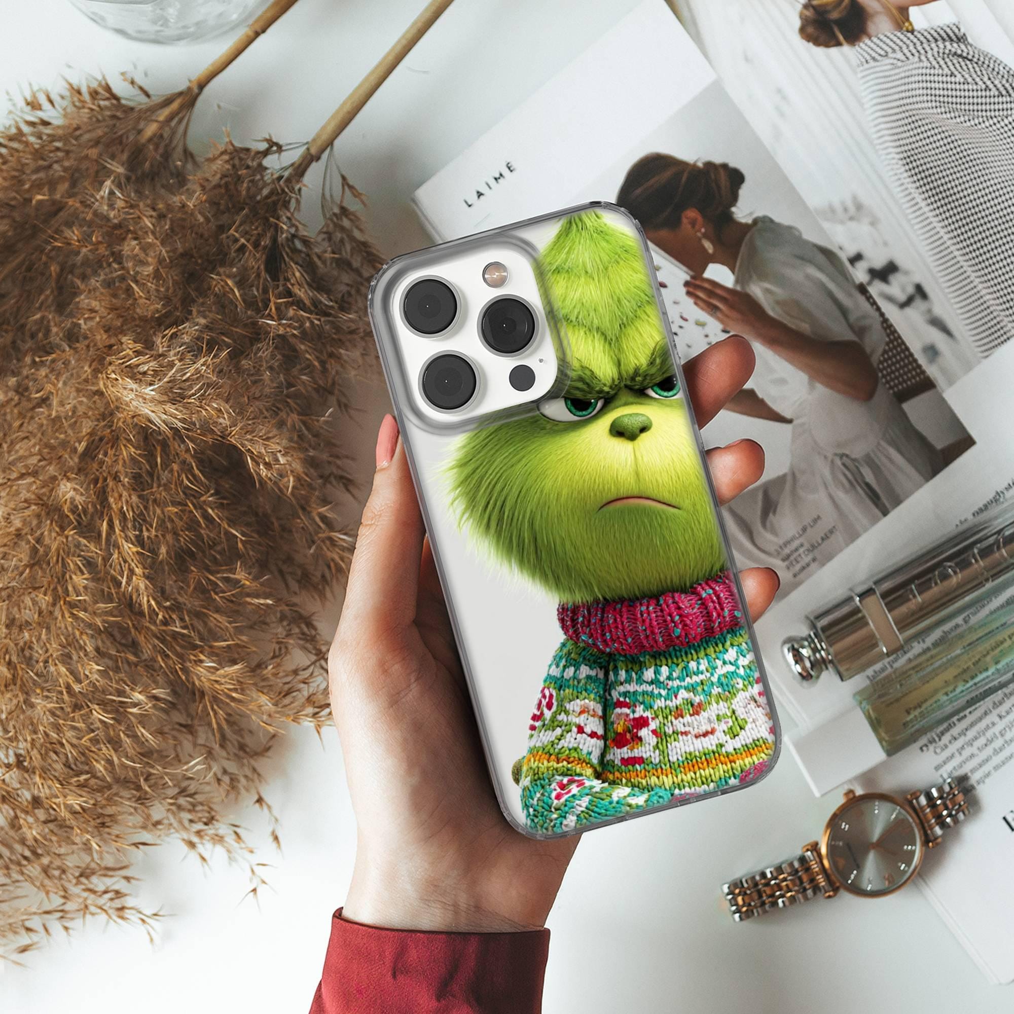 This Green Grinch Phone case keeps your phone safe and stylish. This case is designed with a thin and lightweight gel (TPU) material that perfectly fits your device. Featuring Durable Phone Cover elegant design, this phone case is sure to add a touch of whimsy to your everyday life.