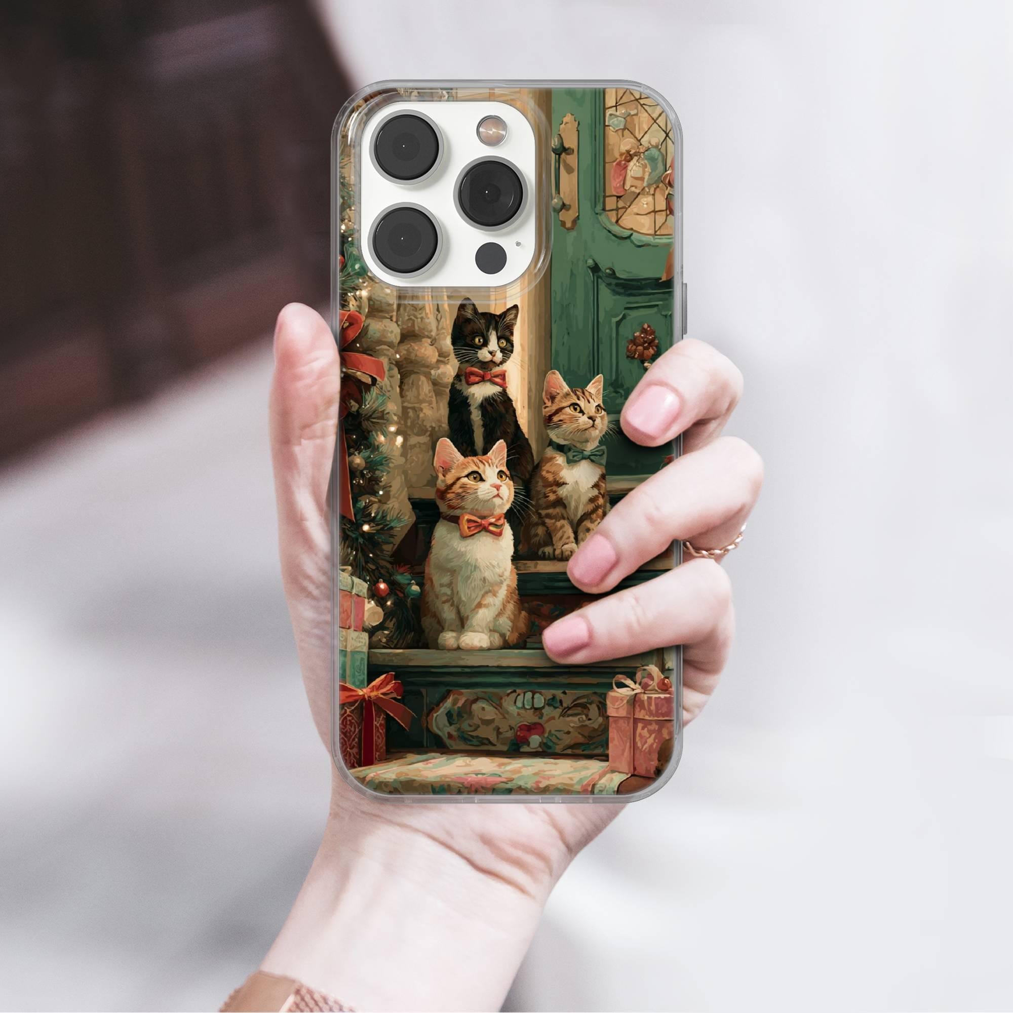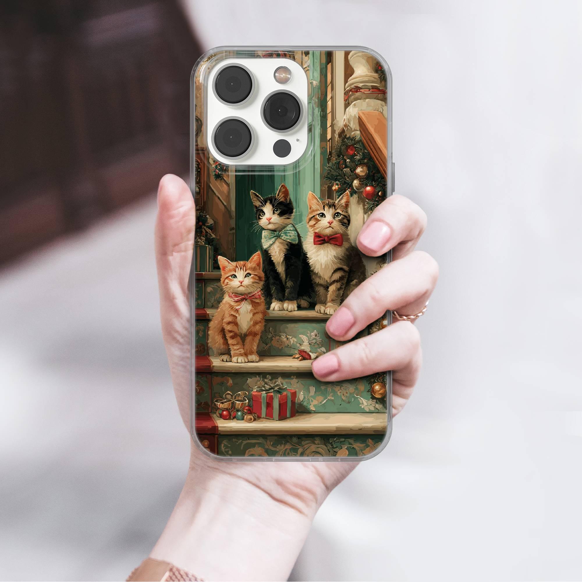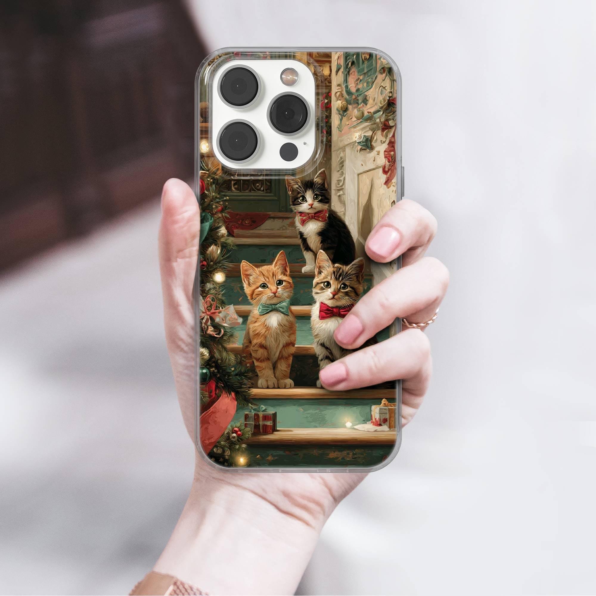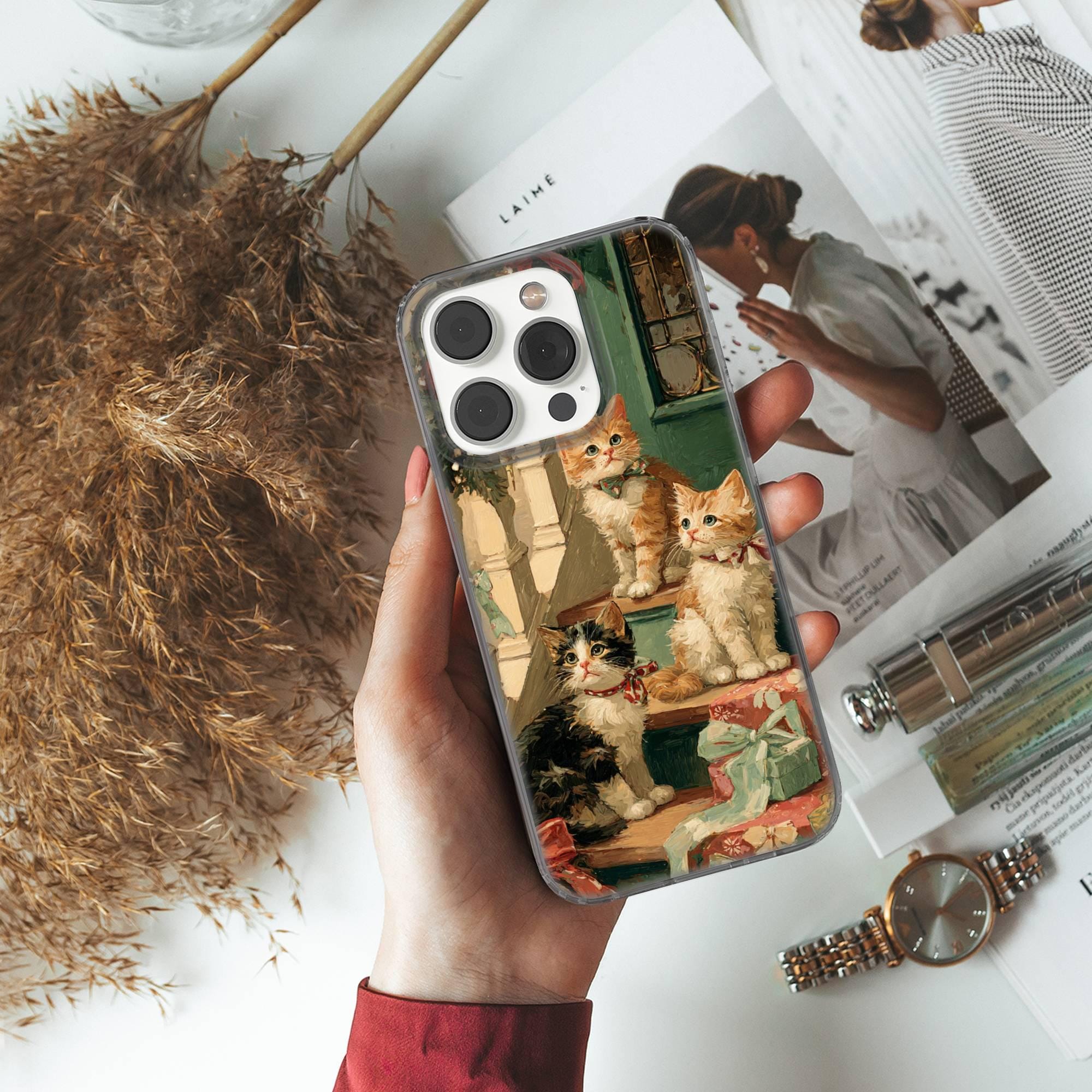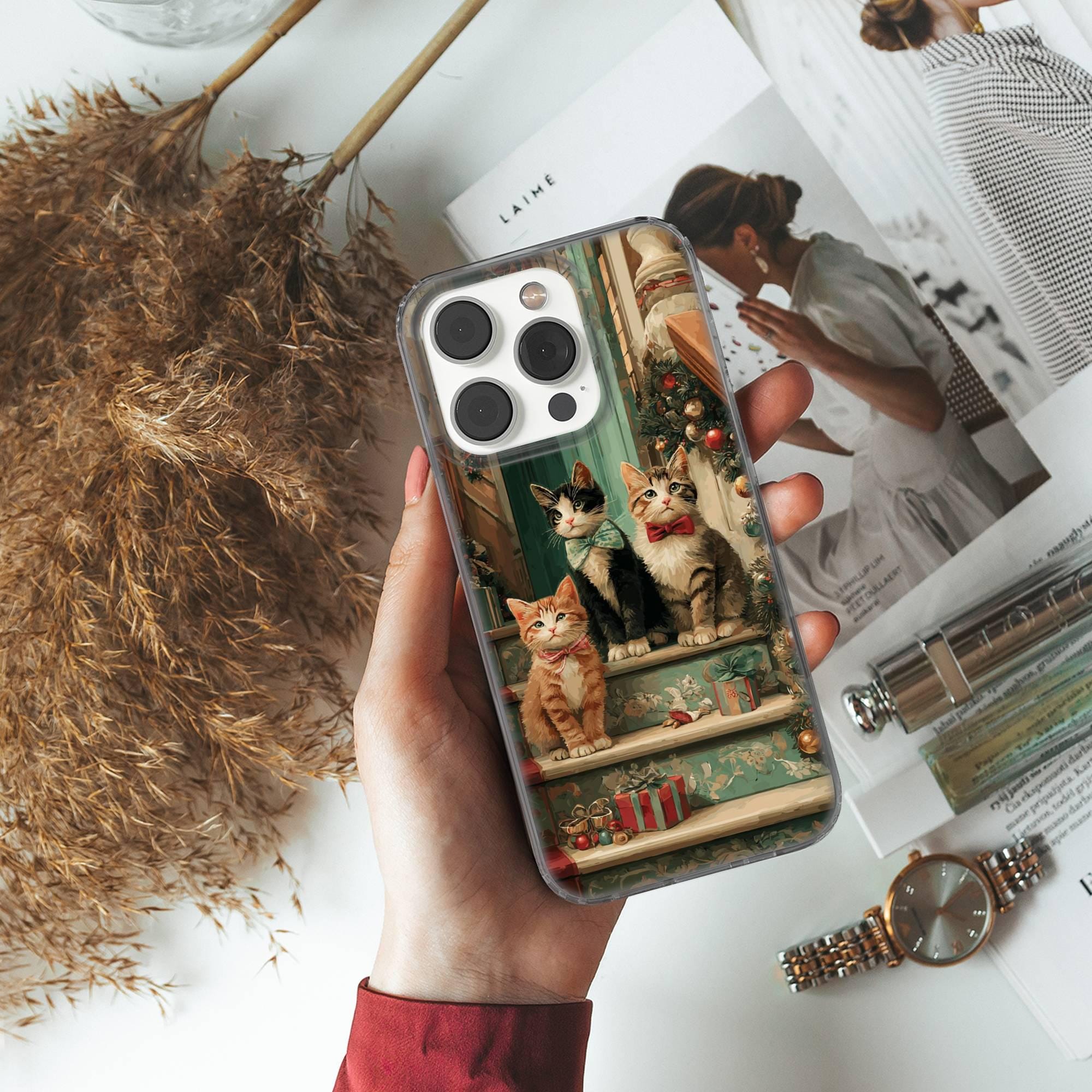This Holiday Kittens Phone case keeps your phone safe and stylish. This case is designed with a thin and lightweight gel (TPU) material that perfectly fits your device. Featuring Cute Cats elegant design, this phone case is sure to add a touch of whimsy to your everyday life.