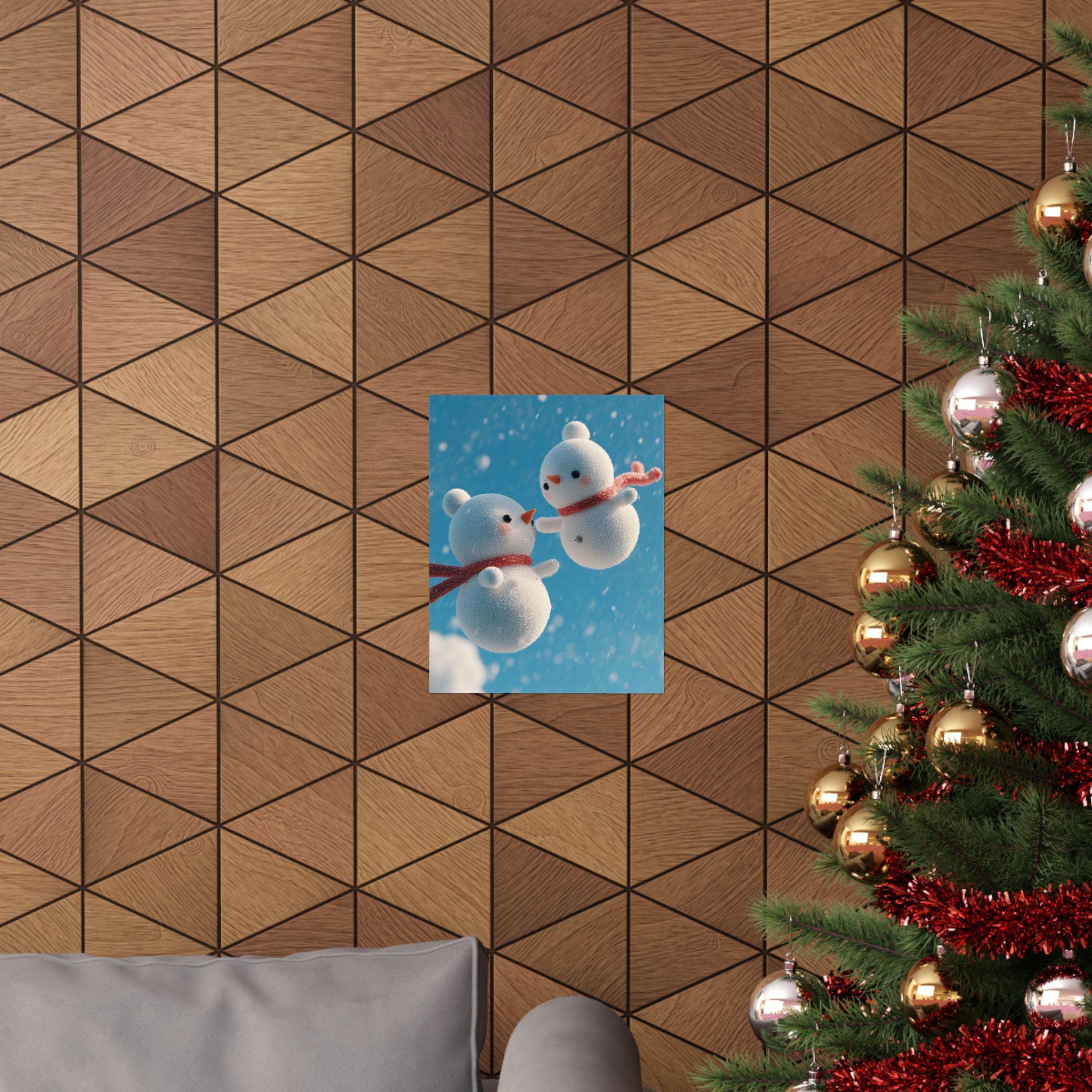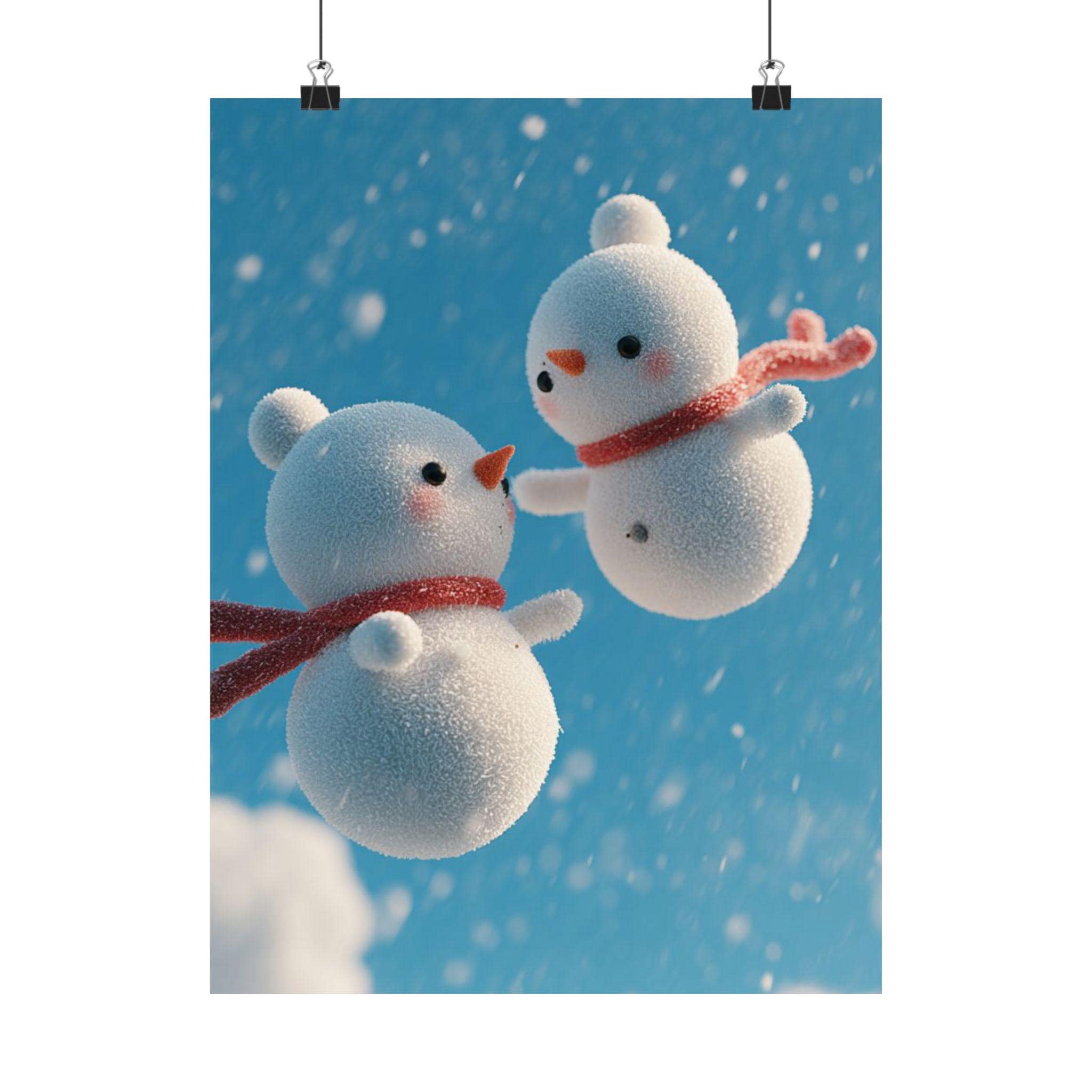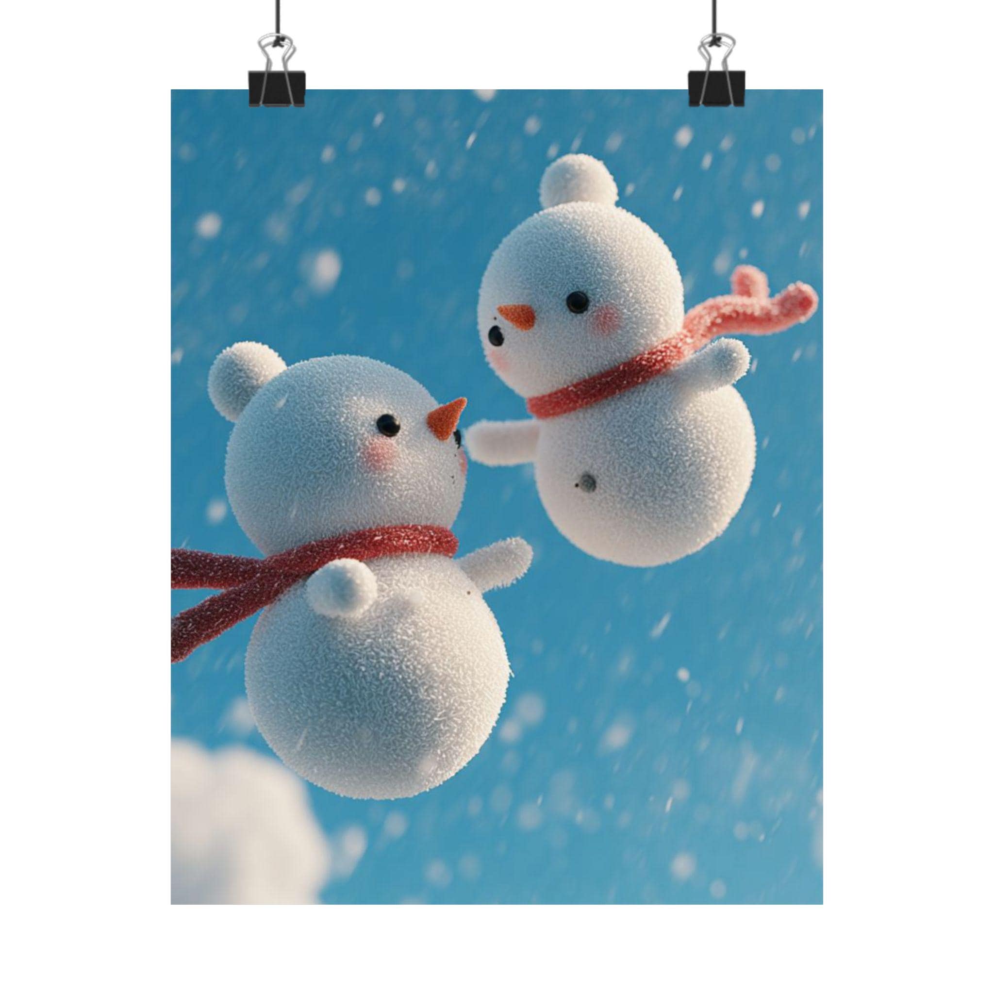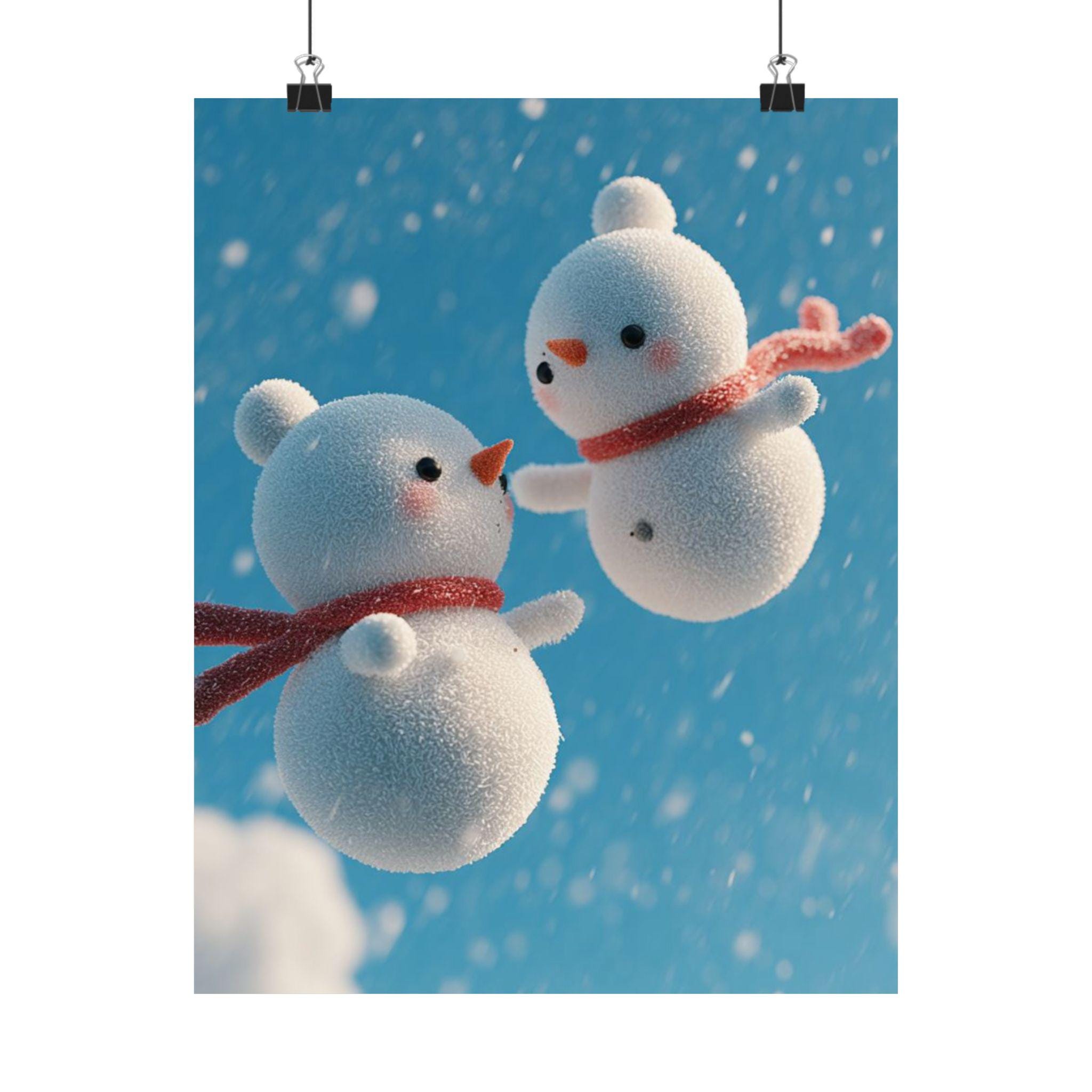 A quiet winter scene rendered with soft lines and gentle color—this matte vertical poster captures a small, floating snowman mid-drift. It feels like the hush after fresh snowfall: cool air, muted light, and a little bit of wonder. Hung on a hallway wall, above a reading nook, or layered in a seasonal gallery, the illustration brings a calm, playful note without shouting for attention. Collectors of illustration and lovers of subtle seasonal décor will appreciate the archival print quality and restrained matte finish that keeps the focus on the artwork. The range of sizes makes it easy to place alone as a focal piece or grouped with other seasonal art for a cozy winter display.