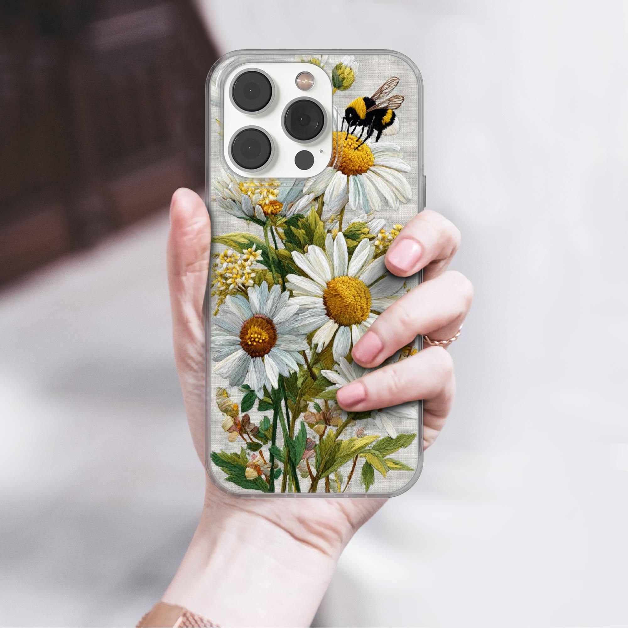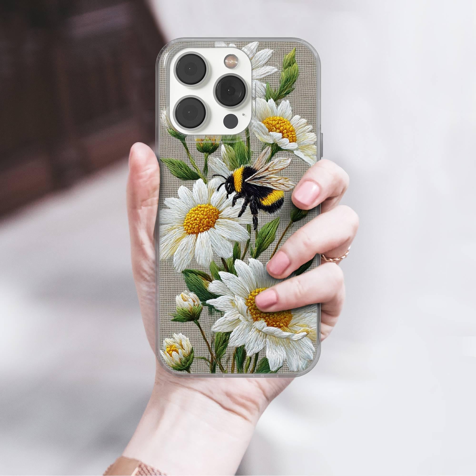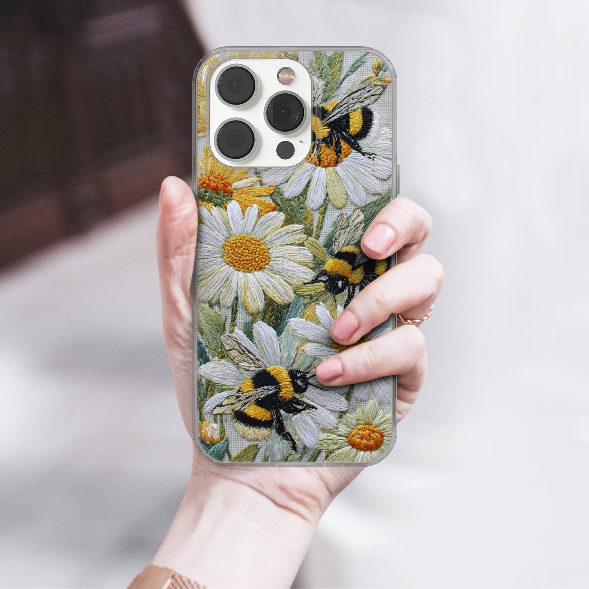 This Floral Bee Phone case keeps your phone safe and stylish. This case is designed with a thin and lightweight gel (TPU) material that perfectly fits your device. Featuring Faux Embroidery elegant design, this phone case is sure to add a touch of whimsy to your everyday life.
