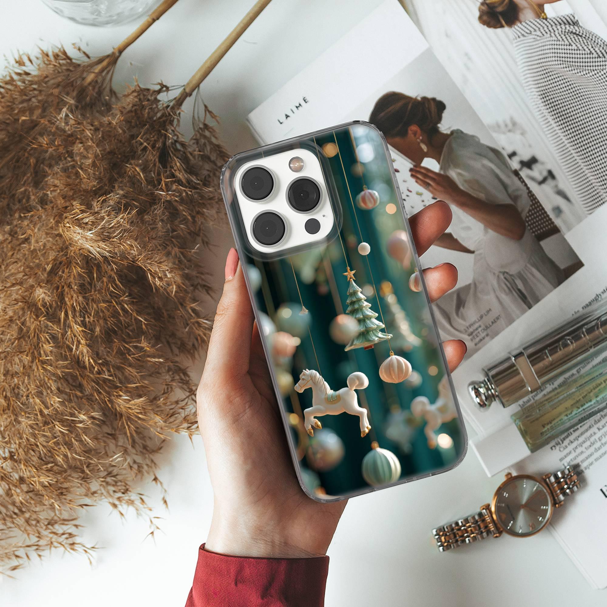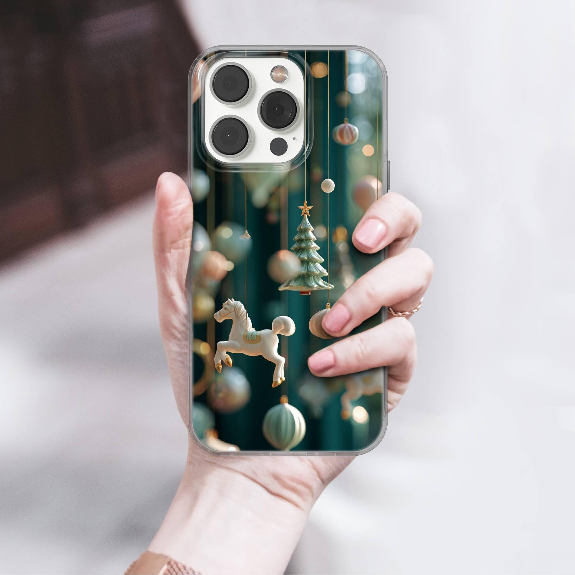 This Carousel Horse Phone case keeps your phone safe and stylish. This case is designed with a thin and lightweight gel (TPU) material that perfectly fits your device. Featuring Christmas ornament elegant design, this phone case is sure to add a touch of whimsy to your everyday life.