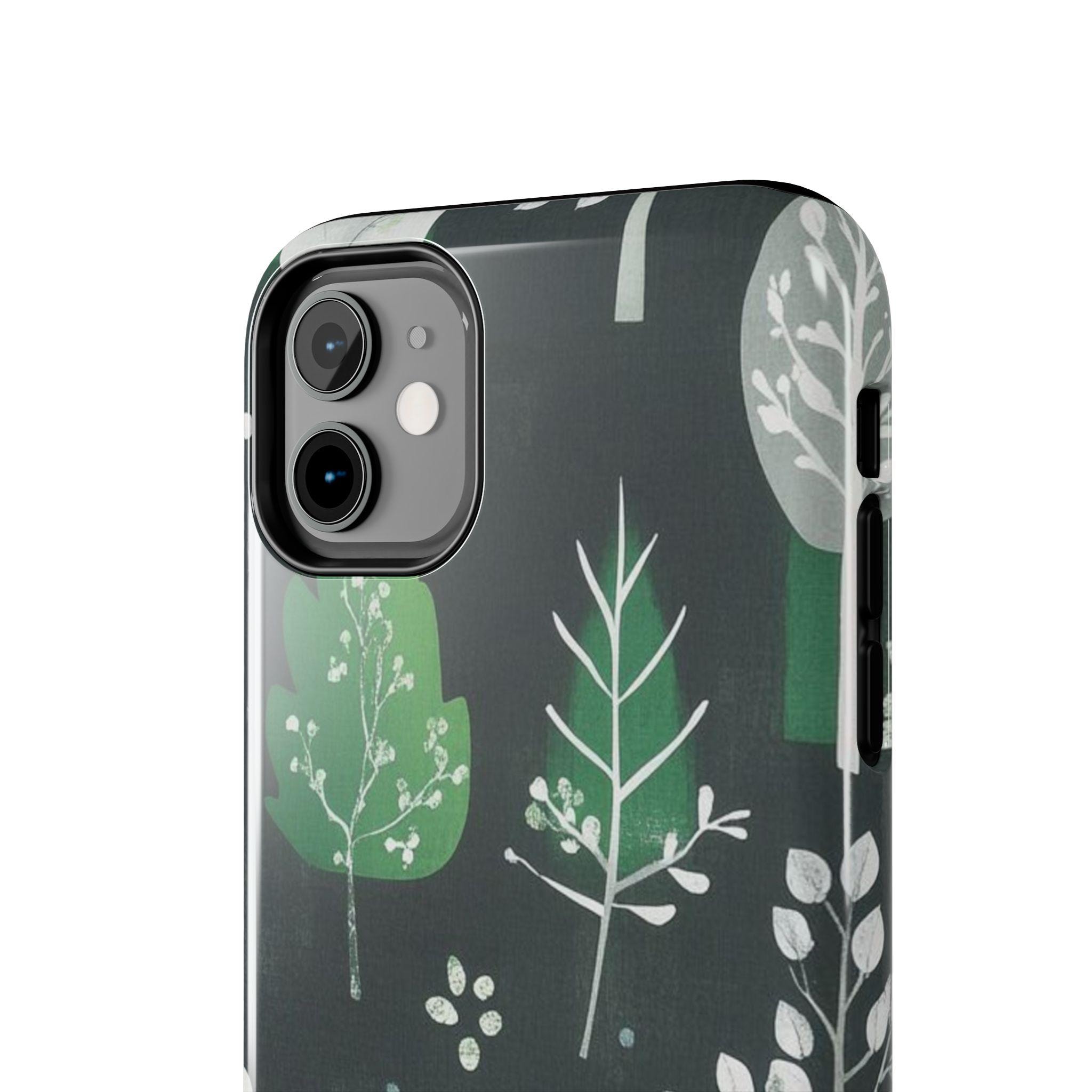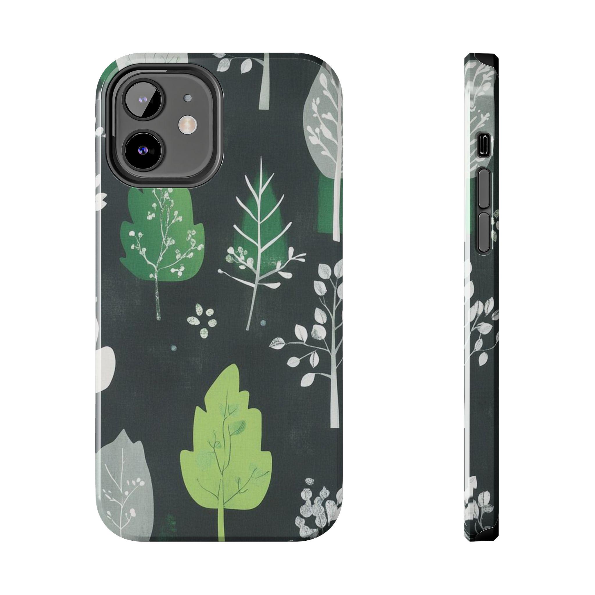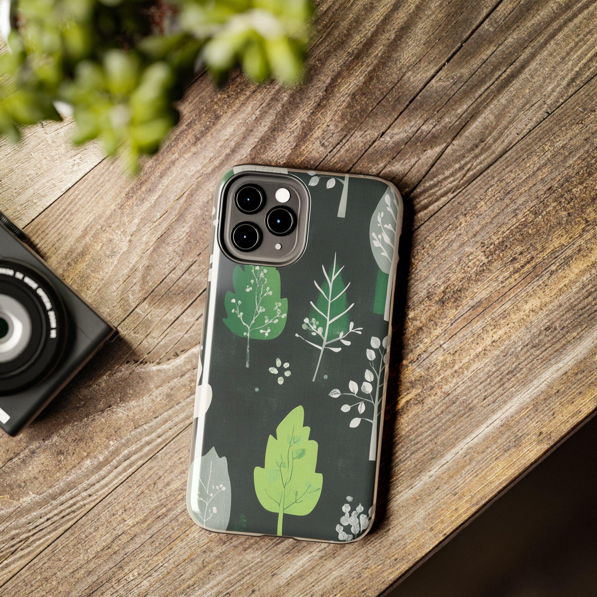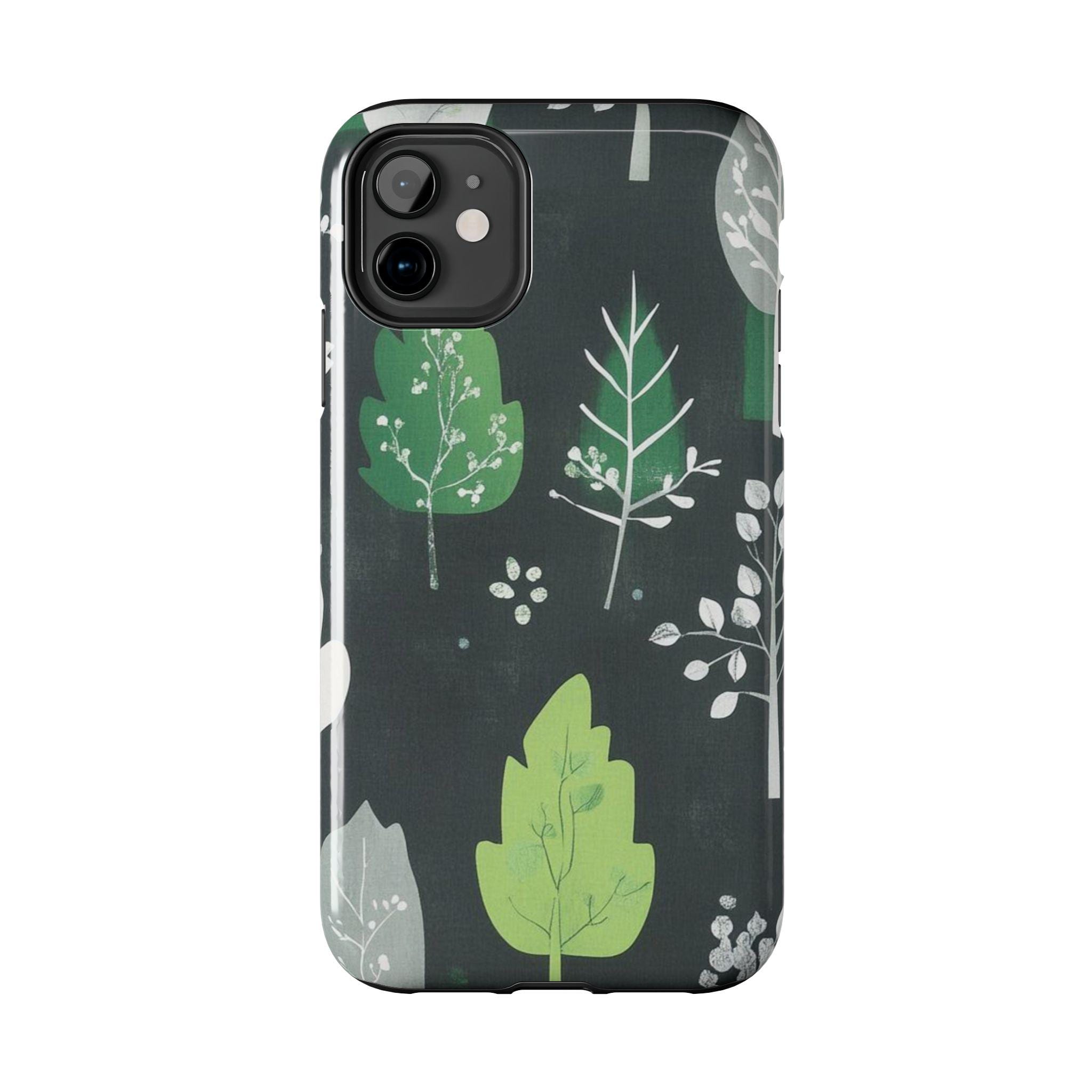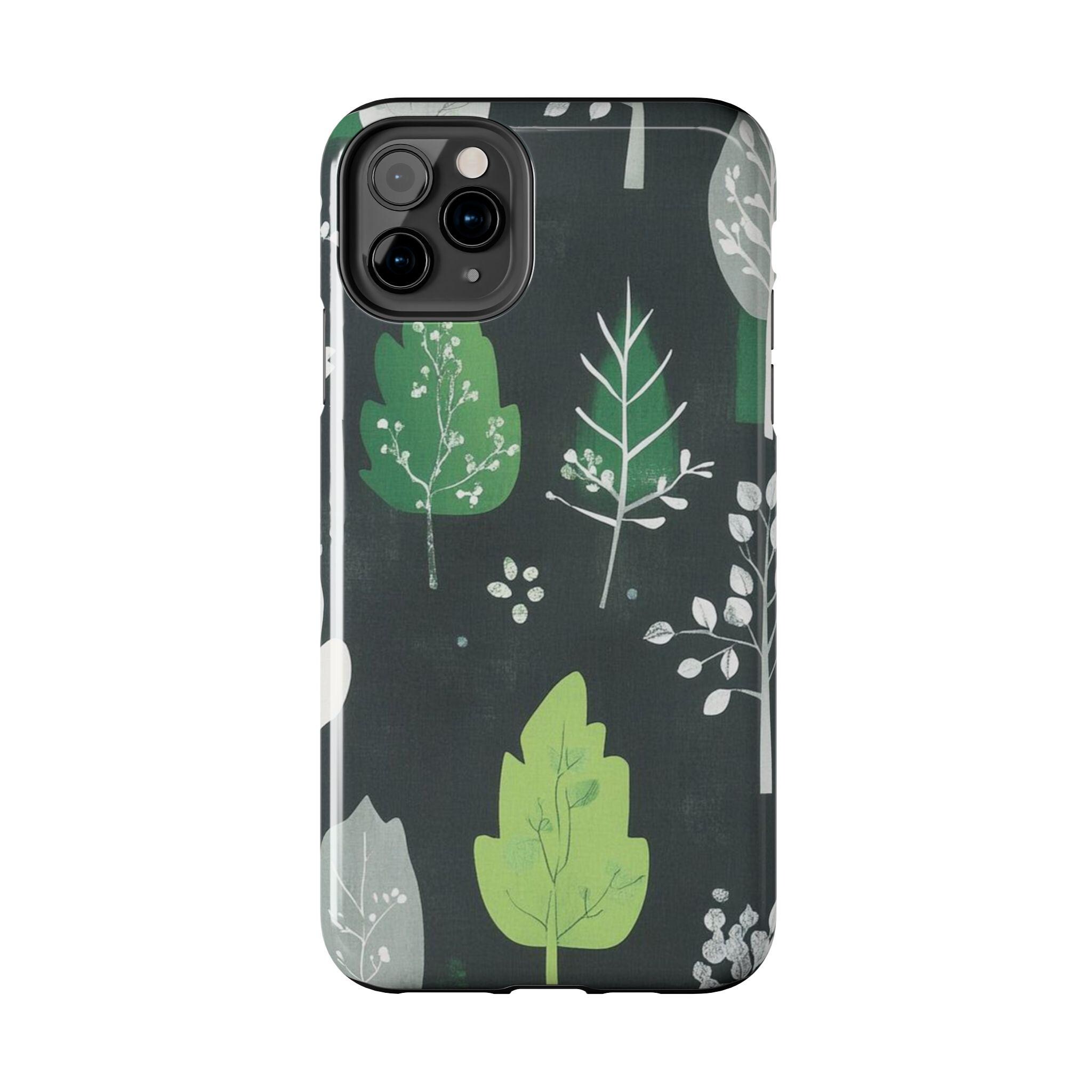 A slim, protective phone case with a soft botanical design that brings a calm, forest-like vibe to your every day. The two-piece construction combines a hard polycarbonate shell with an interior TPU liner to absorb shocks and disperse impacts. A glossy, full-color finish highlights the hand-drawn leaves and subtle foliage on a deep charcoal background, while a lay-flat bezel helps keep the screen safe from light scratches. Lightweight and weather-resistant, this case slips into pockets and backpacks easily and supports wireless charging.