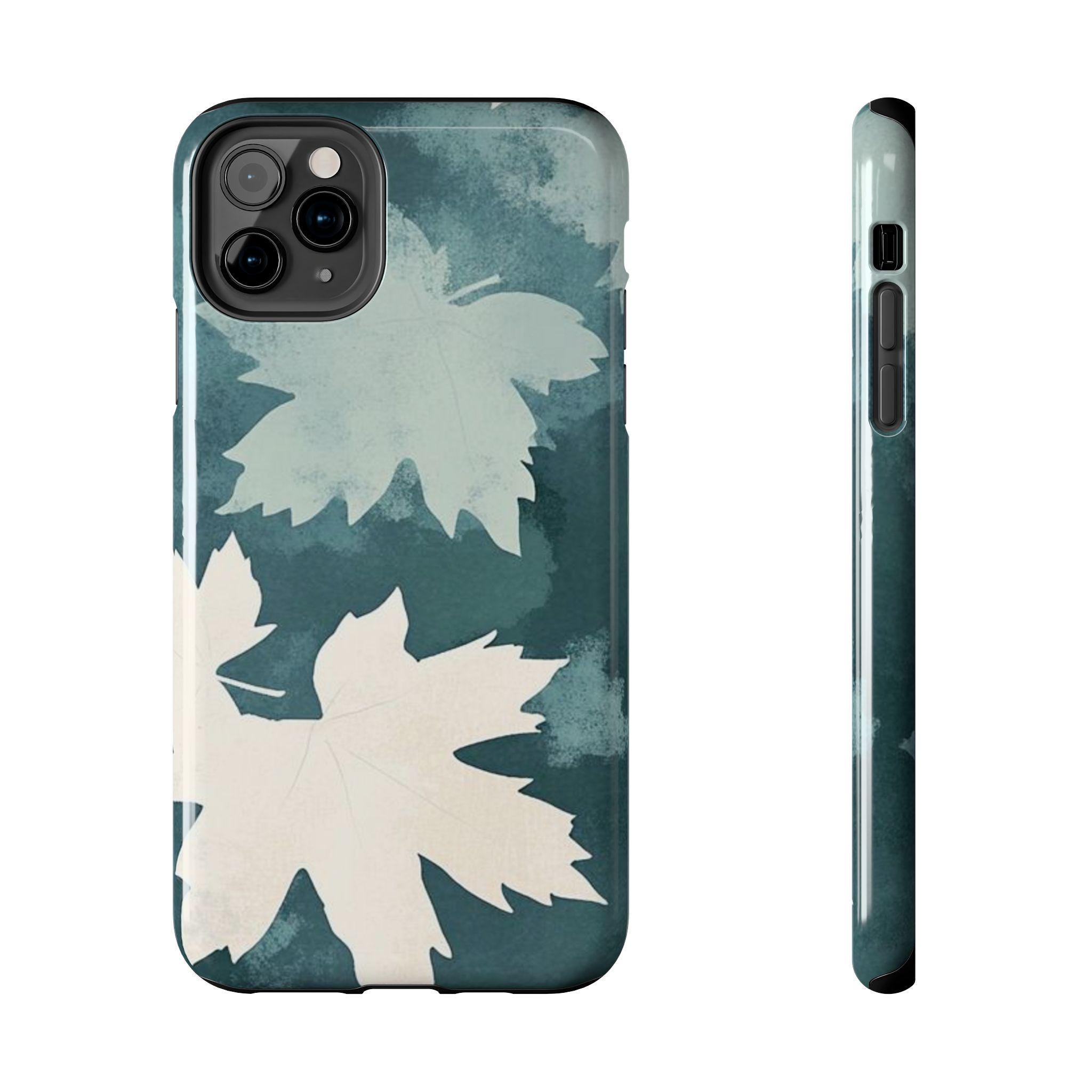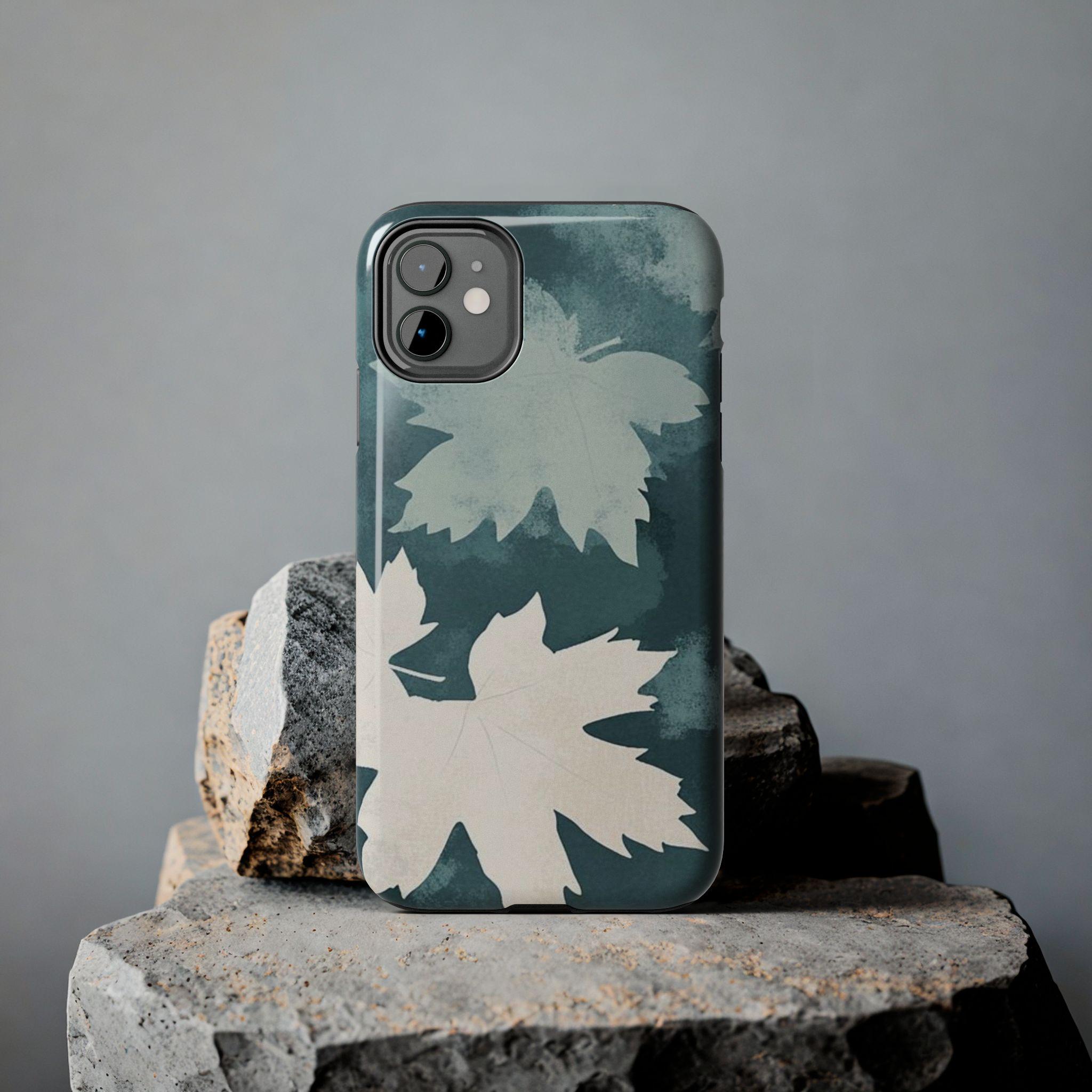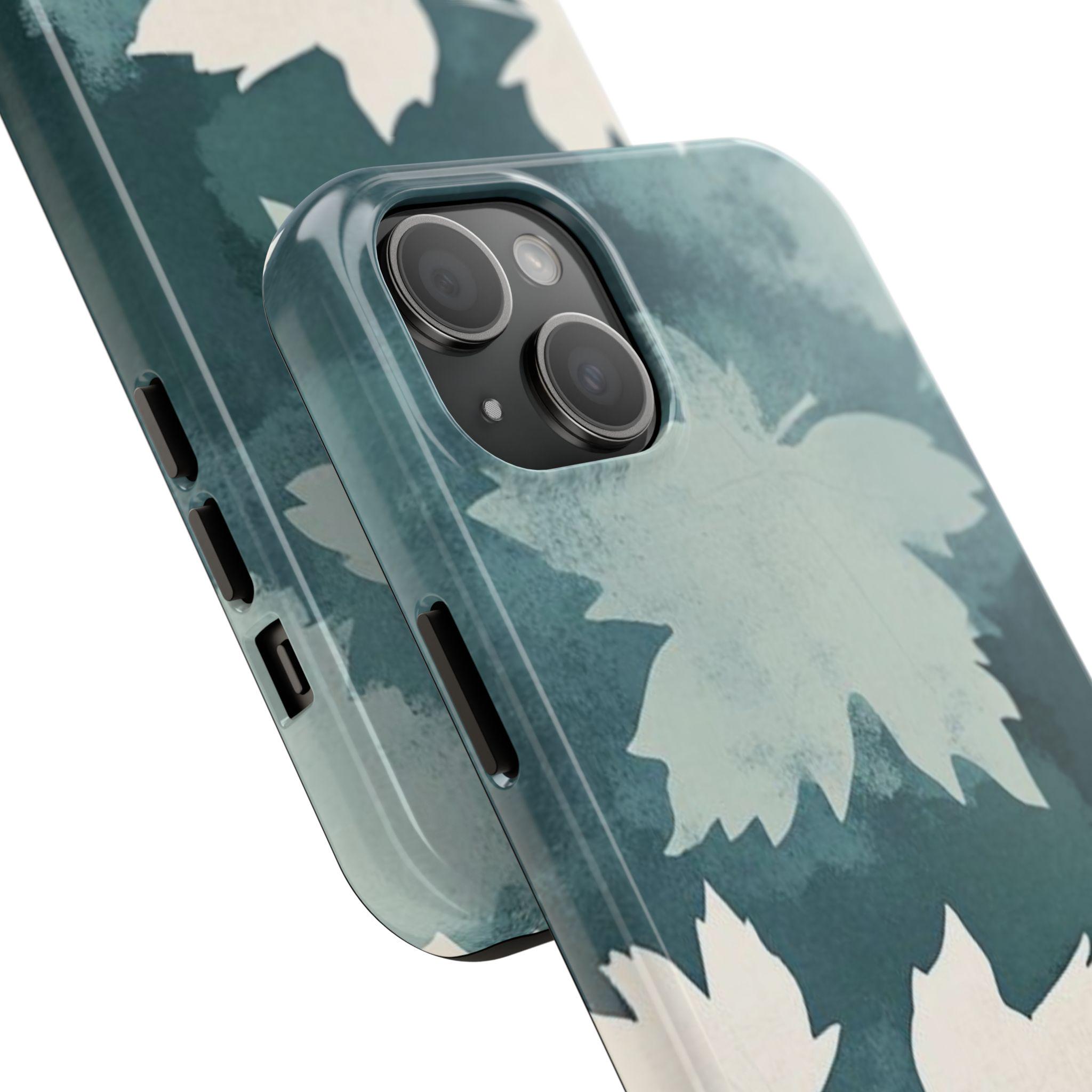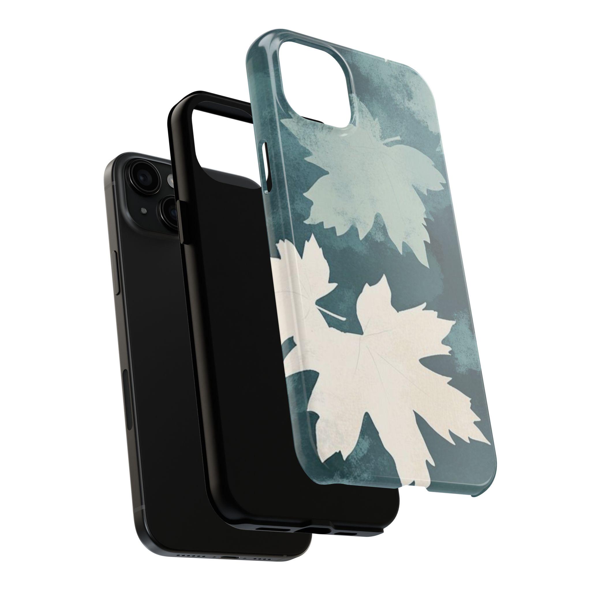 A slim-but-sturdy phone case that brings a quiet, artful moment to your everyday carry. Soft white maple silhouettes drift across a deep teal watercolor wash, like leaves floating on a forest pond at dusk. The glossy surface catches light and deepens the teal hues, while the dual-layer build keeps your phone safe from drops and everyday knocks. This case sits comfortably in hand, grips securely, and slides easily into a bag without extra bulk. For anyone who loves nature-inspired design with practical protection, it adds a calm, textured accent to daily life and small outdoor adventures.