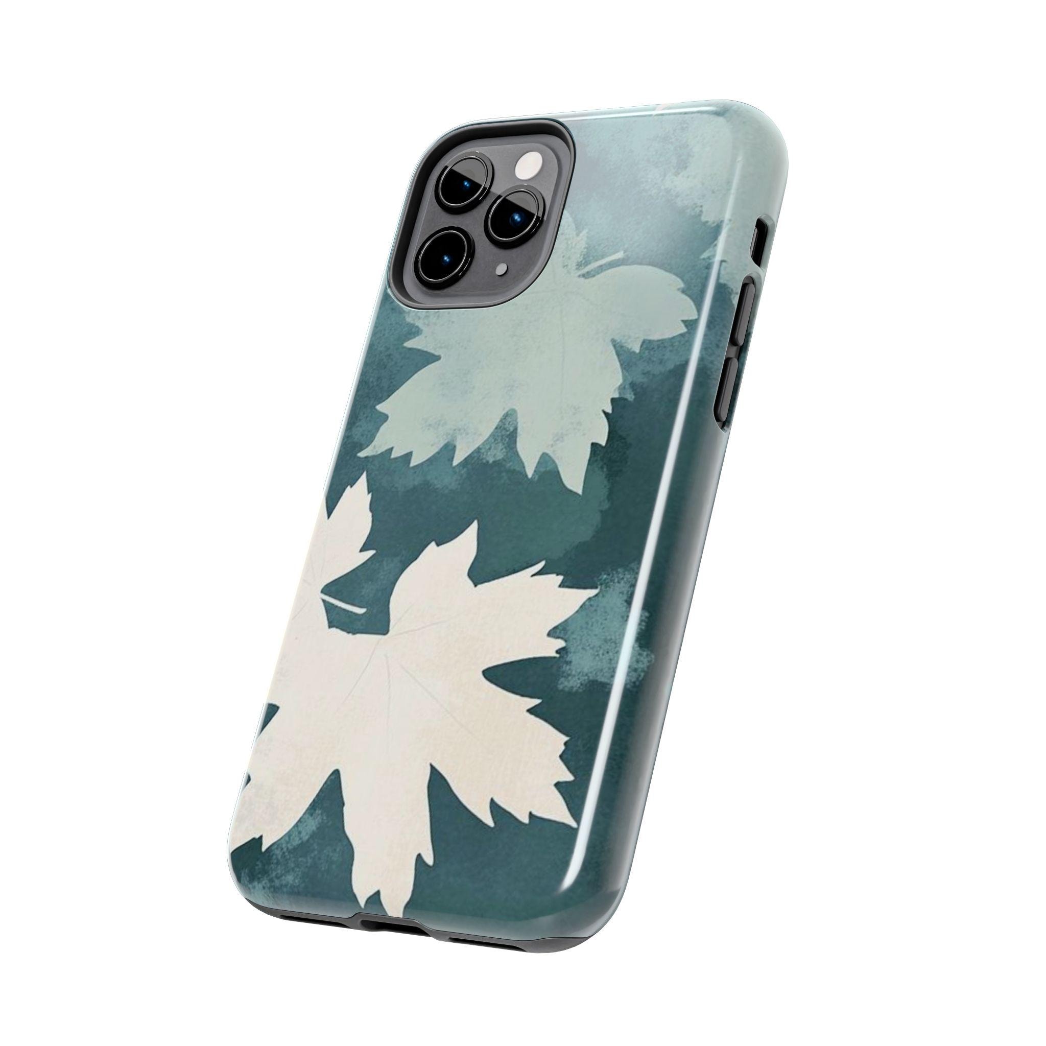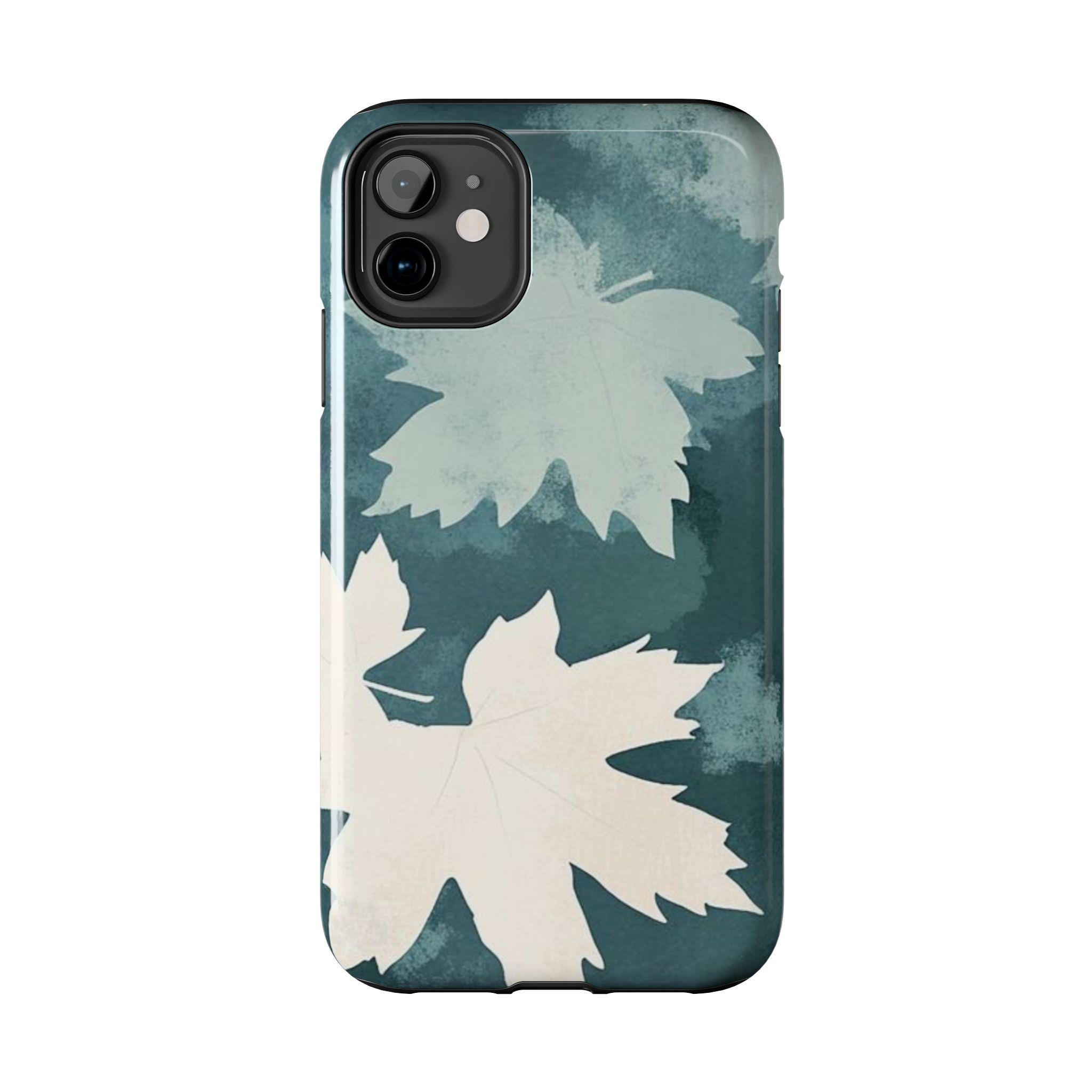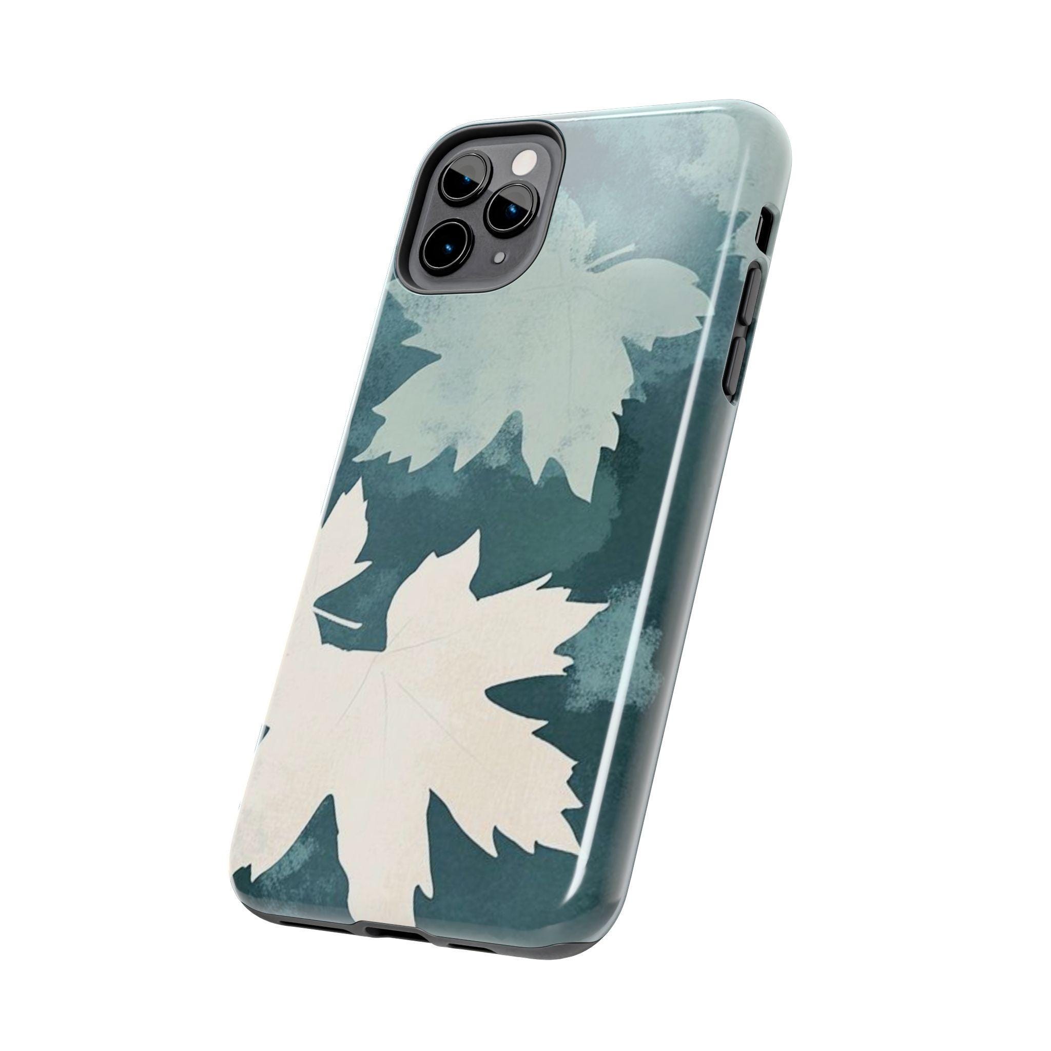 A slim-but-sturdy phone case that brings a quiet, artful moment to your everyday carry. Soft white maple silhouettes drift across a deep teal watercolor wash, like leaves floating on a forest pond at dusk. The glossy surface catches light and deepens the teal hues, while the dual-layer build keeps your phone safe from drops and everyday knocks. This case sits comfortably in hand, grips securely, and slides easily into a bag without extra bulk. For anyone who loves nature-inspired design with practical protection, it adds a calm, textured accent to daily life and small outdoor adventures.