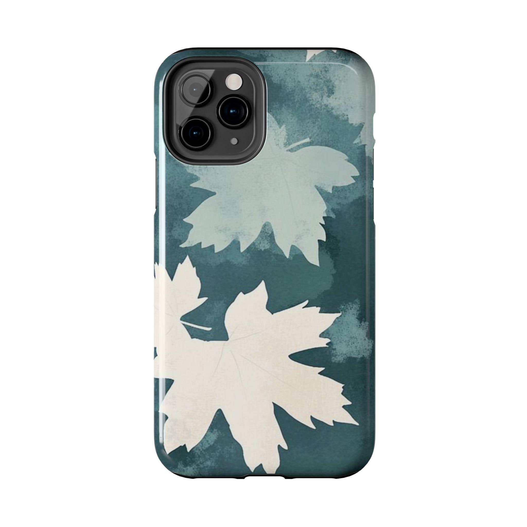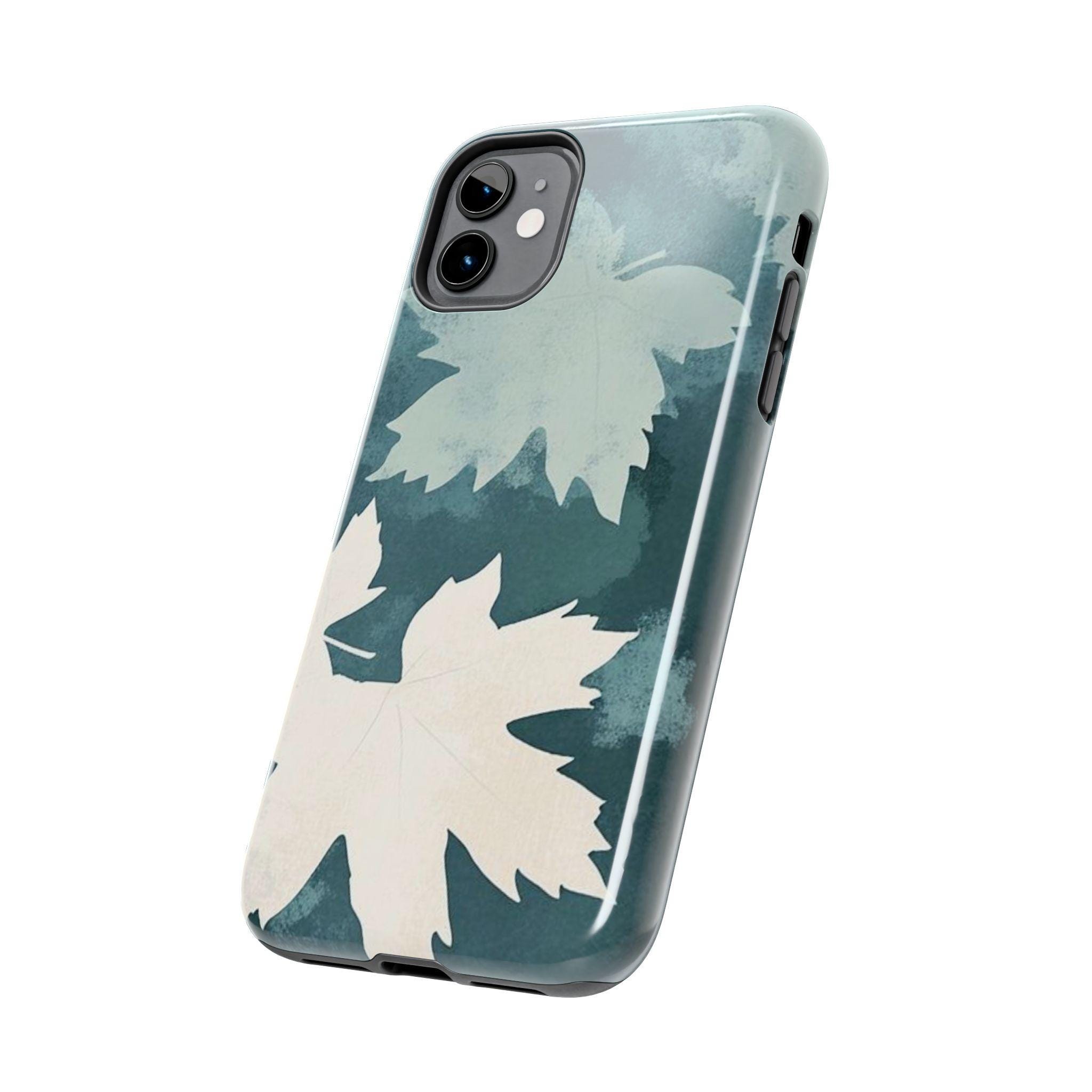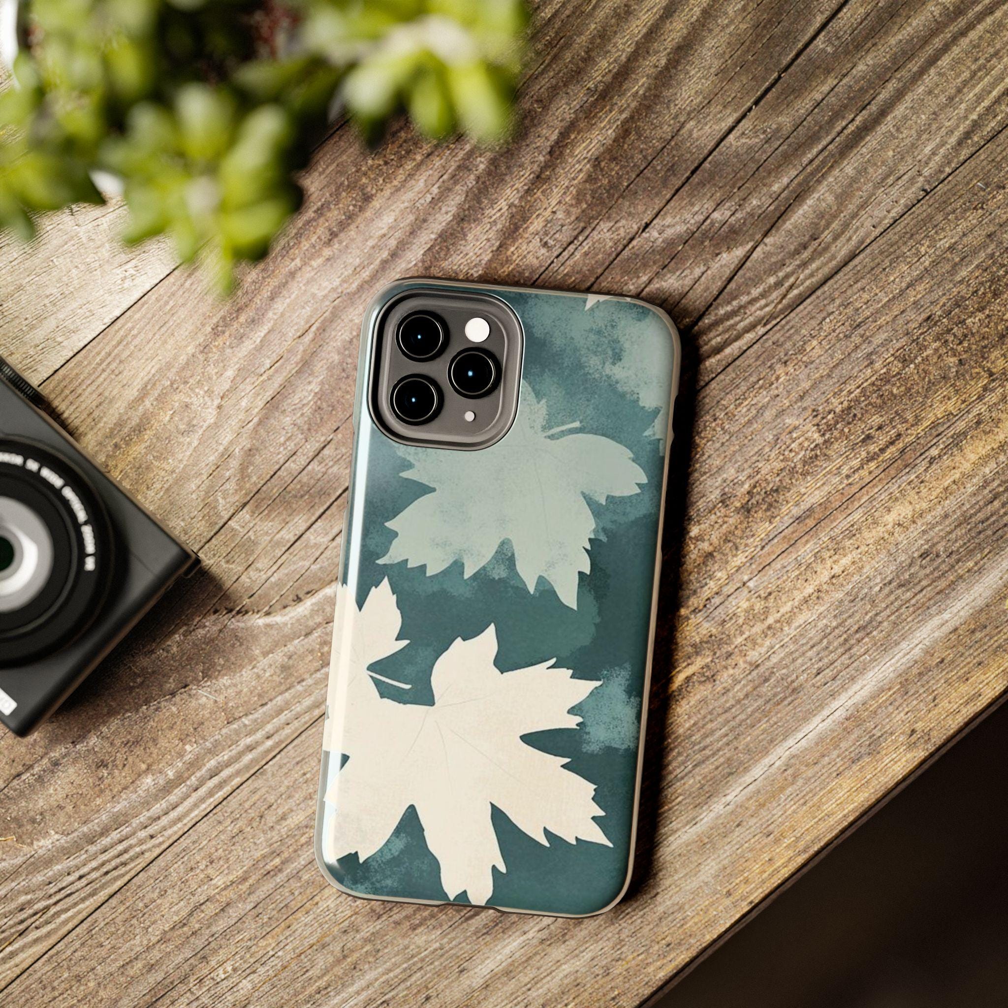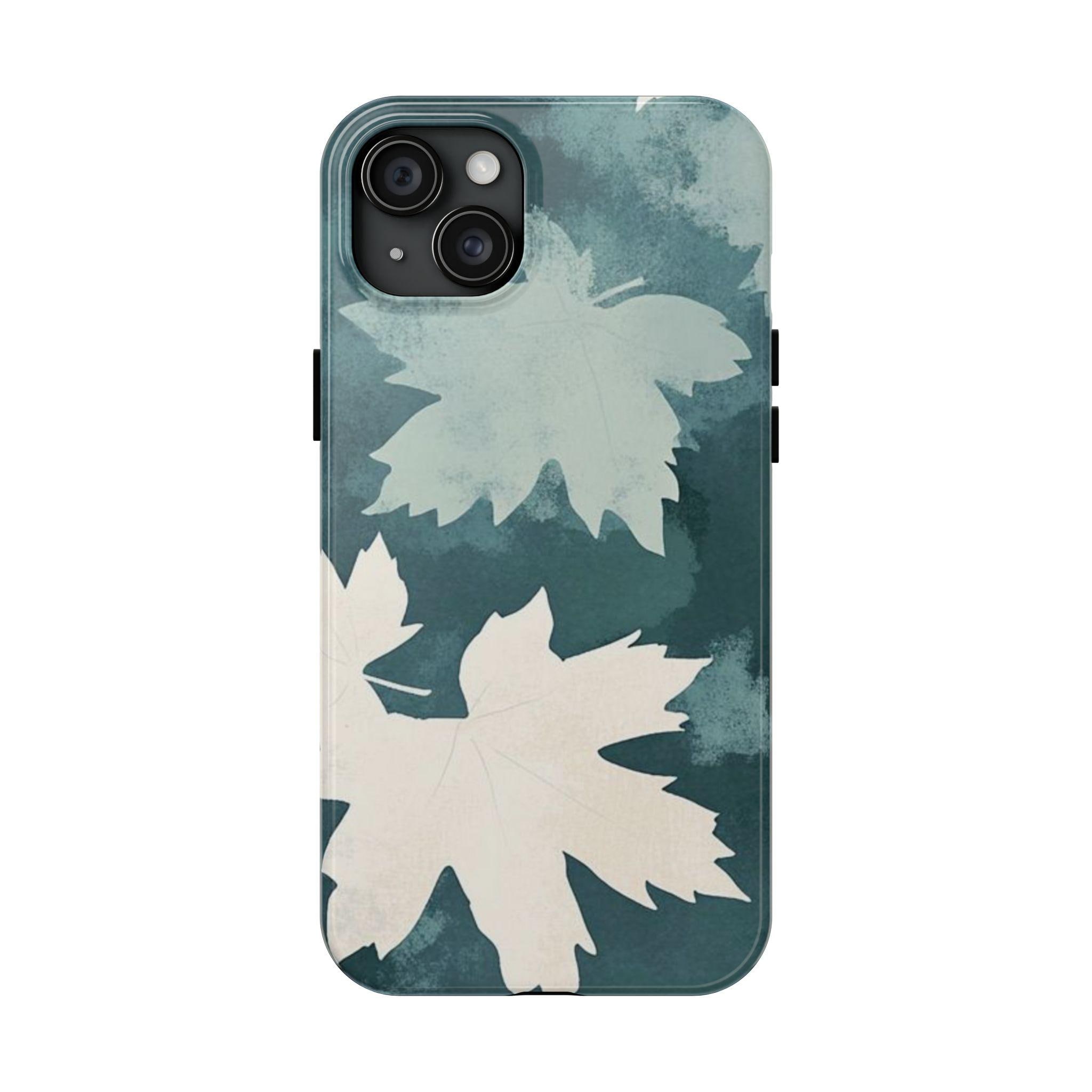 A slim-but-sturdy phone case that brings a quiet, artful moment to your everyday carry. Soft white maple silhouettes drift across a deep teal watercolor wash, like leaves floating on a forest pond at dusk. The glossy surface catches light and deepens the teal hues, while the dual-layer build keeps your phone safe from drops and everyday knocks. This case sits comfortably in hand, grips securely, and slides easily into a bag without extra bulk. For anyone who loves nature-inspired design with practical protection, it adds a calm, textured accent to daily life and small outdoor adventures.