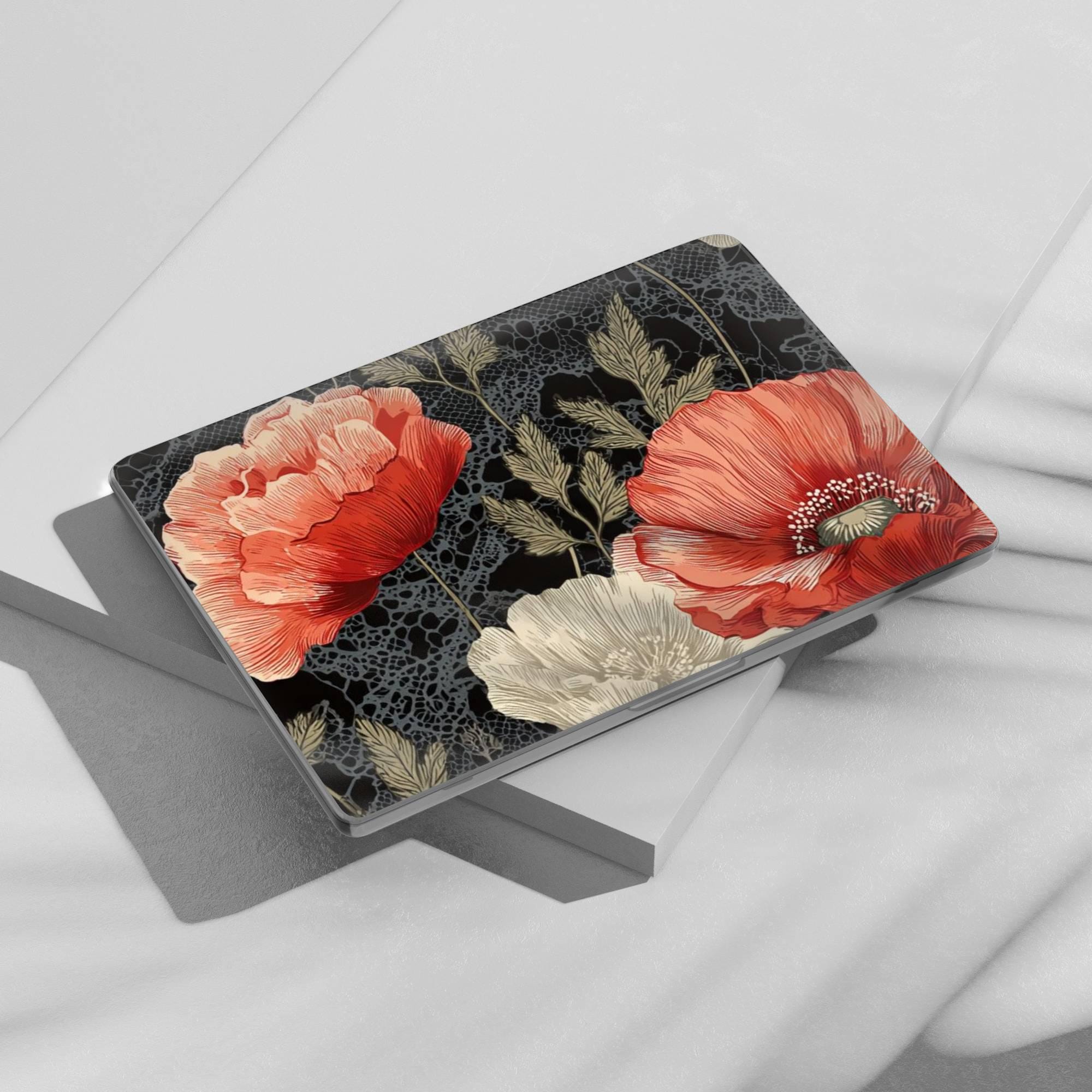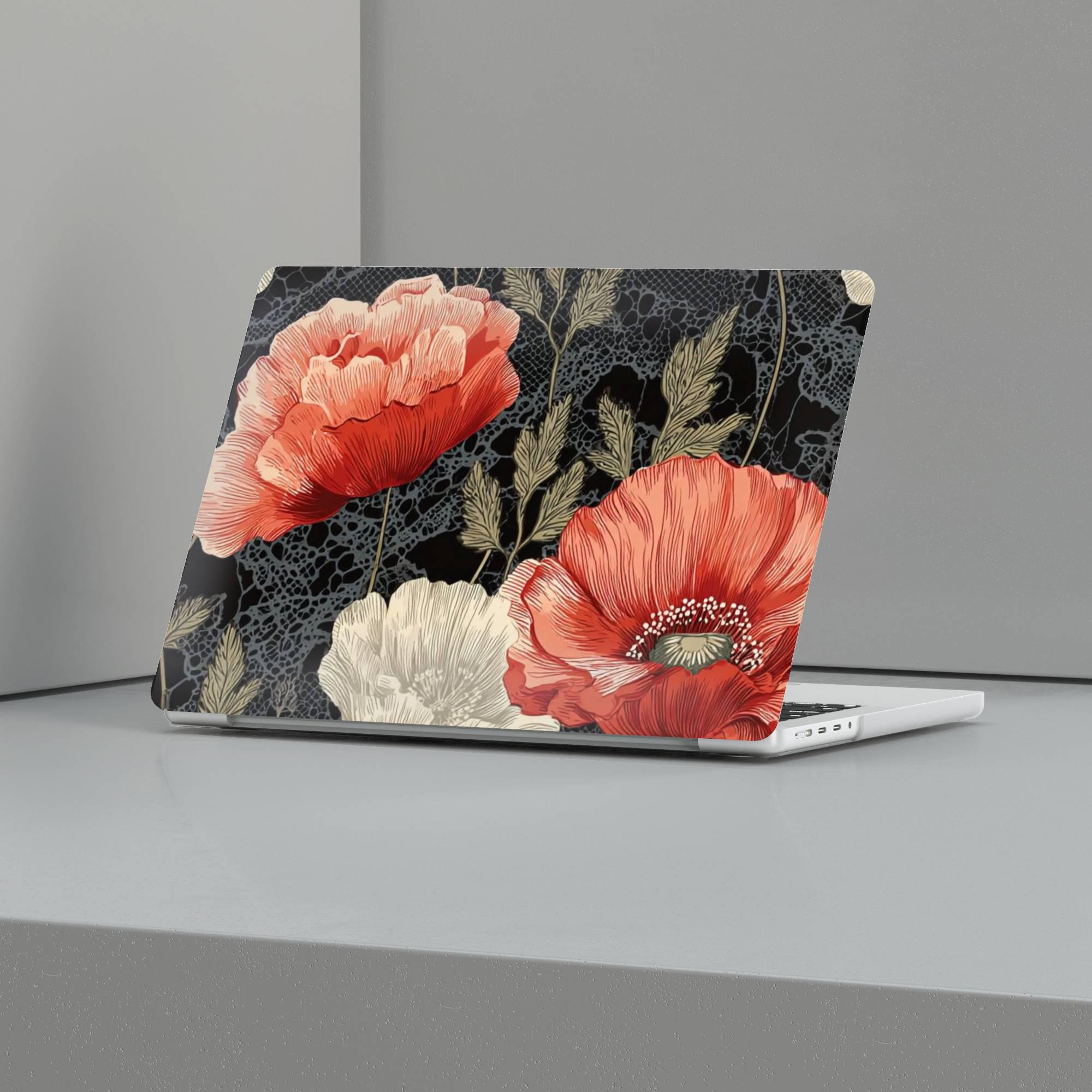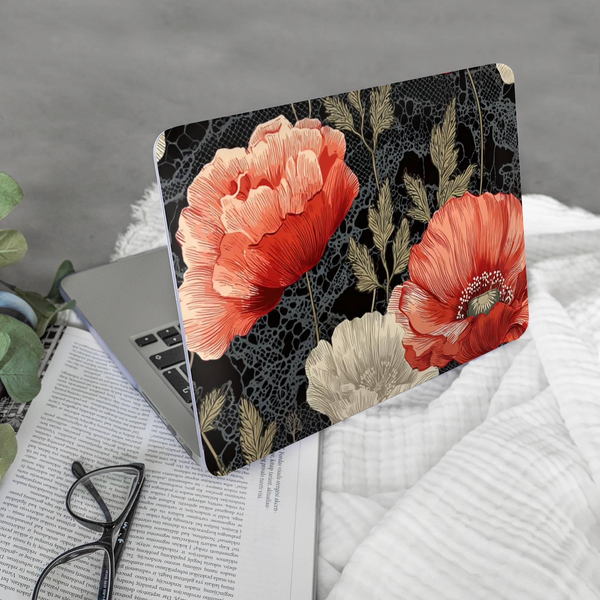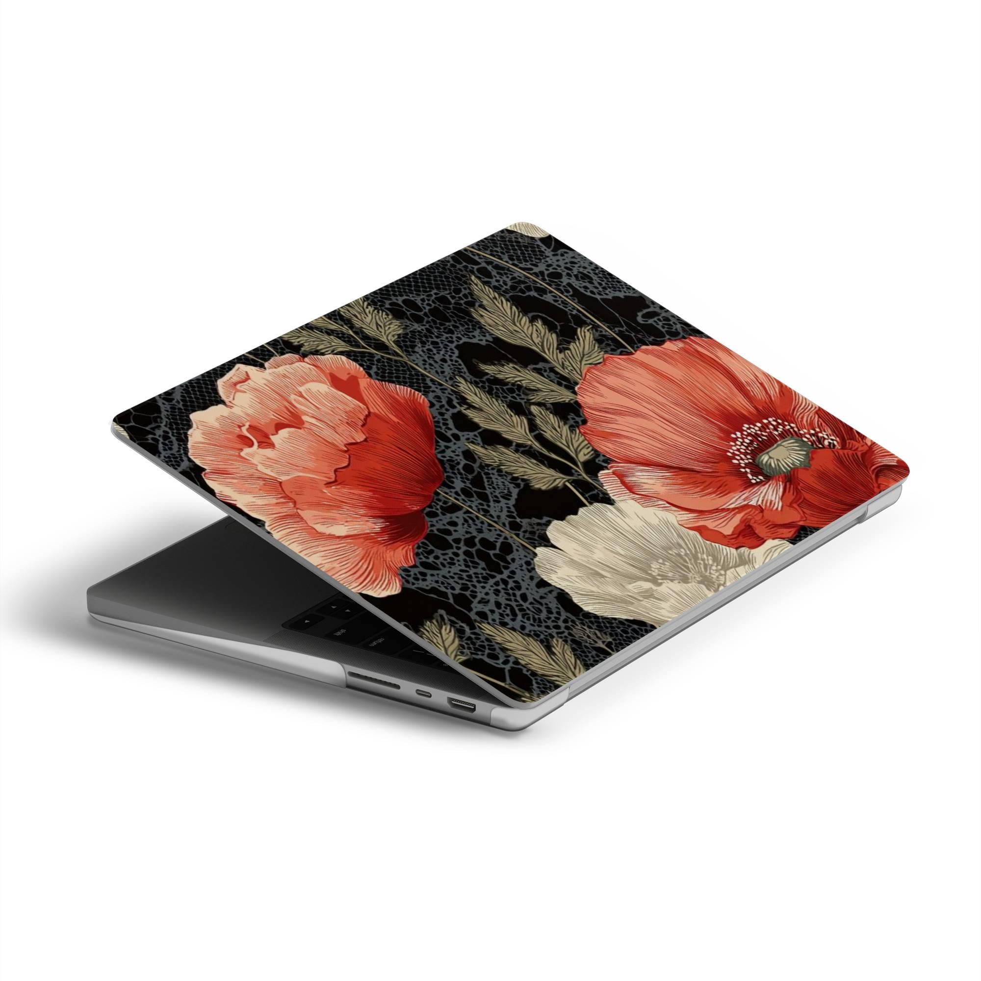 This Poppy Floral MacBook case keeps your Mac safe and stylish. This case is designed with a thin, durable, and lightweight plastic material that perfectly fits your device. Featuring a vintage red, elegant design, this MacBook case is sure to add a touch of whimsy to your everyday life.