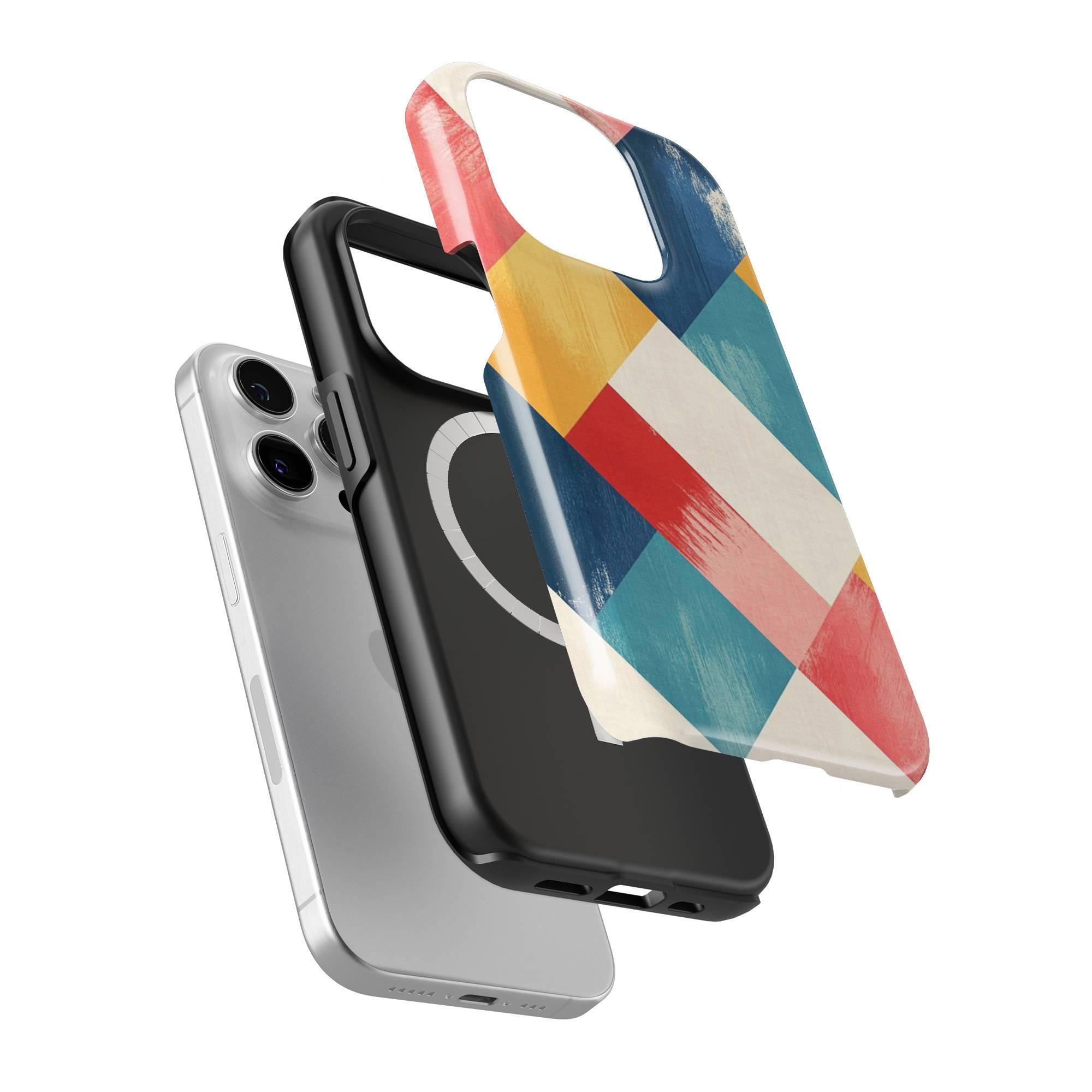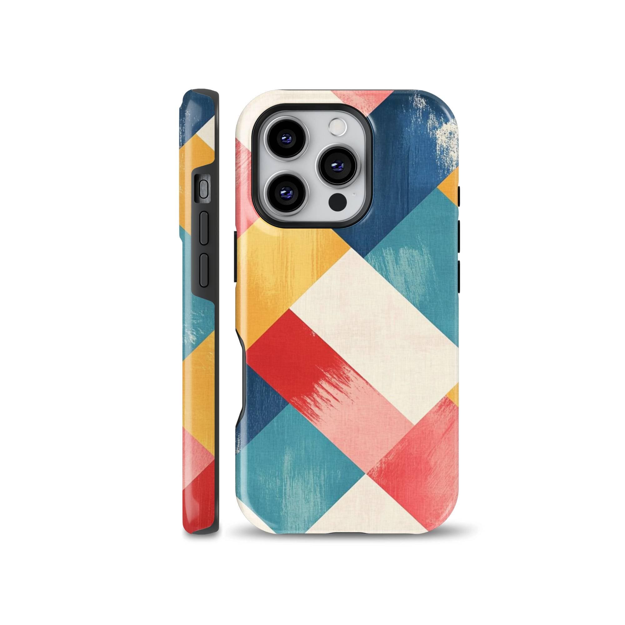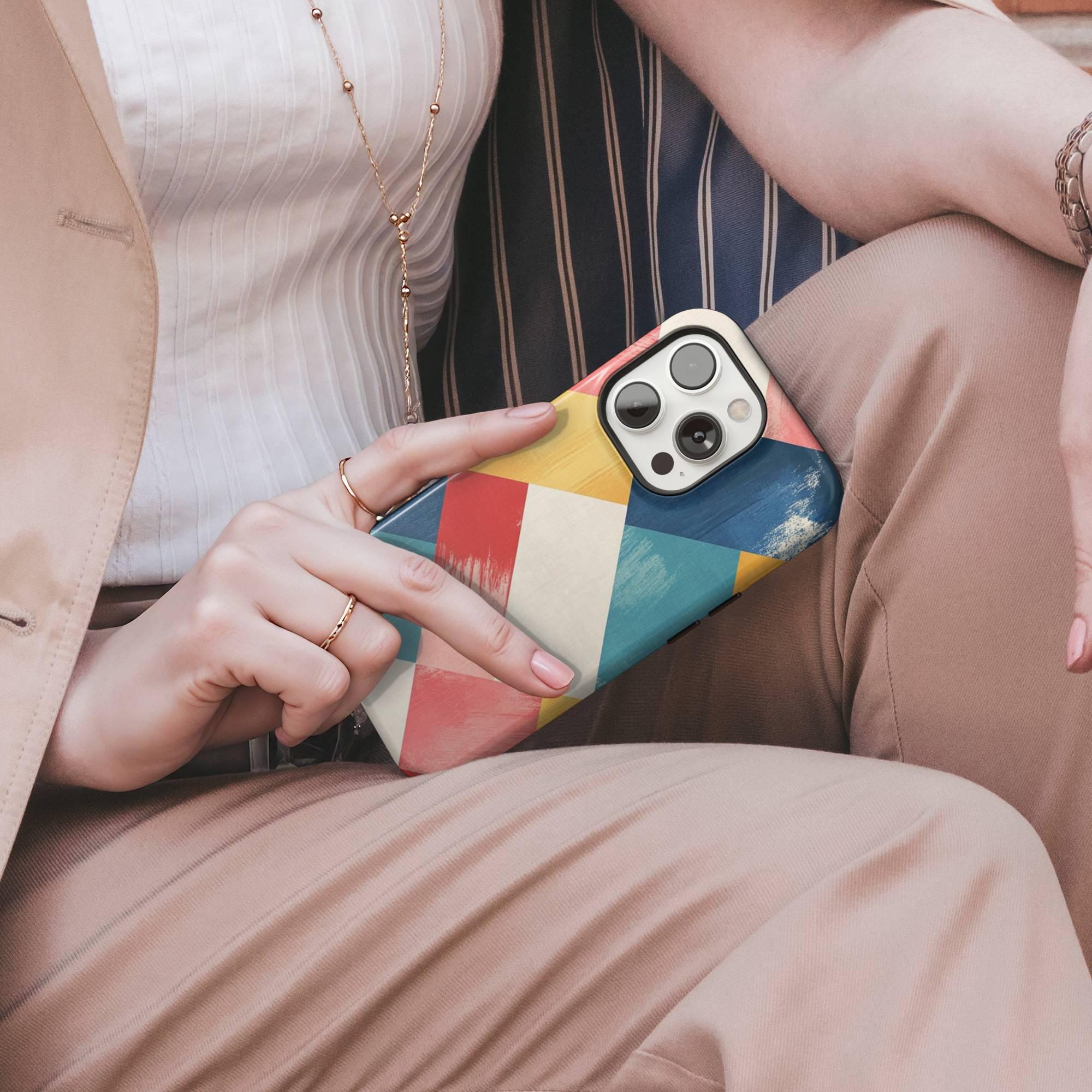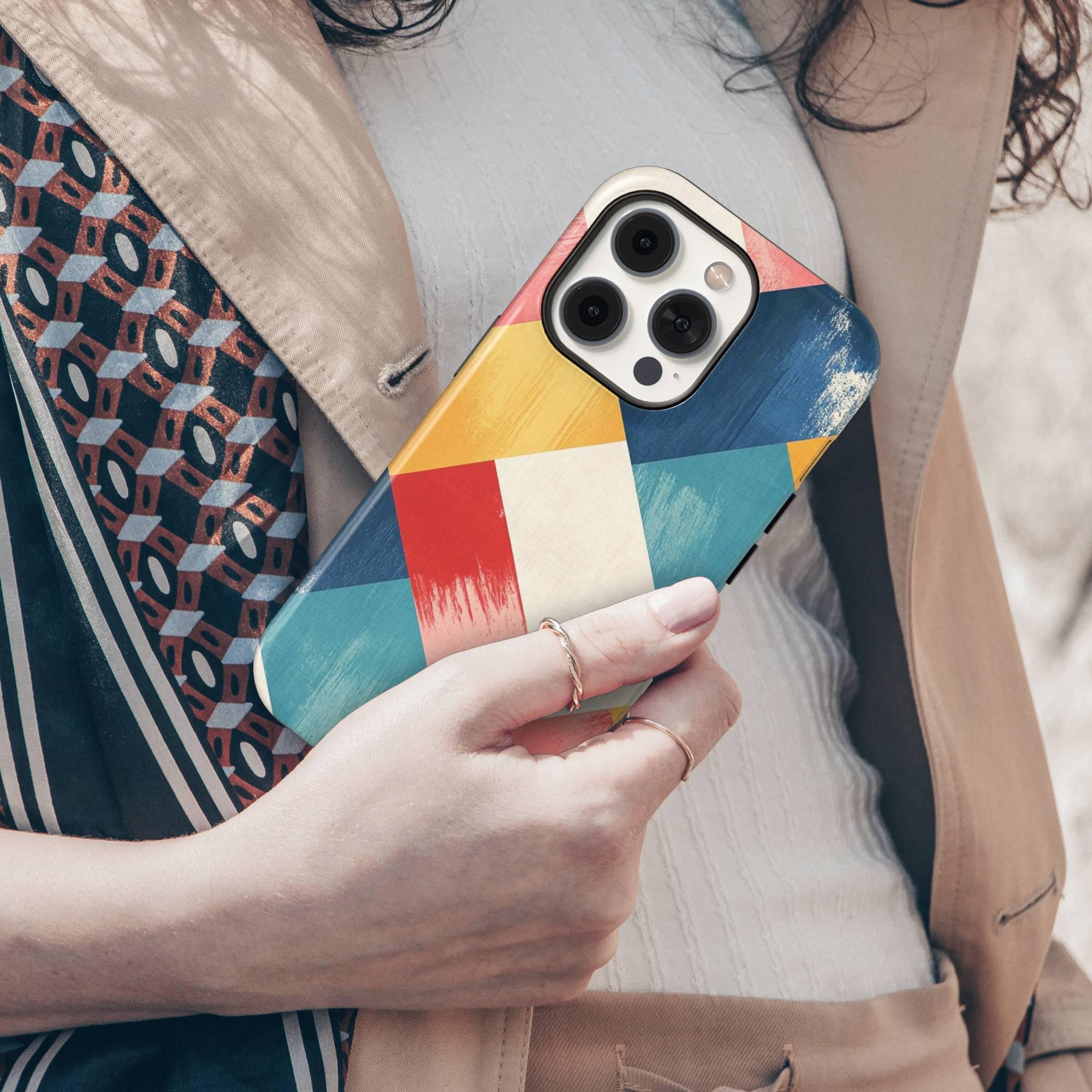This Retro Geometric Tough MagSafe Phone Case keeps your phone safe and stylish. Sure, accidents happen. Thankfully, with these premium, ridiculously durable phone cases, accidents won’t have as many consequences. Lightweight yet tough as nails, these cases are a must-have style AND protection accessory. Featuring a colorful, elegant triangle design, this phone case is sure to add a touch of whimsy to your everyday life.