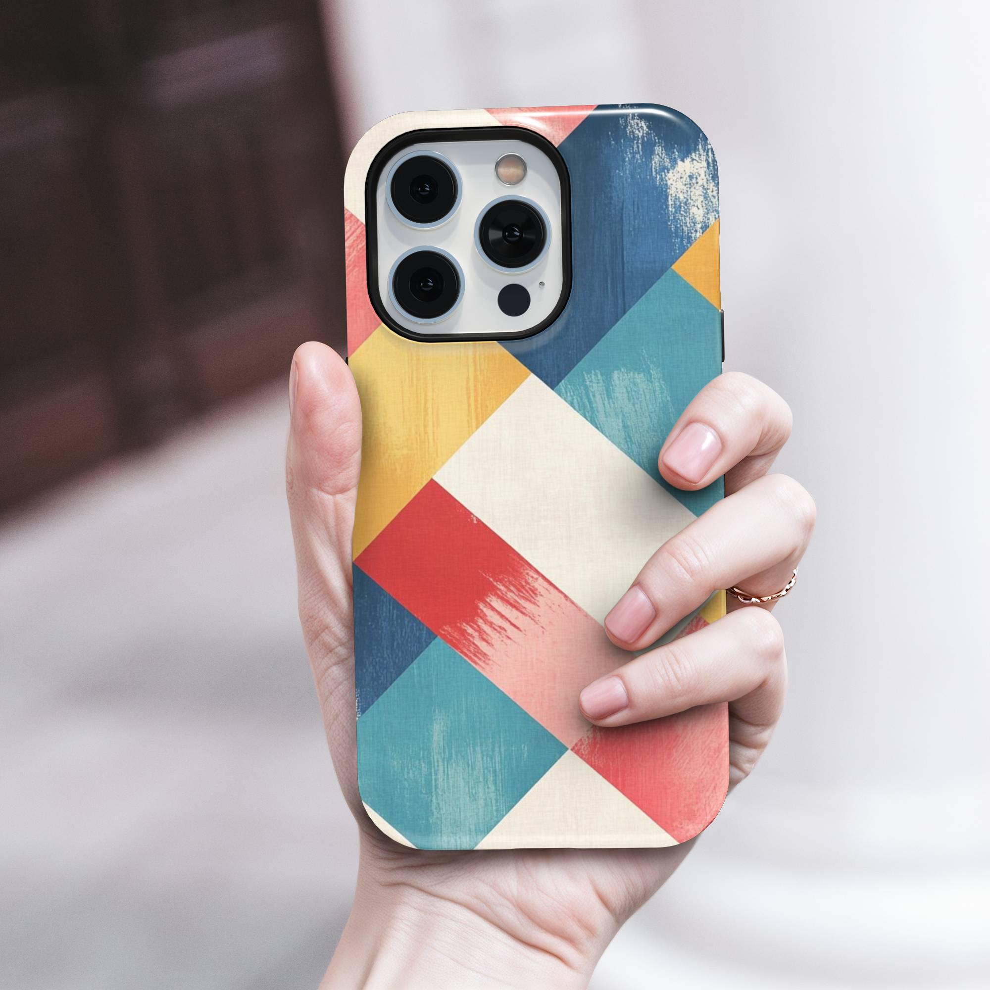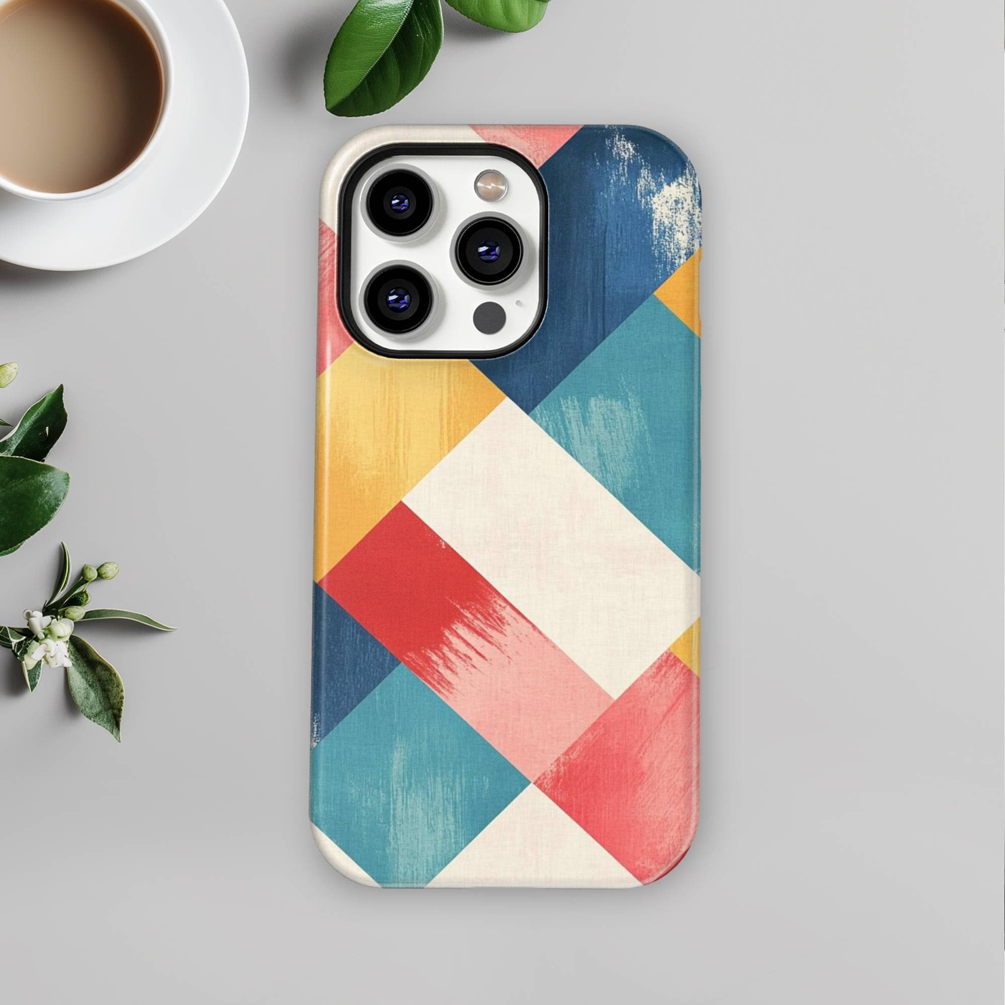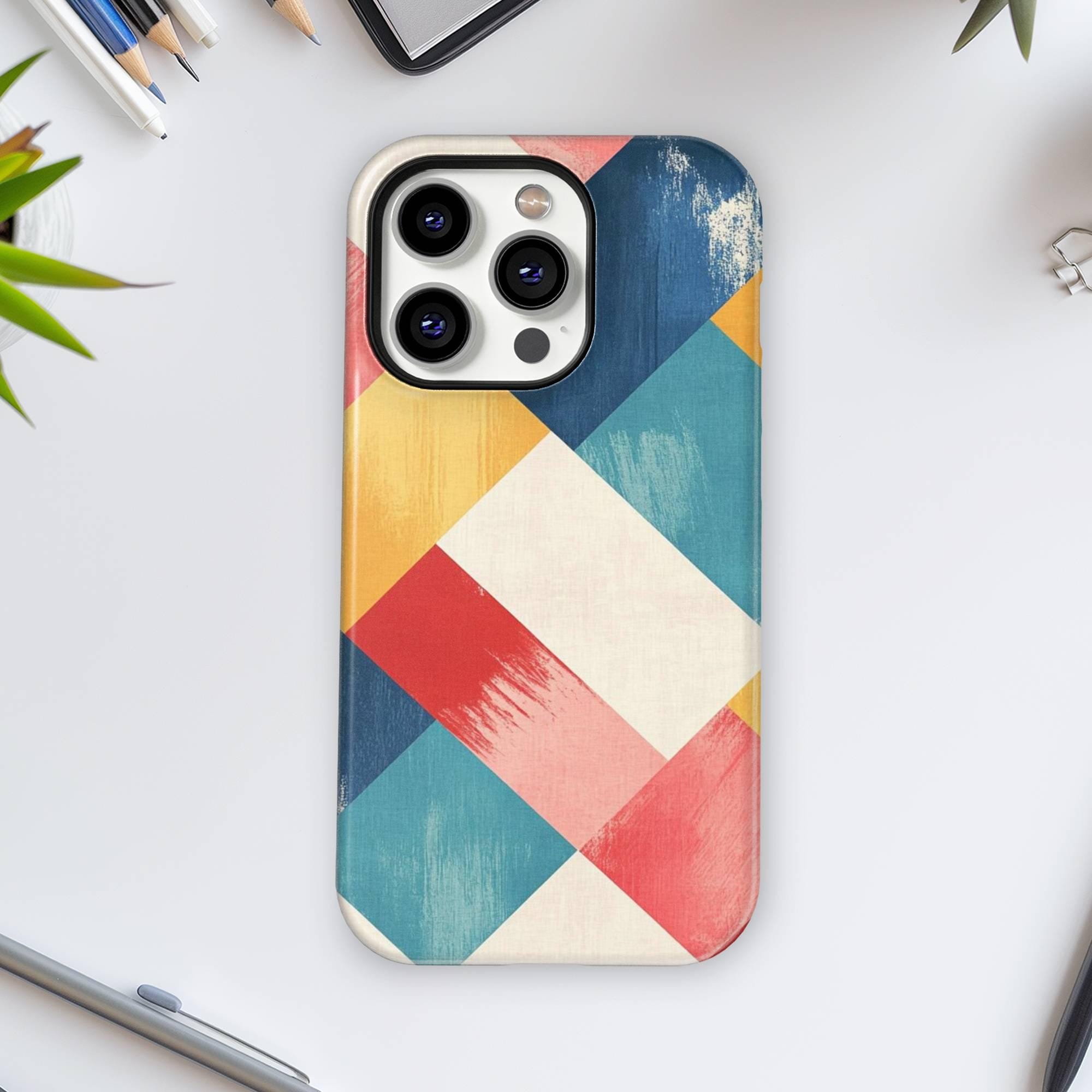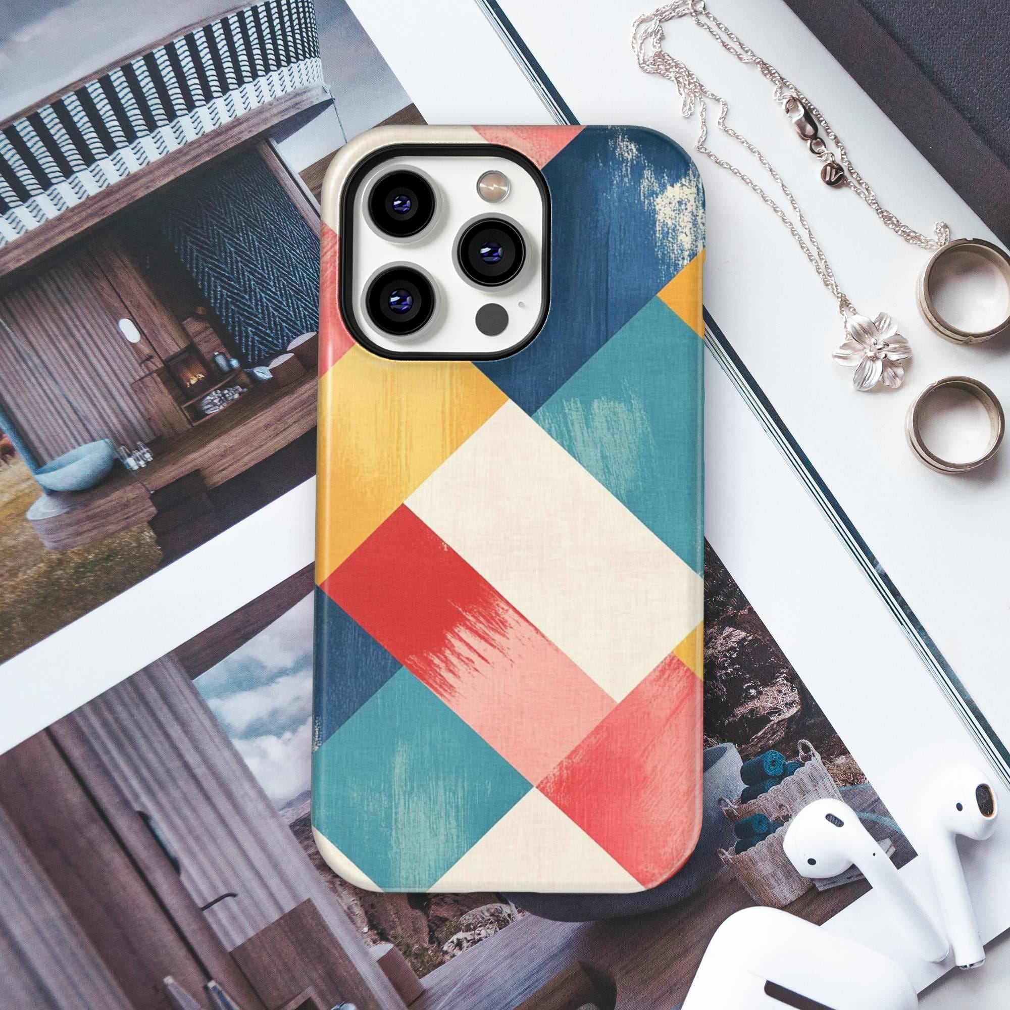This Retro Geometric Tough MagSafe Phone Case keeps your phone safe and stylish. Sure, accidents happen. Thankfully, with these premium, ridiculously durable phone cases, accidents won’t have as many consequences. Lightweight yet tough as nails, these cases are a must-have style AND protection accessory. Featuring a colorful, elegant triangle design, this phone case is sure to add a touch of whimsy to your everyday life.