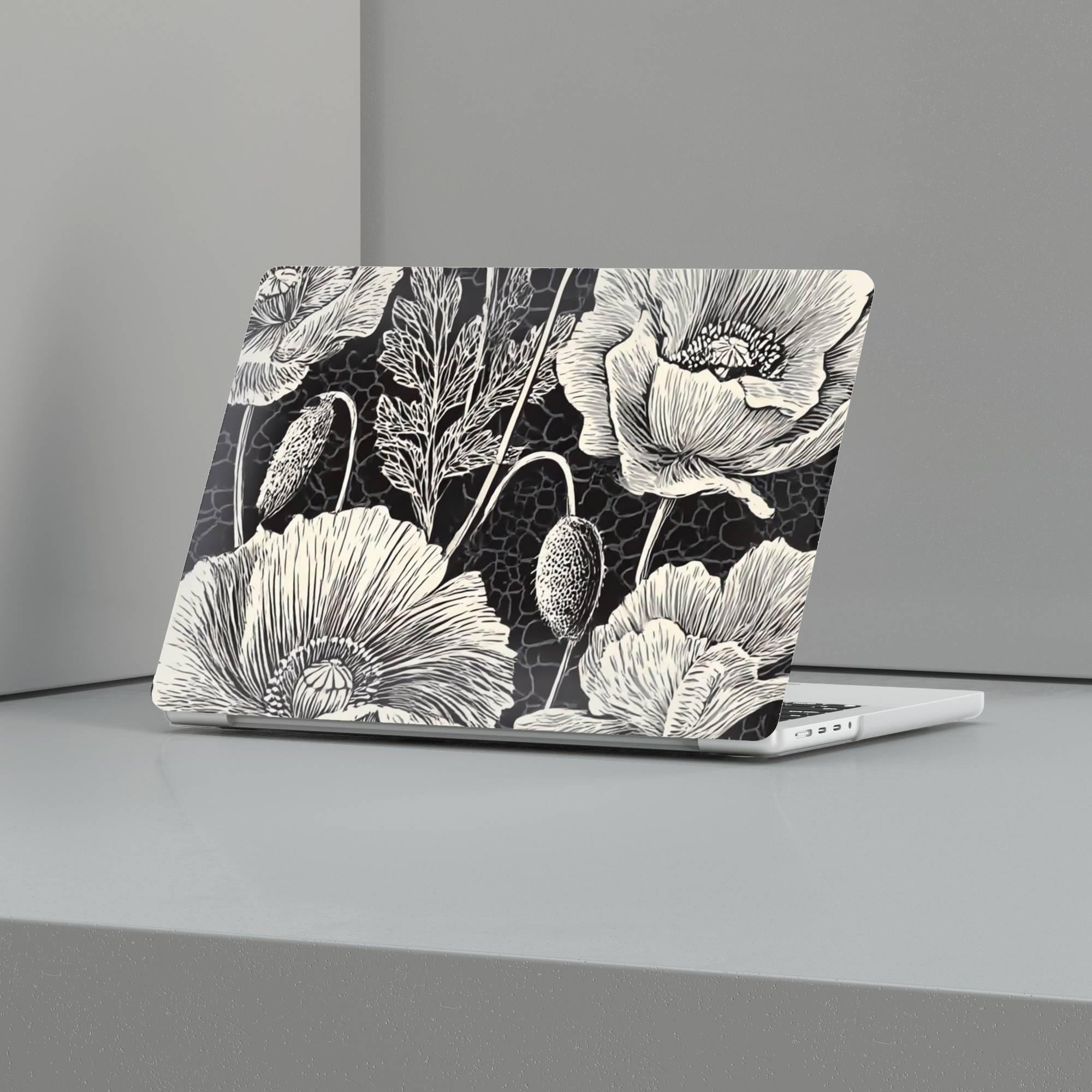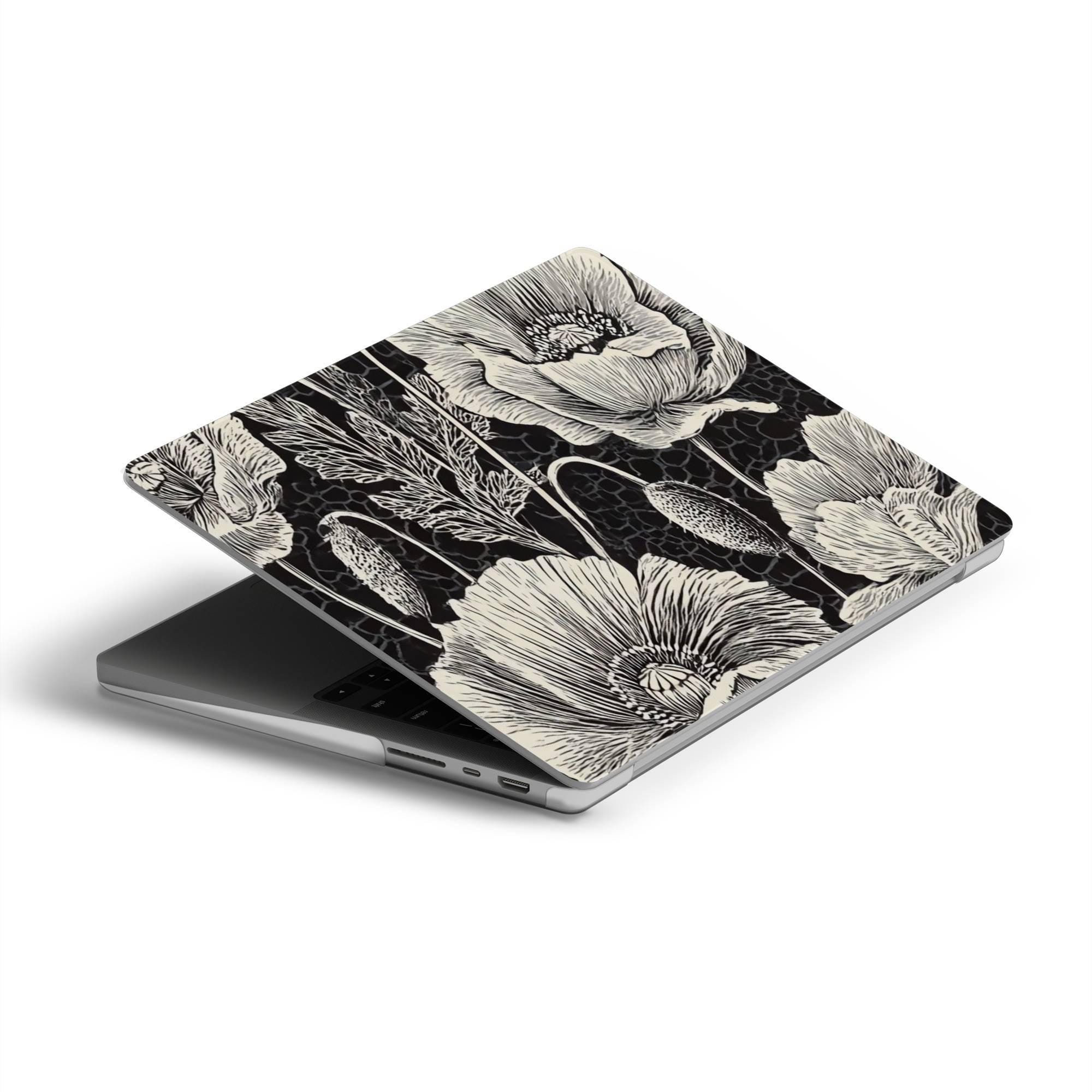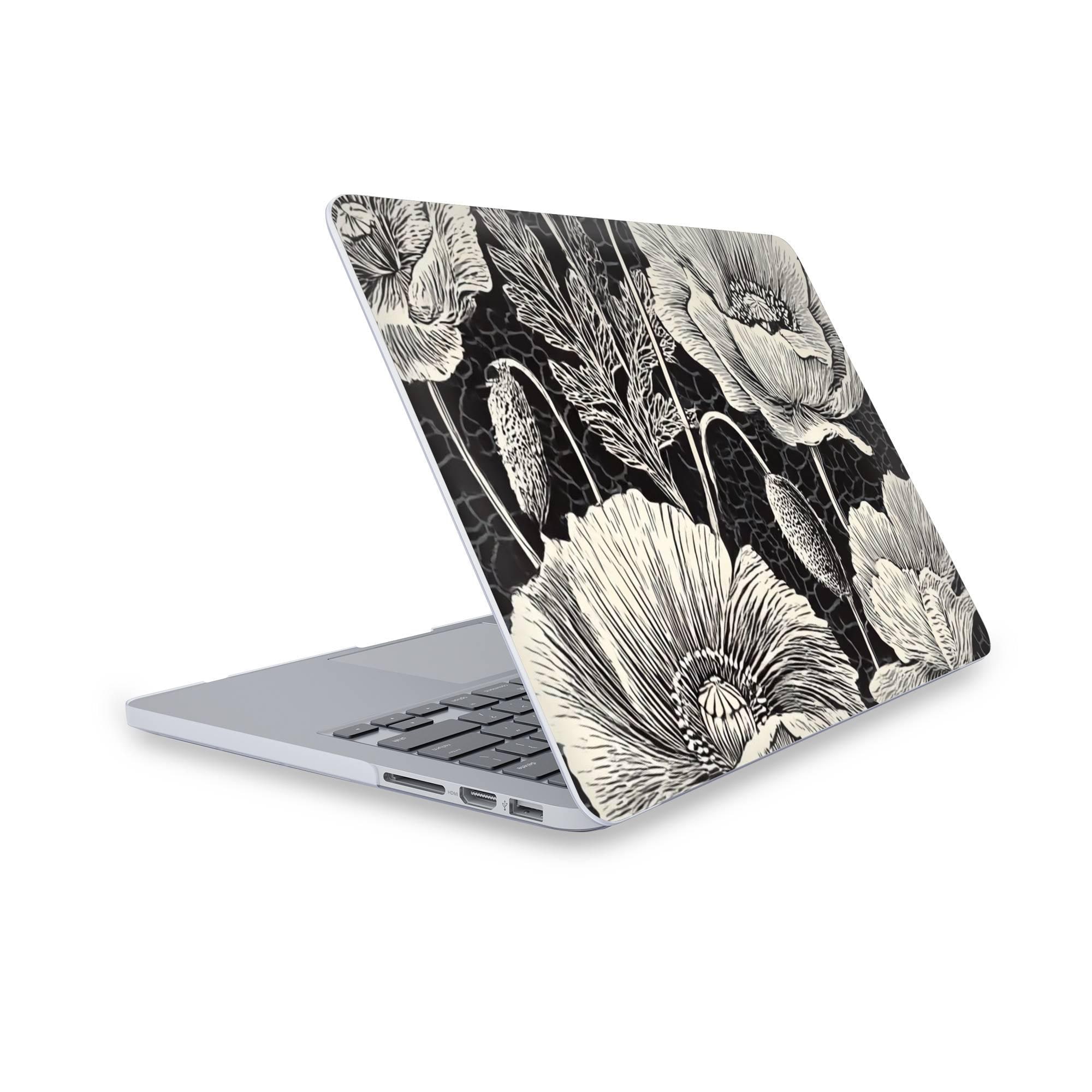 This Poppy Floral MacBook case keeps your MAC safe and stylish. This case is designed with a thin, durable, and lightweight Plastic material that perfectly fits your device. Featuring a Vintage Black elegant design, this MacBook case is sure to add a touch of whimsy to your everyday life.