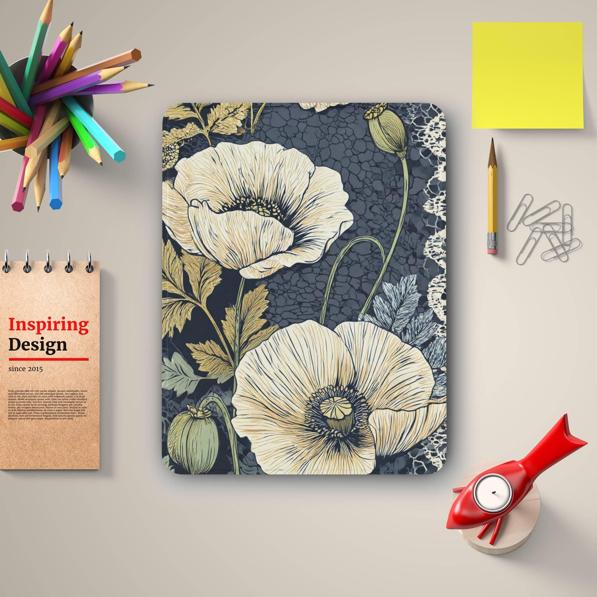 Our iPad cases aren't just about protection, they're about style too! Whether you're hustling at work or chilling out with some entertainment, this Cream Poppy cases is your perfect companion to keep your iPad safe and stylish with our Vintage Floral desing.