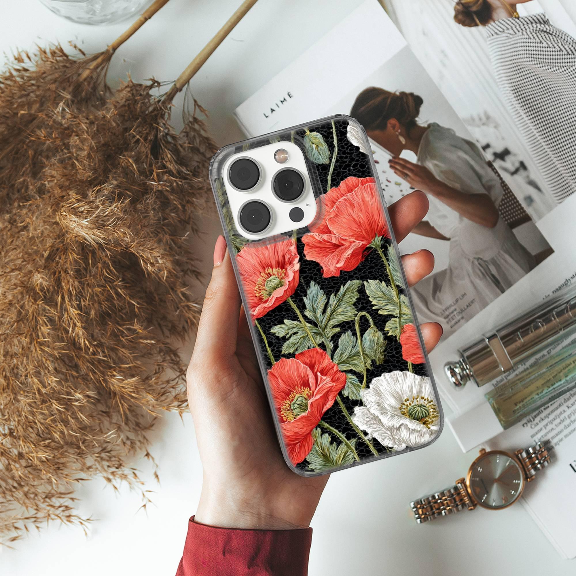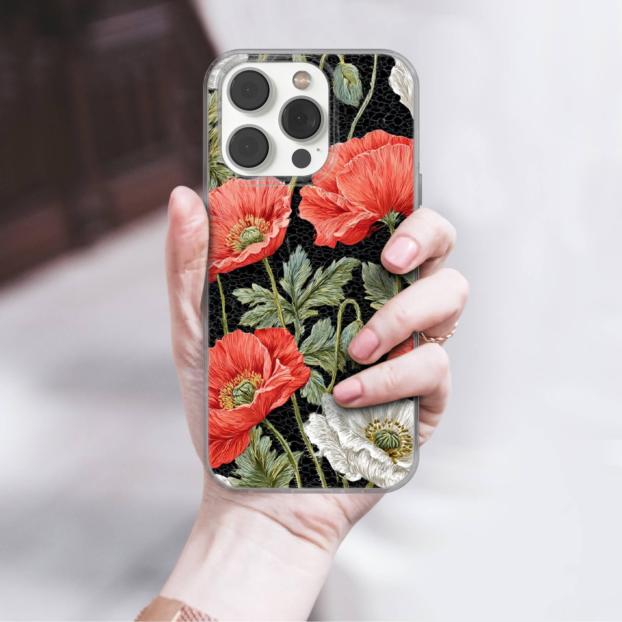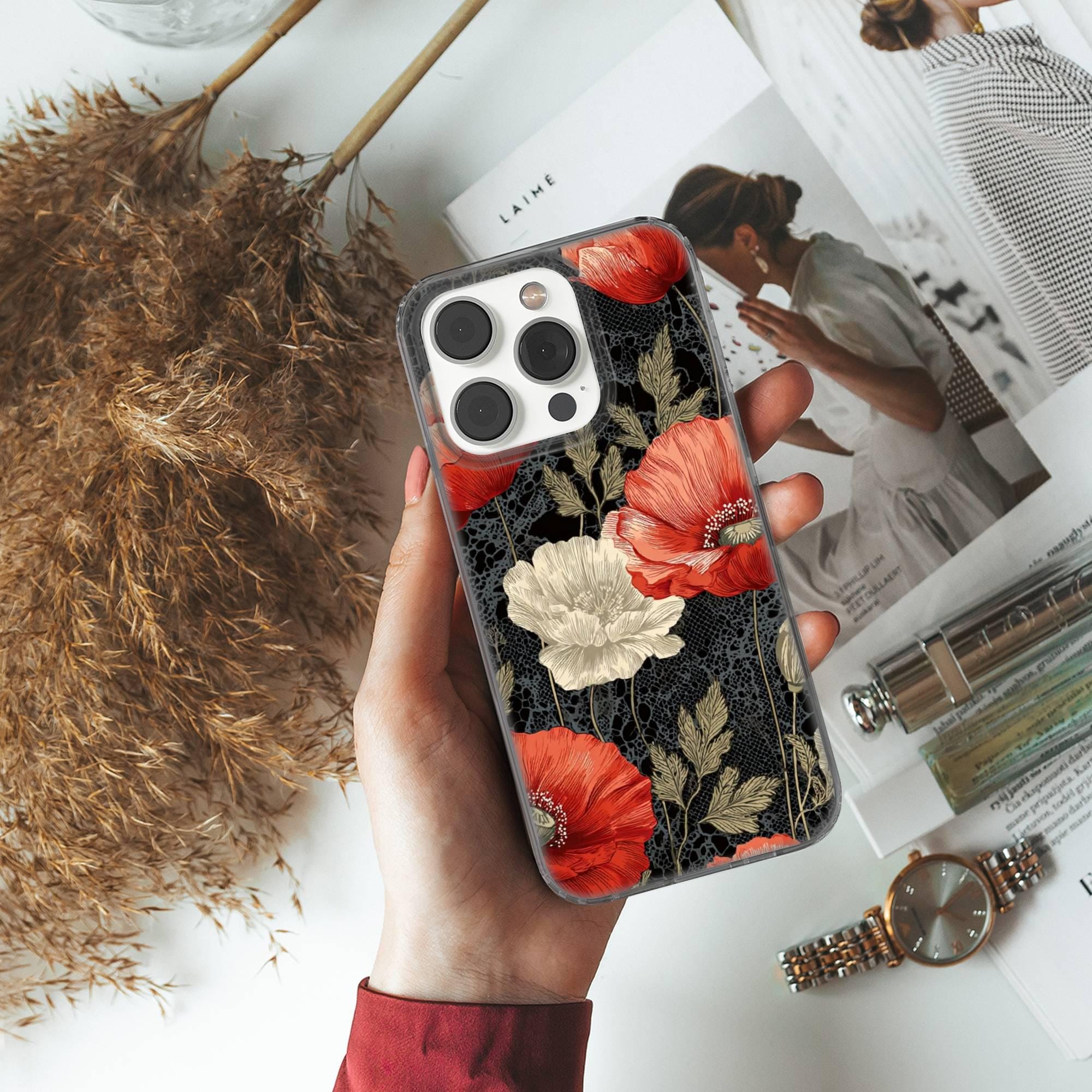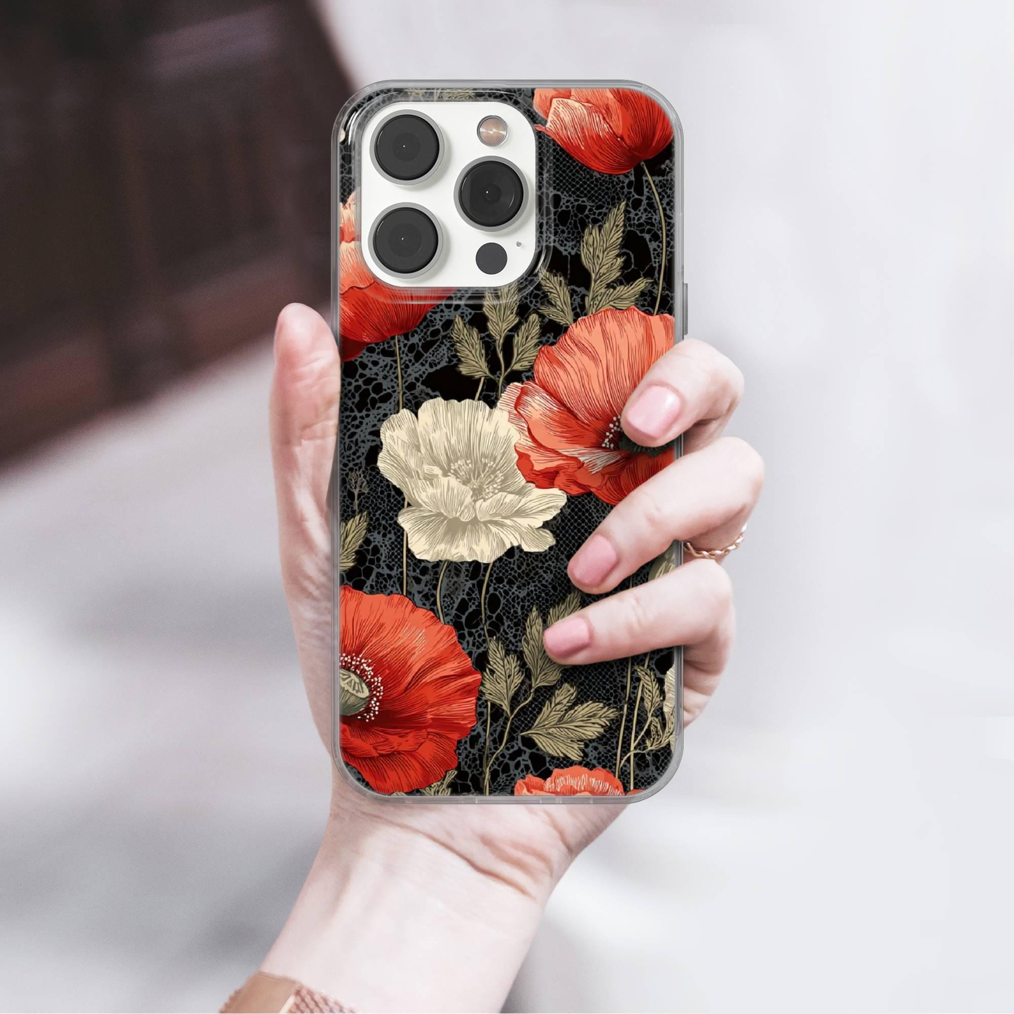Made from durable, high-quality materials, this phone case is built to shield your device from everyday bumps and scratches while showcasing an elegant floral pattern. The intricate cream, poppy, and vintage-inspired botanical artwork add a touch of romantic allure and timeless appeal, making your phone truly stand out from the crowd.