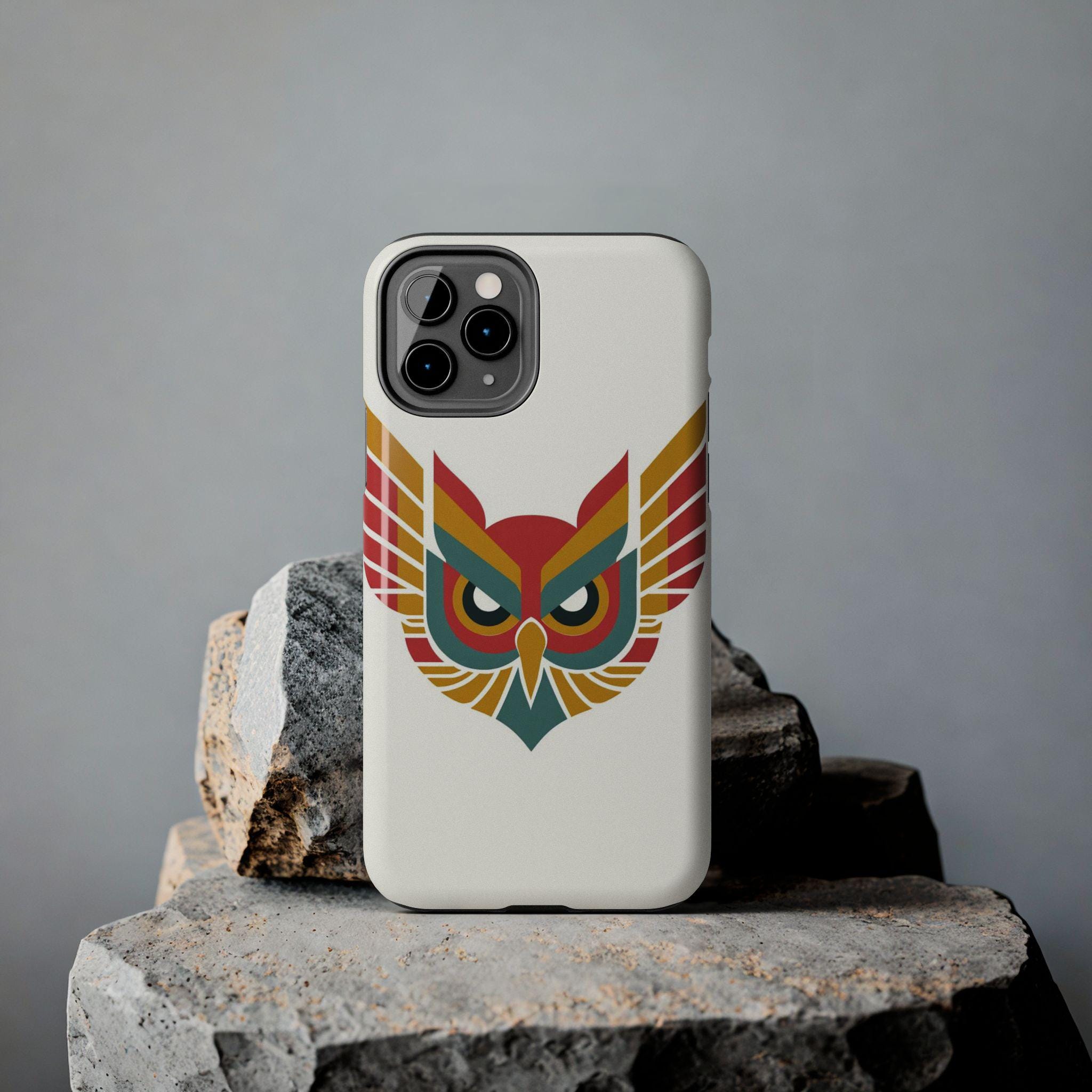 Bright, bold, and a little bit mischievous—this Retro Geometric Owl tough phone case brings color and character to daily life. The stylized owl graphic uses clean, angular shapes and vibrant hues that cut through gray commutes and crowded cafés. It feels sturdy in hand: a rigid outer shell and a cushioned rubber liner work together so the phone takes shocks instead of you. The lay-flat bezel keeps the screen off surfaces, and the glossy finish makes the colors pop while resisting UV fade. Carry it on city streets or at weekend markets; the design reads like a little personality statement for someone who loves playful, modern animals and reliable protection for their device.