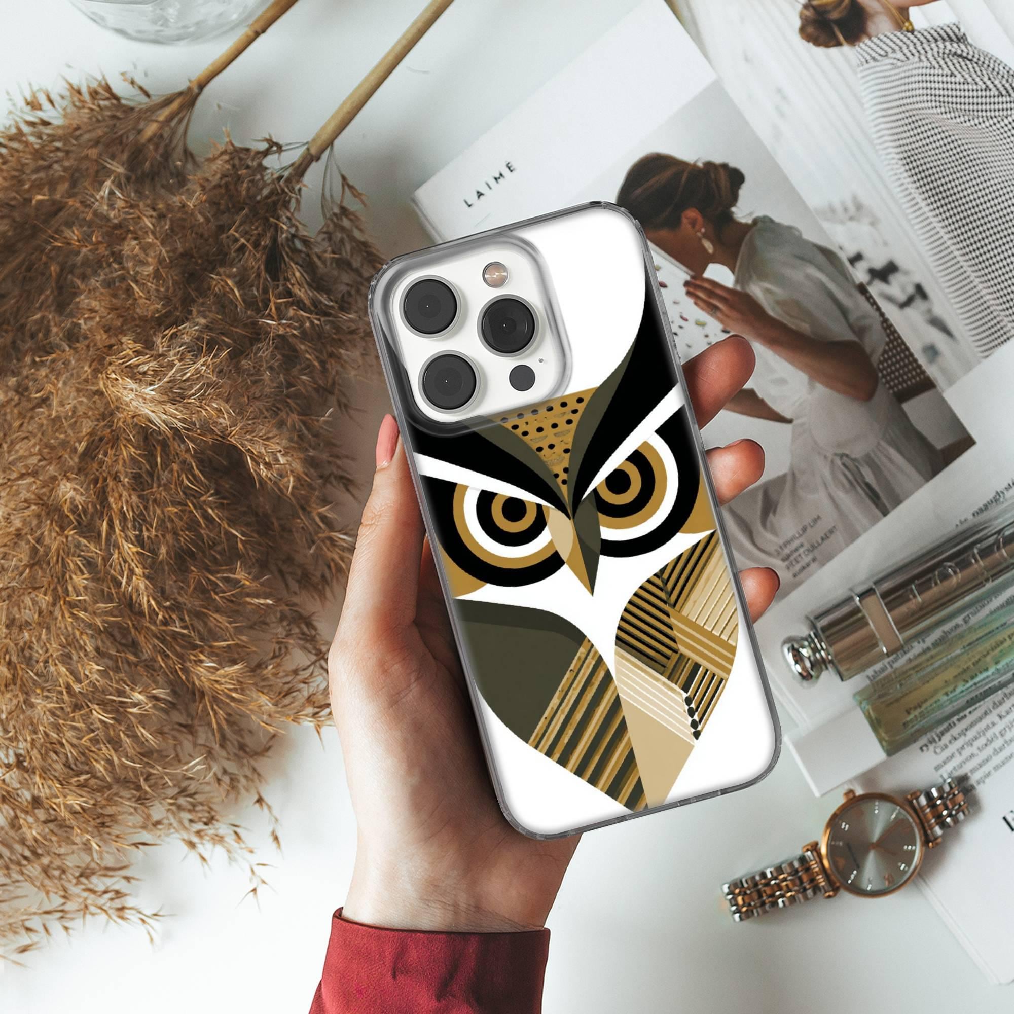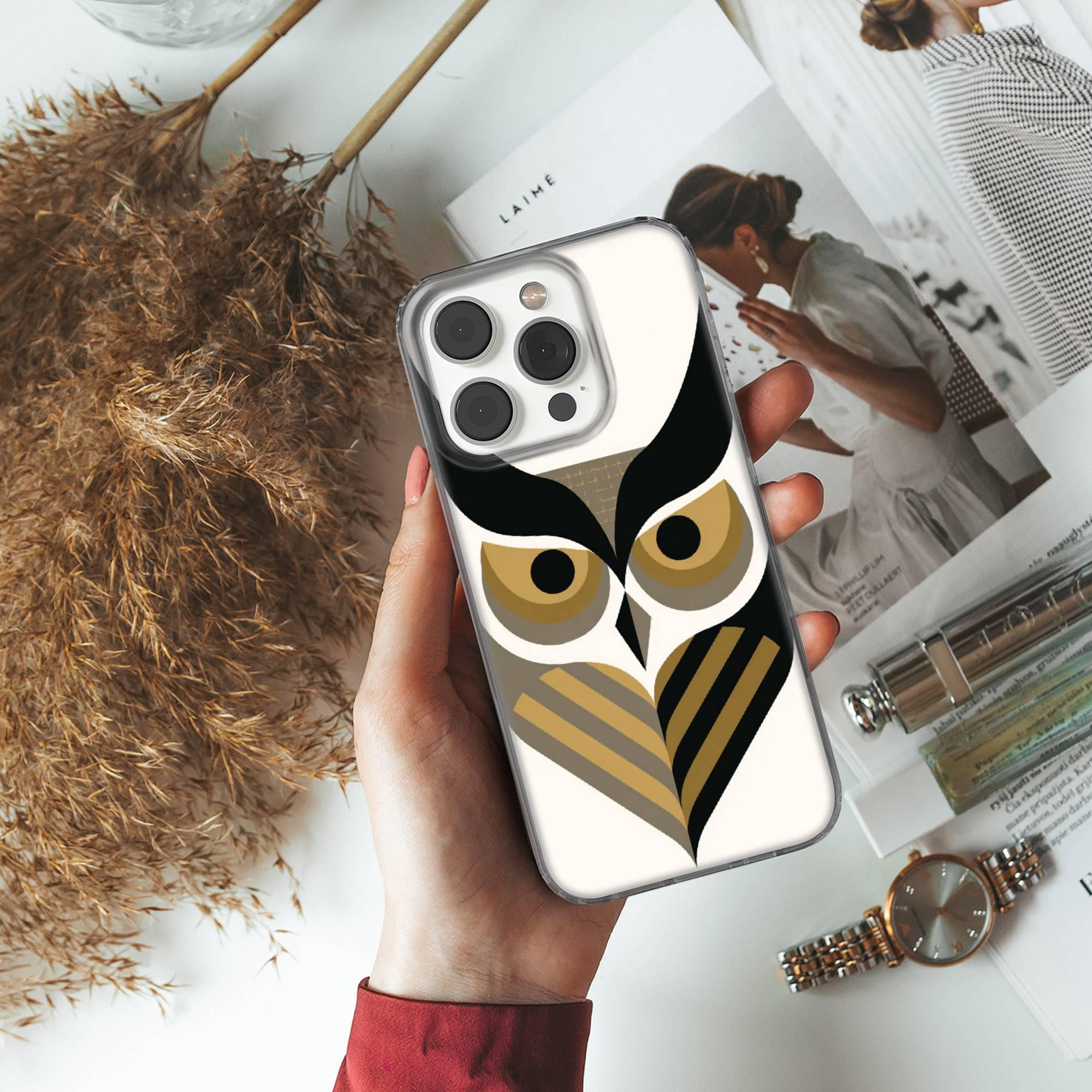 This Geometric Owl Phone Case keeps your phone safe and stylish. This case is designed with a thin and lightweight gel (TPU) material that perfectly fits your device. Featuring Bird Face's elegant design, this phone case is sure to add a touch of whimsy to your everyday life.