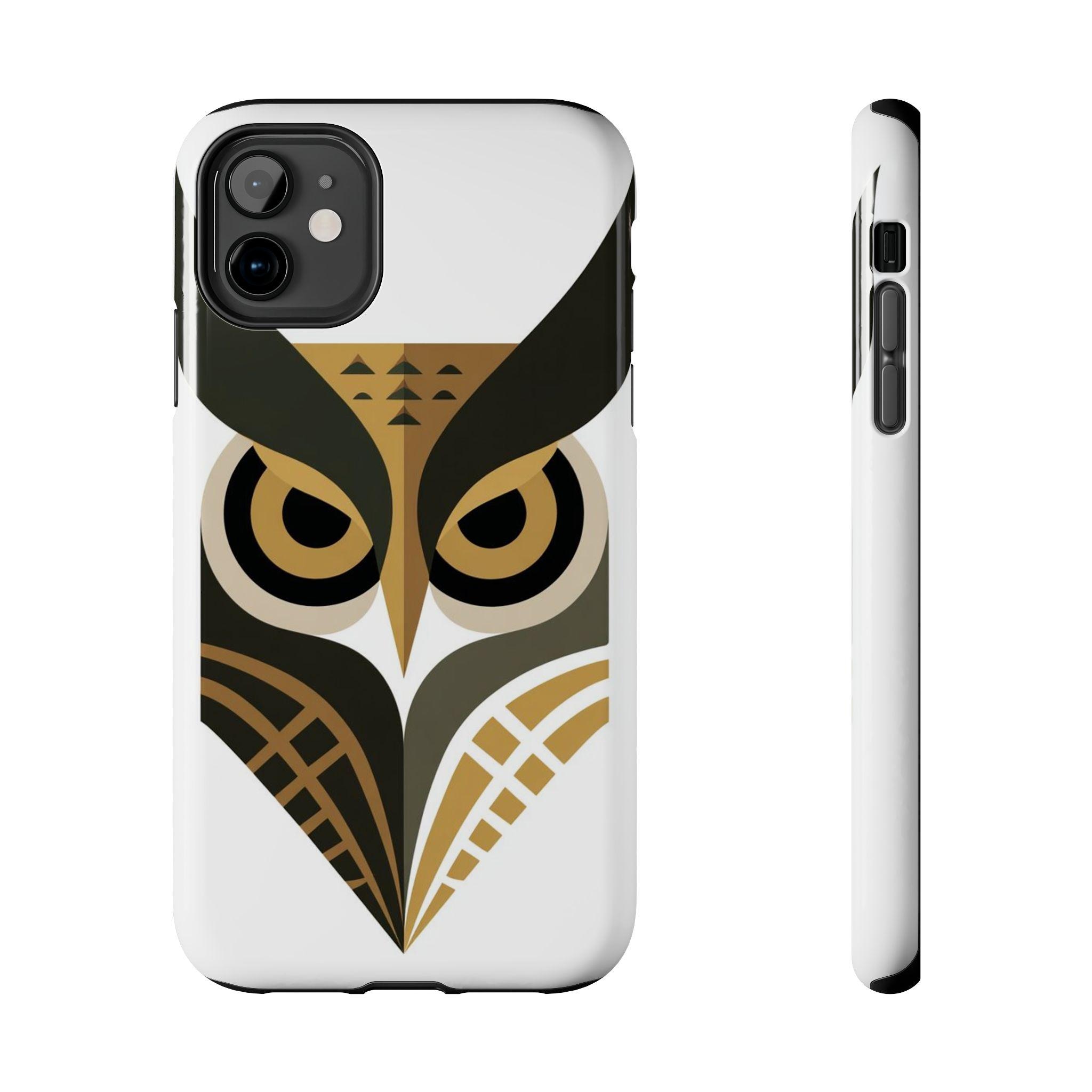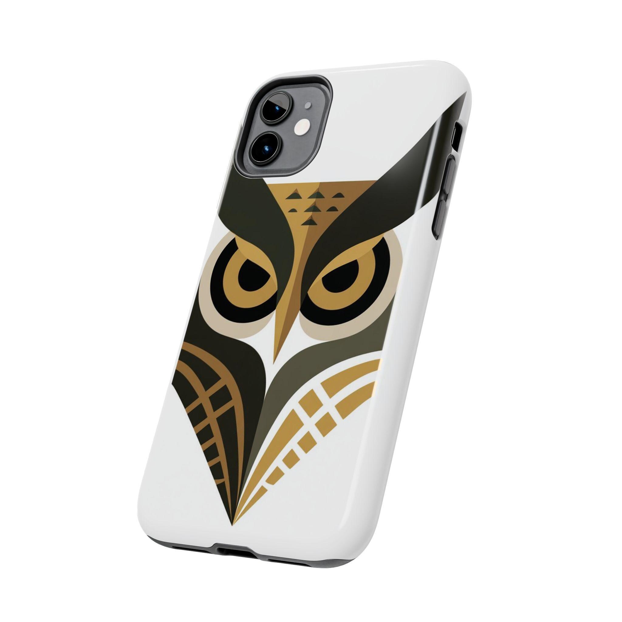Clean lines form a wise, watchful face. This tough phone case pairs a minimalist geometric owl motif with calm neutral tones, so your everyday carry reads quiet and considered. The slim silhouette slips into your hand or pocket, while the two-piece construction and rubber interior take the shocks so your phone doesn’t. Keep it by the bedside when you’re reaching for late-night texts, bring it on a commute through wet streets, or tuck it into a backpack for a weekend of city wandering—the case wears like a steady companion that blends with muted style and practical needs.