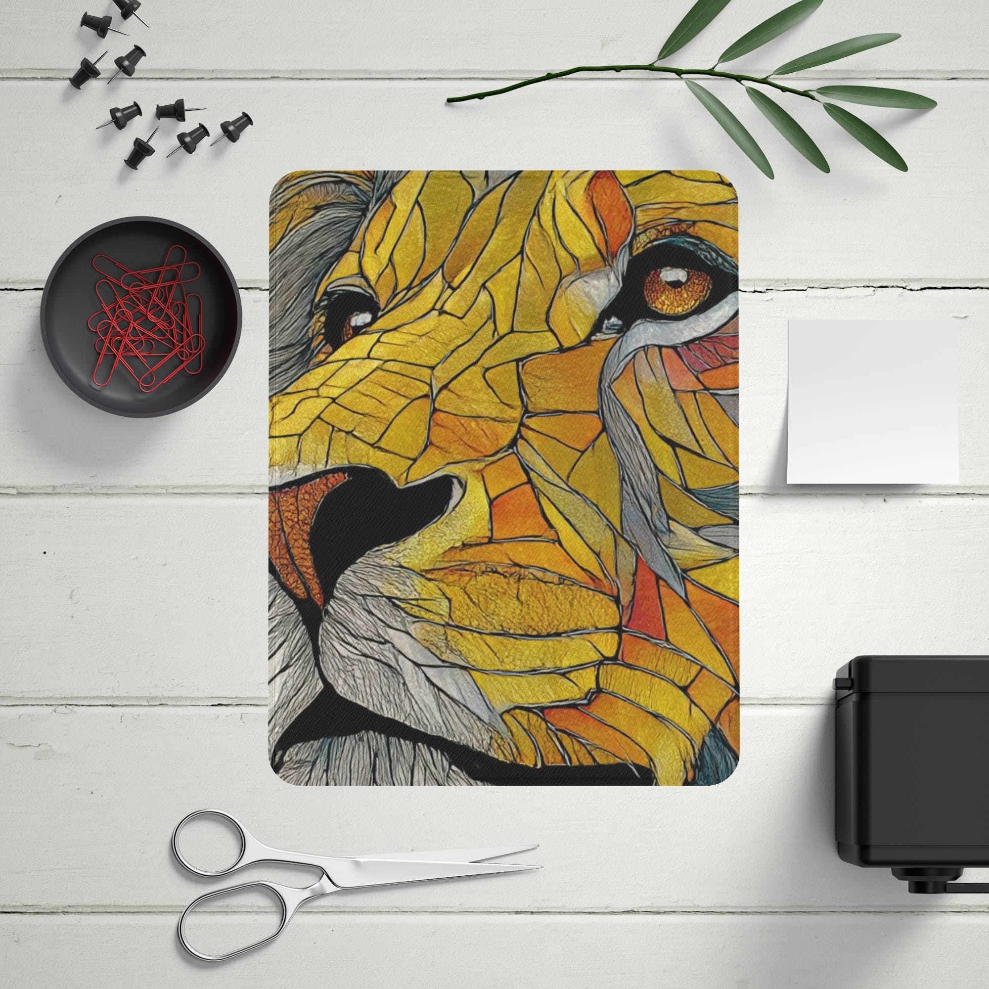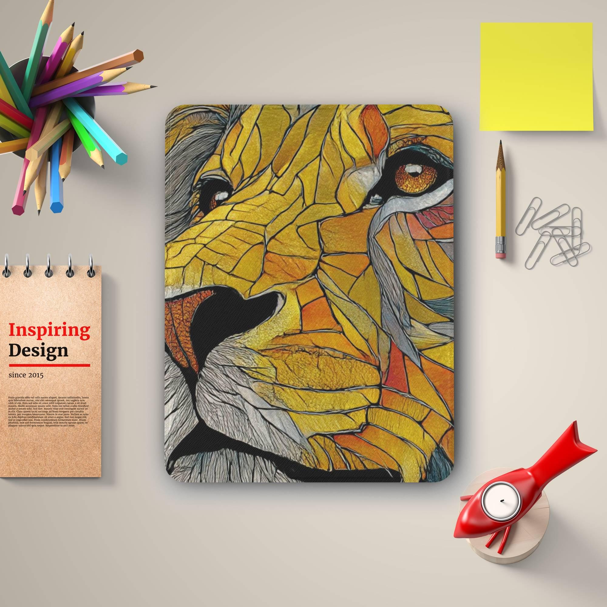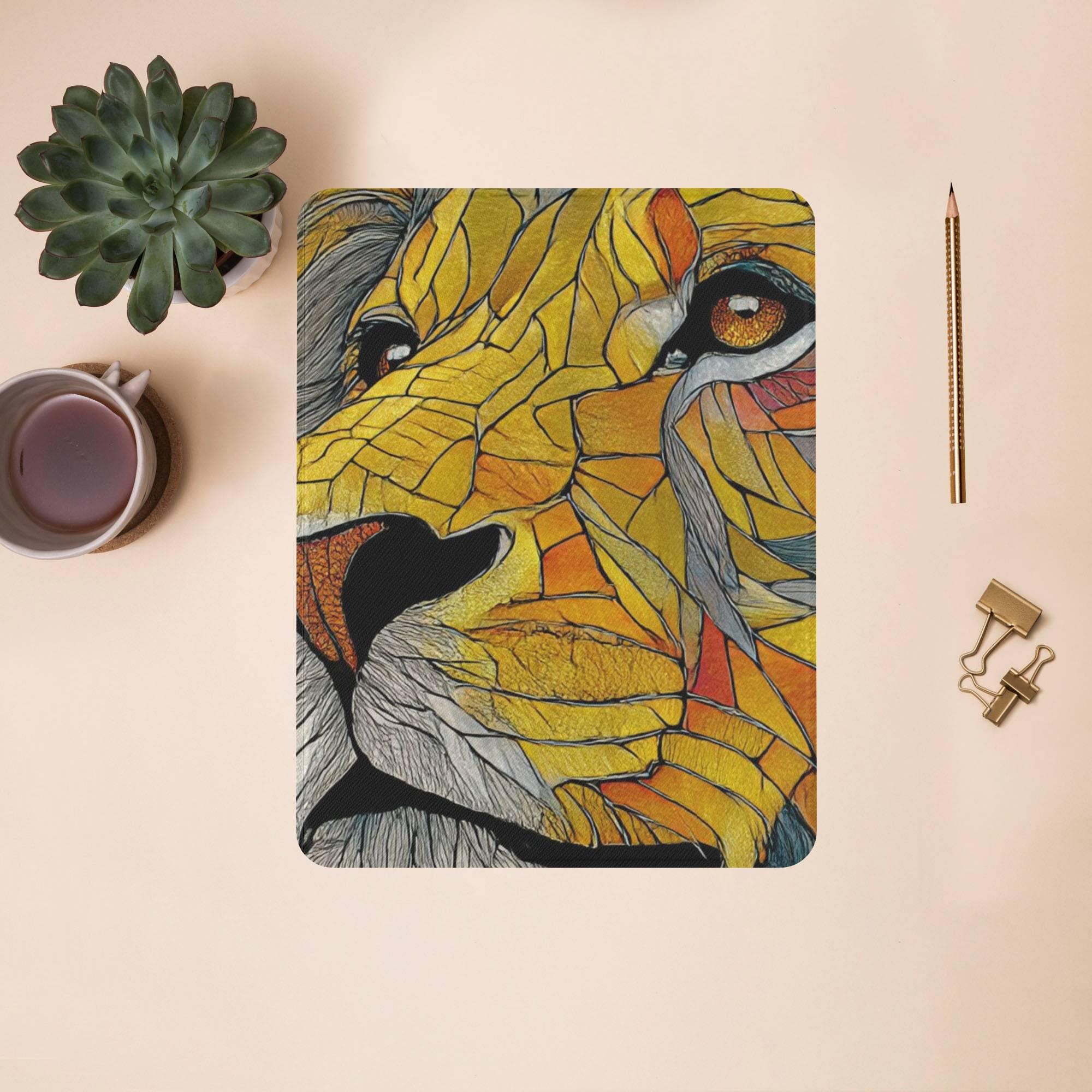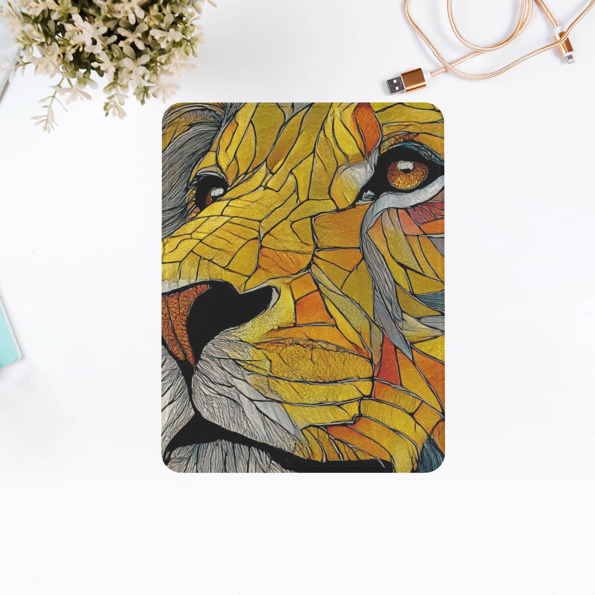 Elevate your iPad experience with our stunning Stained Glass Colorful Art Cover, designed to bring vibrant artistry and superior protection to your device. Crafted from a premium TPU wrap with a transparent acrylic back cover, this case showcases a vivid, fade-resistant UV print of an intricate stained glass tiger design, making it a true statement piece. The outer layer features durable, vegan leather that ensures long-lasting style and eco-conscious quality.