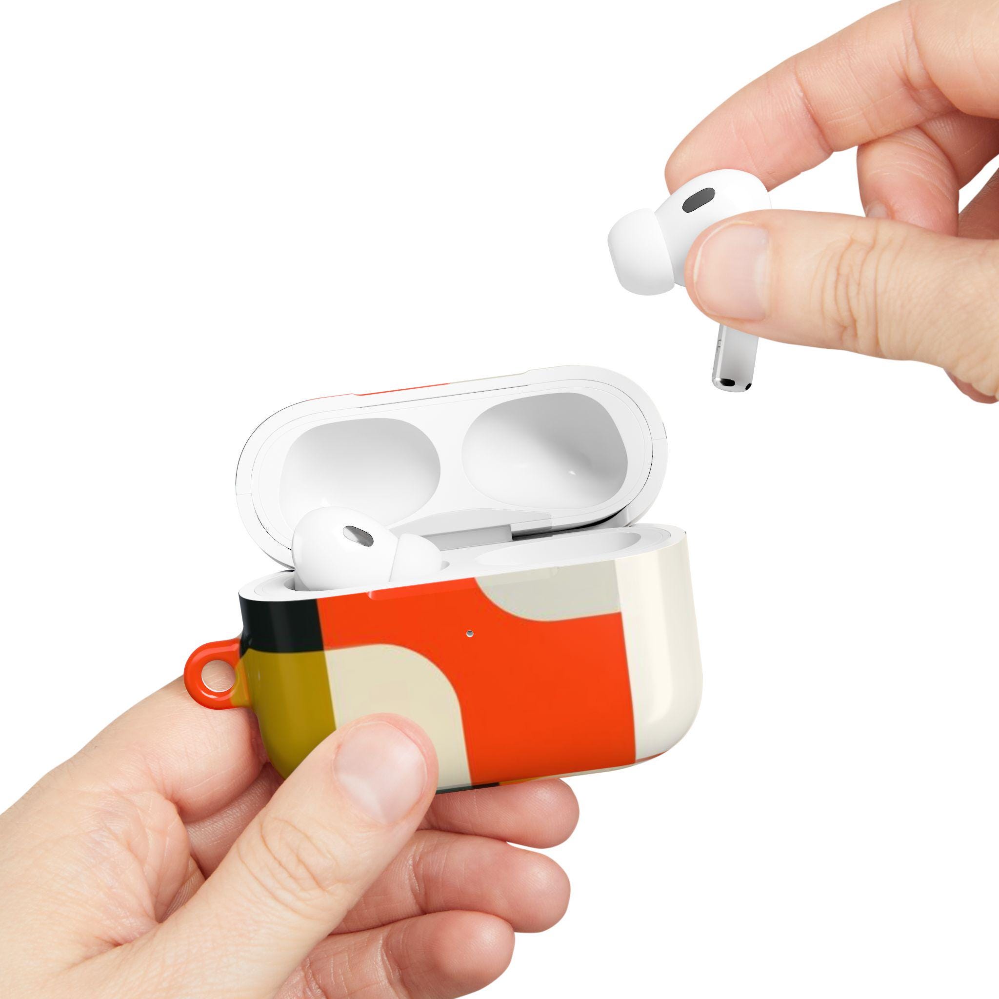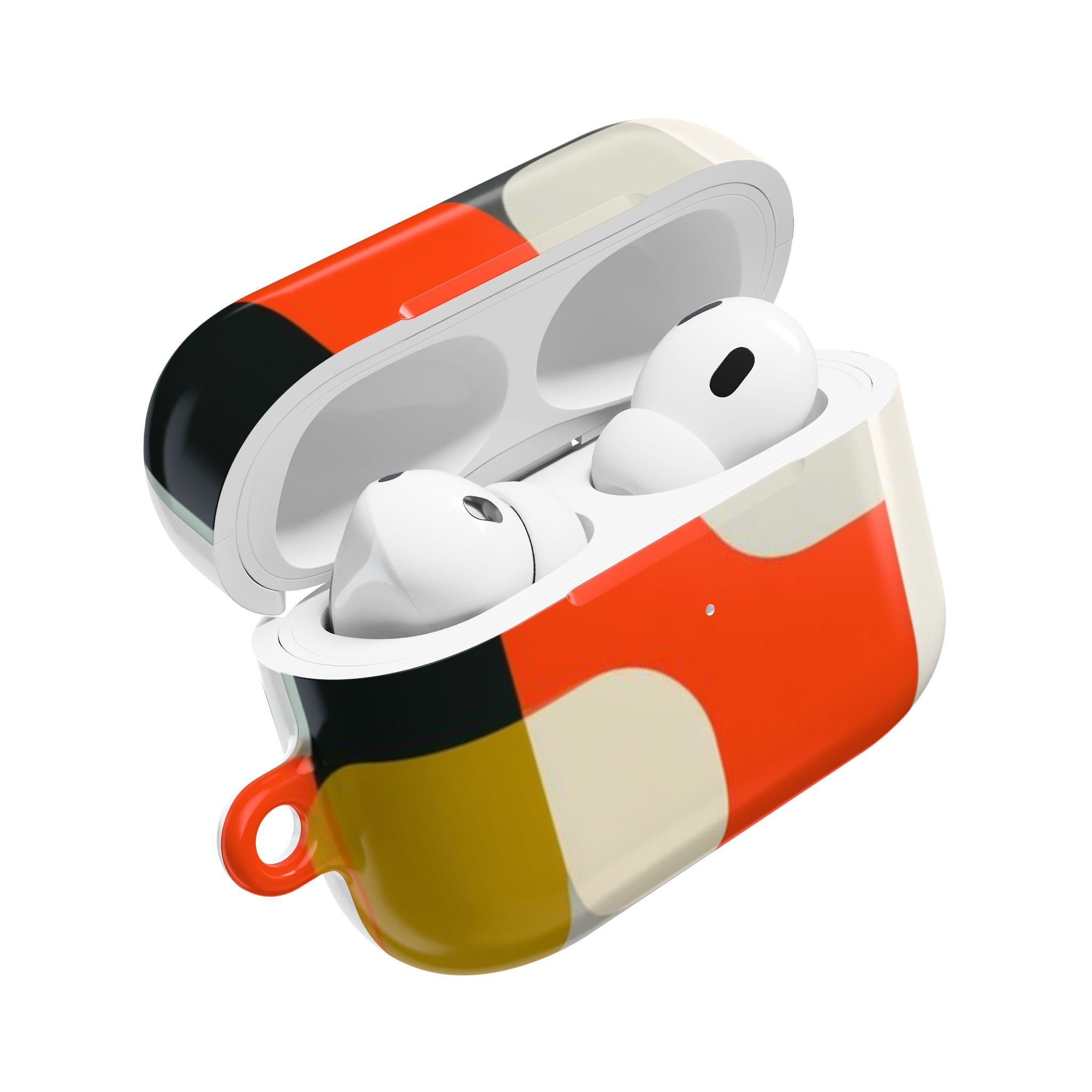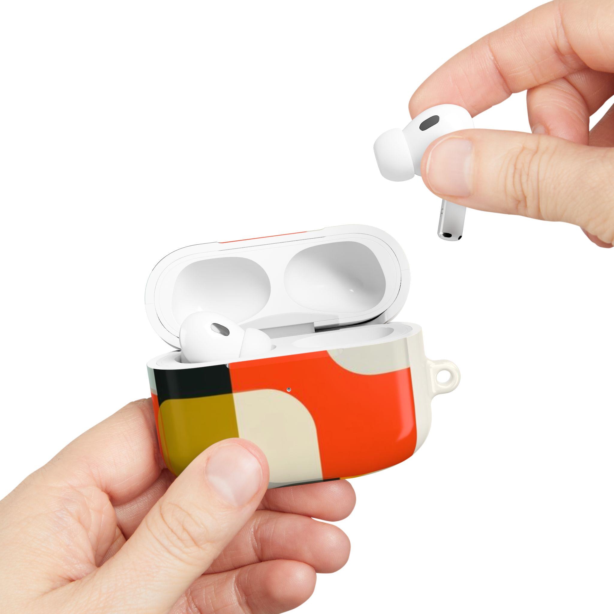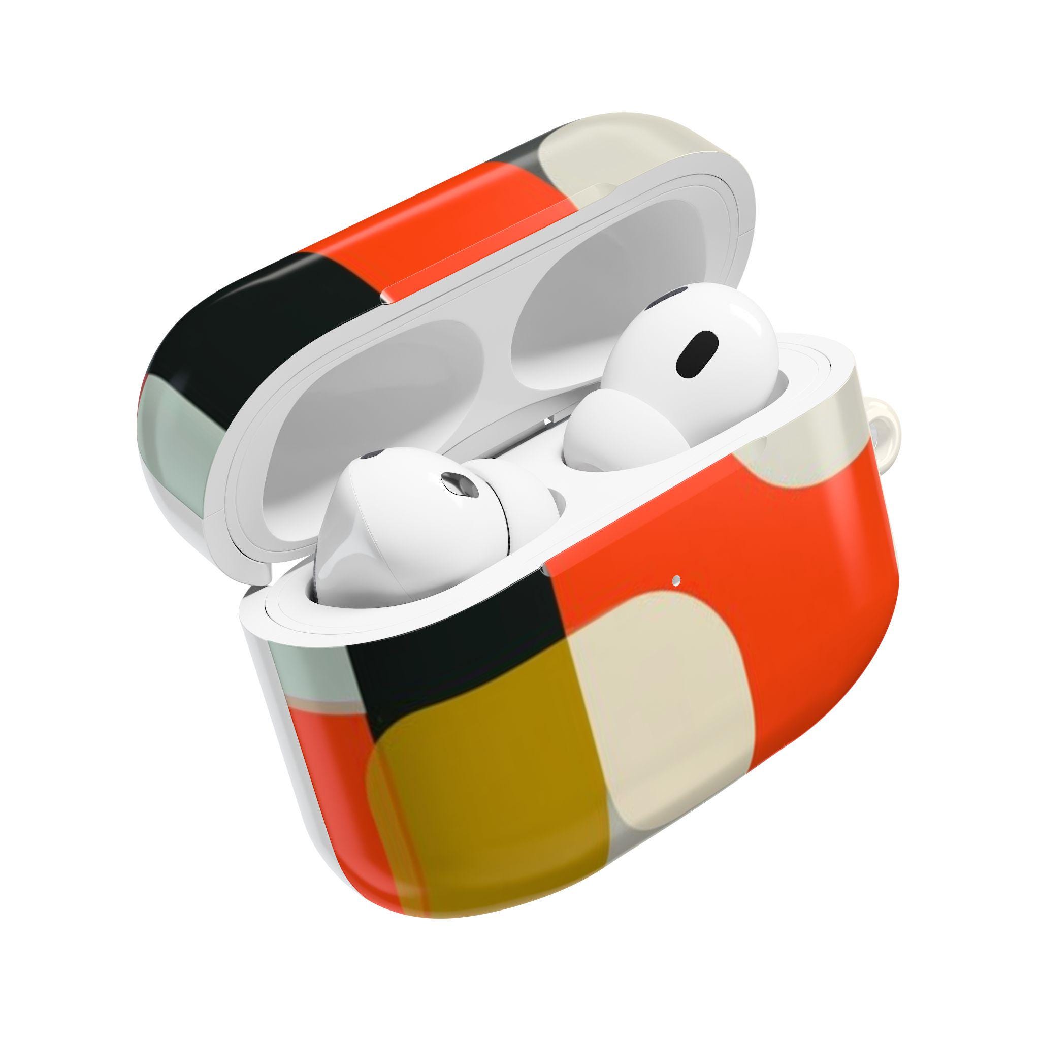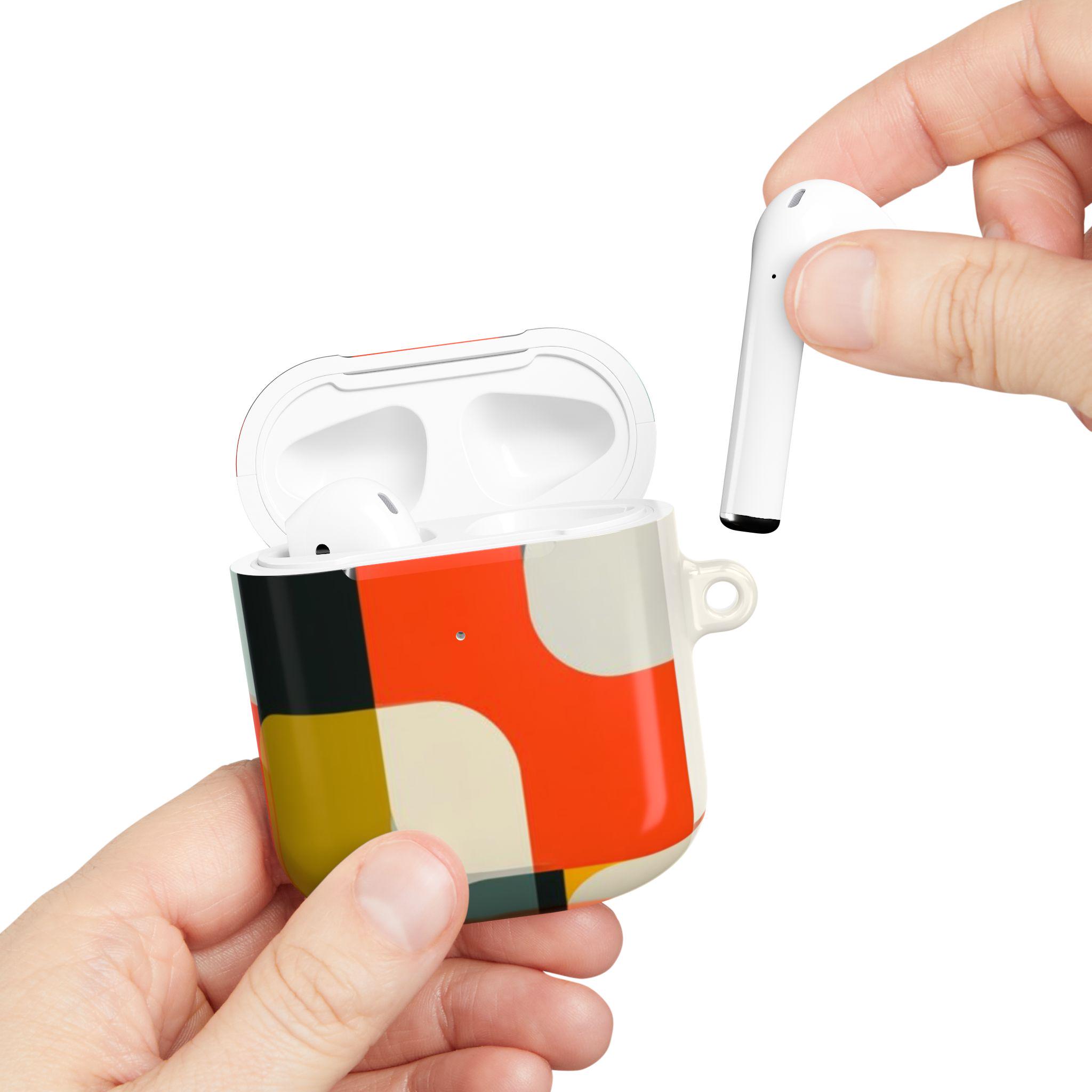 Pop a flash of mid-century style onto your everyday carry. This slim, glossy AirPod case wears bold geometric color blocks—think warm ochre, muted teal, and clean cream—arranged with that unmistakable retro modern rhythm. It hugs your charging case without adding bulk, so you slide it into coat pockets or sling it from a bag with the included carabiner. The polycarbonate shell resists impacts and scratches, keeping those crisp shapes vibrant even after daily knocks and tumbles. Whether you’re commuting through the city, sketching at a cafe, or packing for a weekend away, this case makes a small, deliberate statement: design matters in the details.