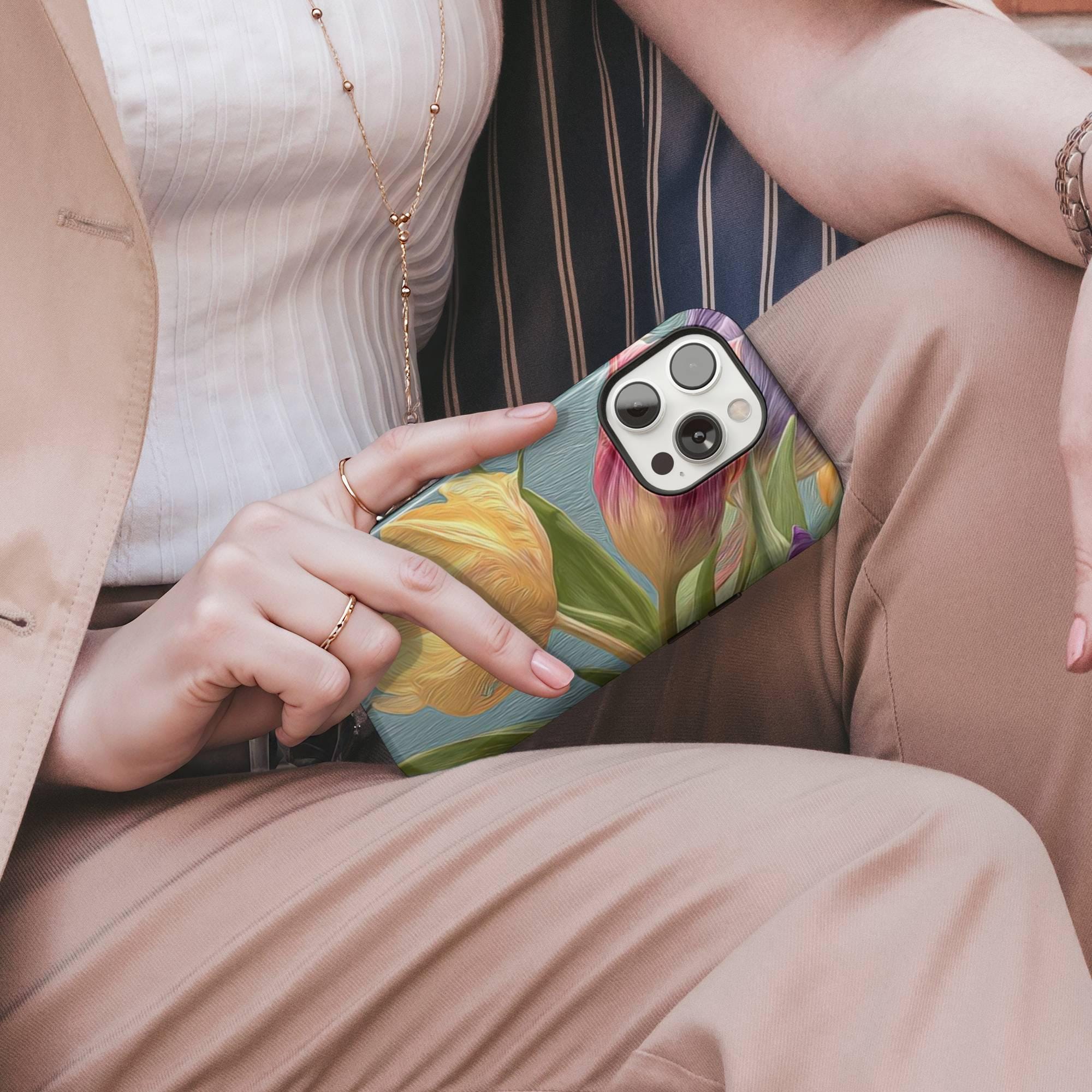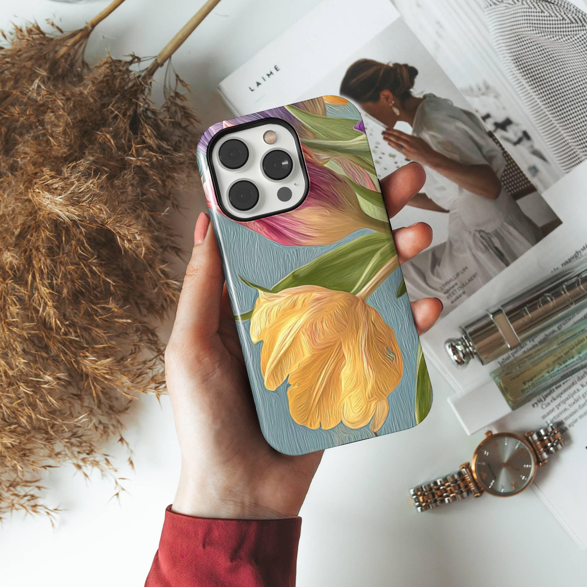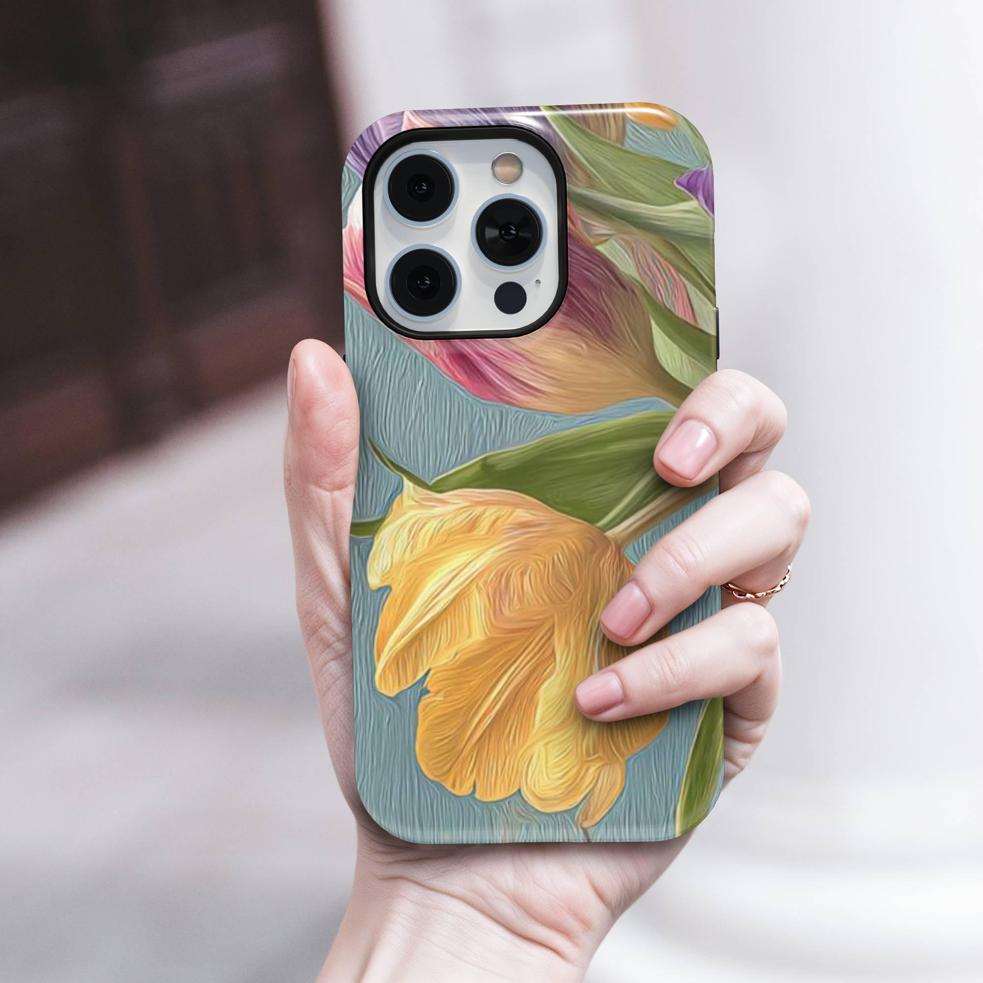 Crafted from premium quality white plastic with a TPU insert for dual protection, this lightweight yet durable phone case is built to safeguard your device from everyday accidents while maintaining a sleek, elegant appearance. The vibrant tulip artwork captures the essence of spring, bringing freshness and beauty to your phone.